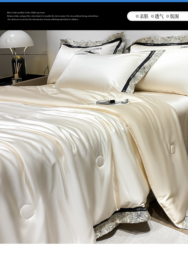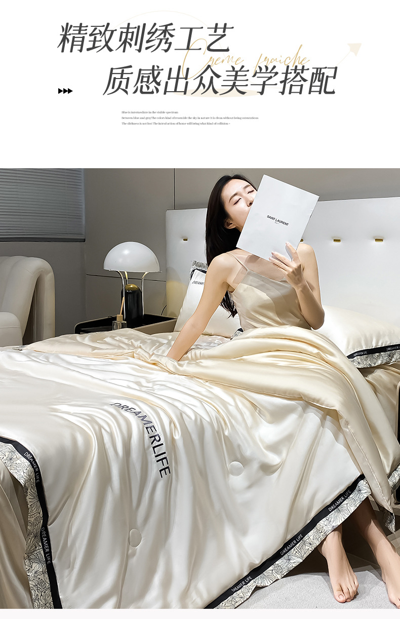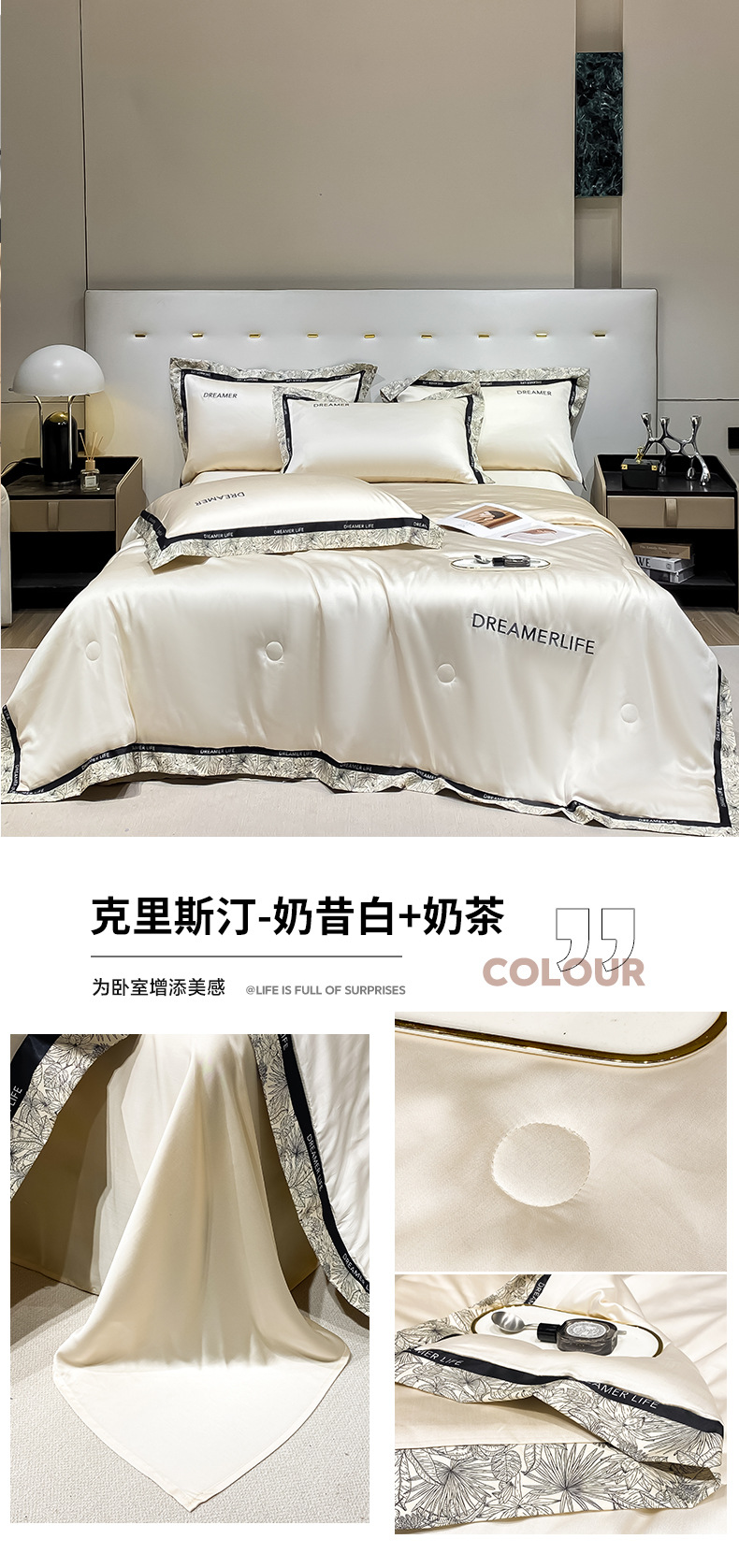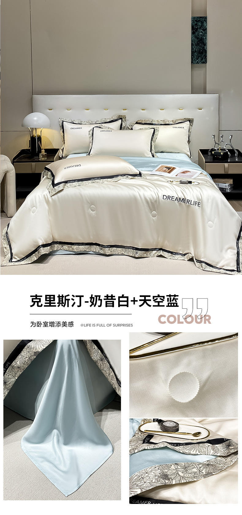 80支天丝双面刺绣夏凉被四件套冰丝空调被可机洗夏被丝滑薄被子