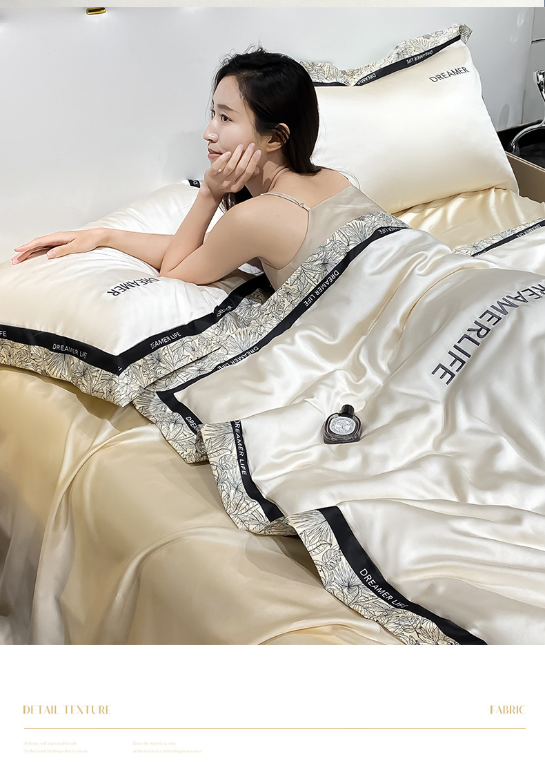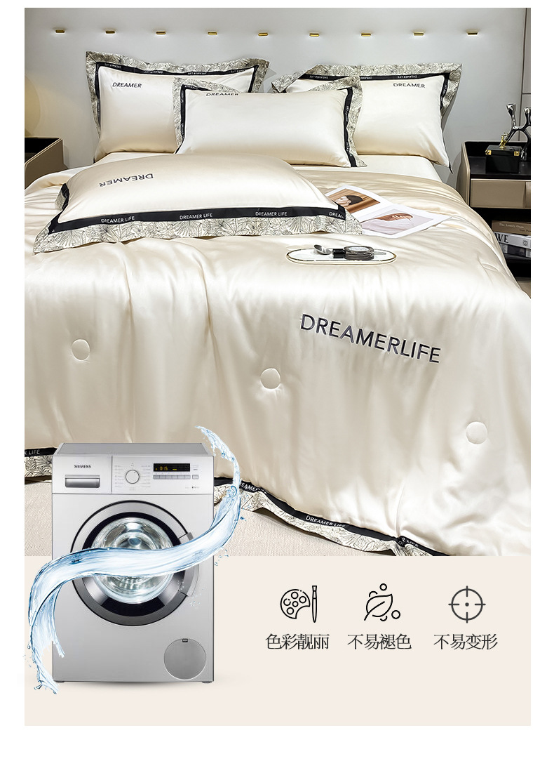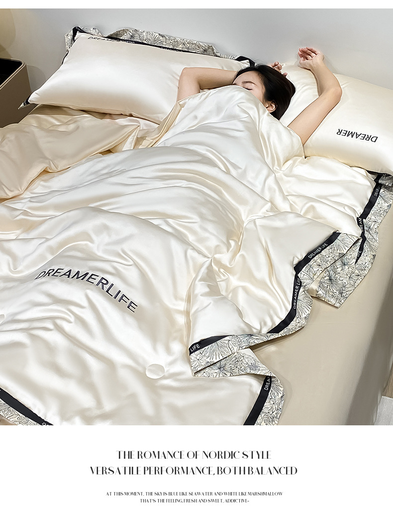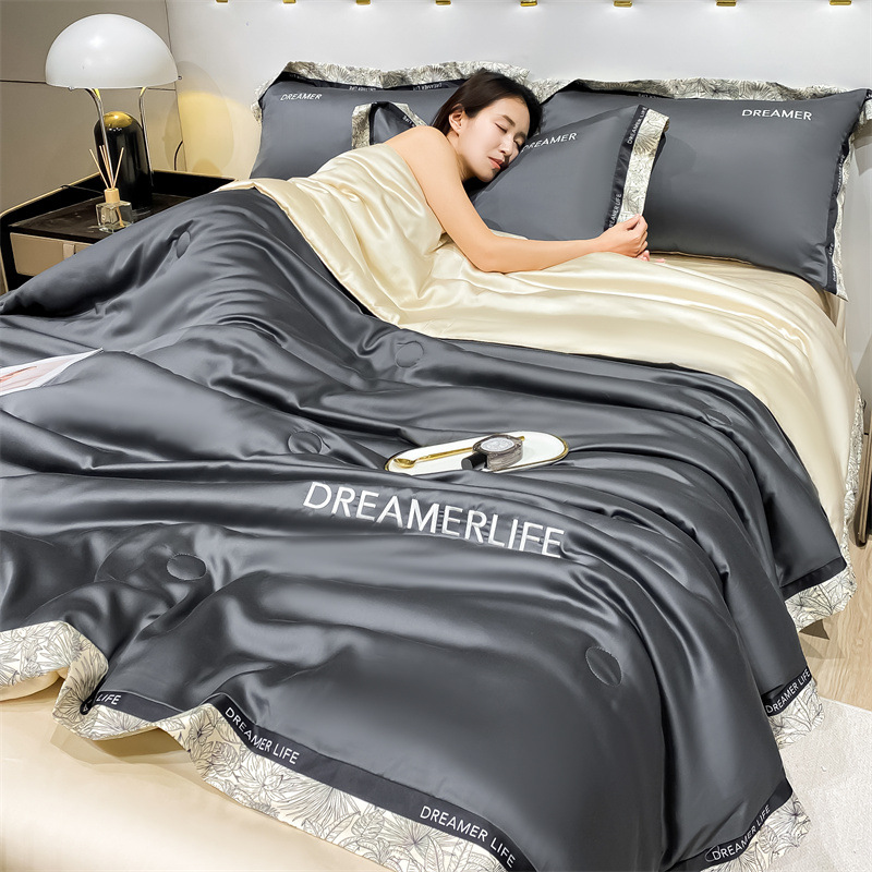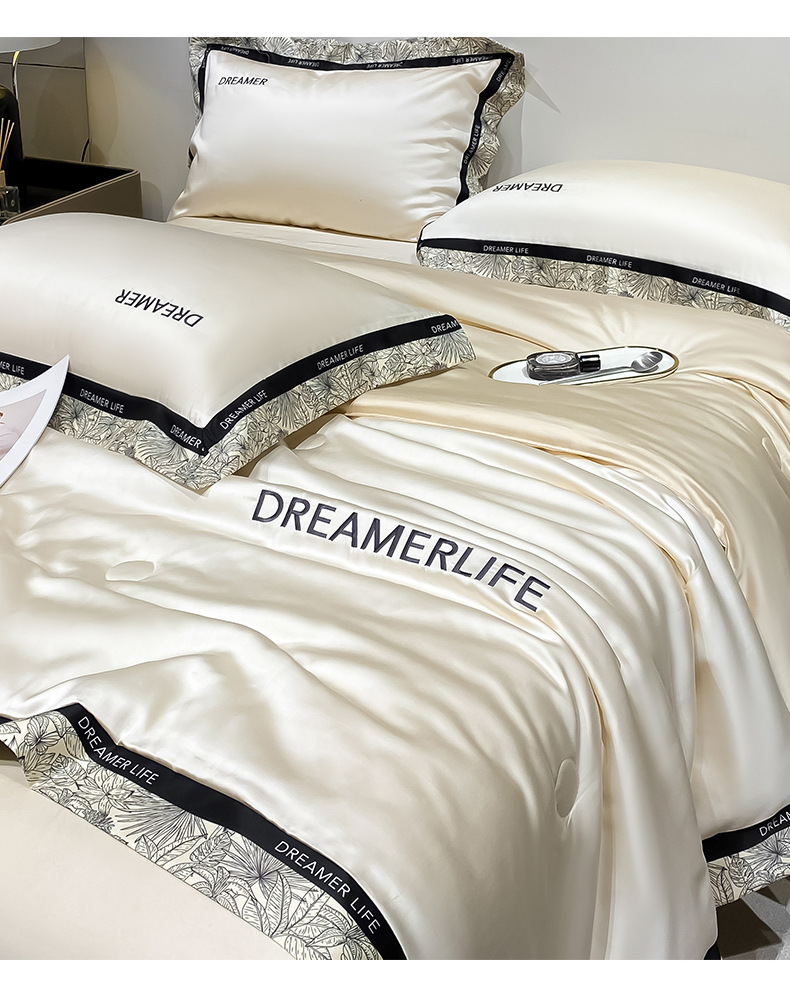 80支天丝双面刺绣夏凉被四件套冰丝空调被可机洗夏被丝滑薄被子