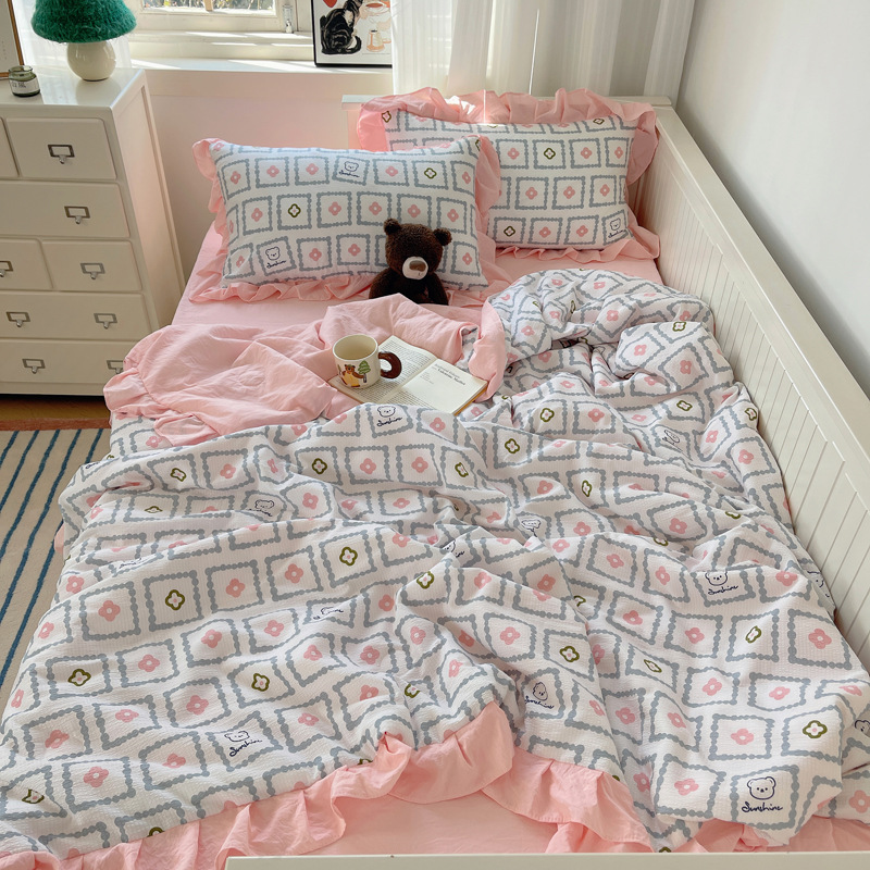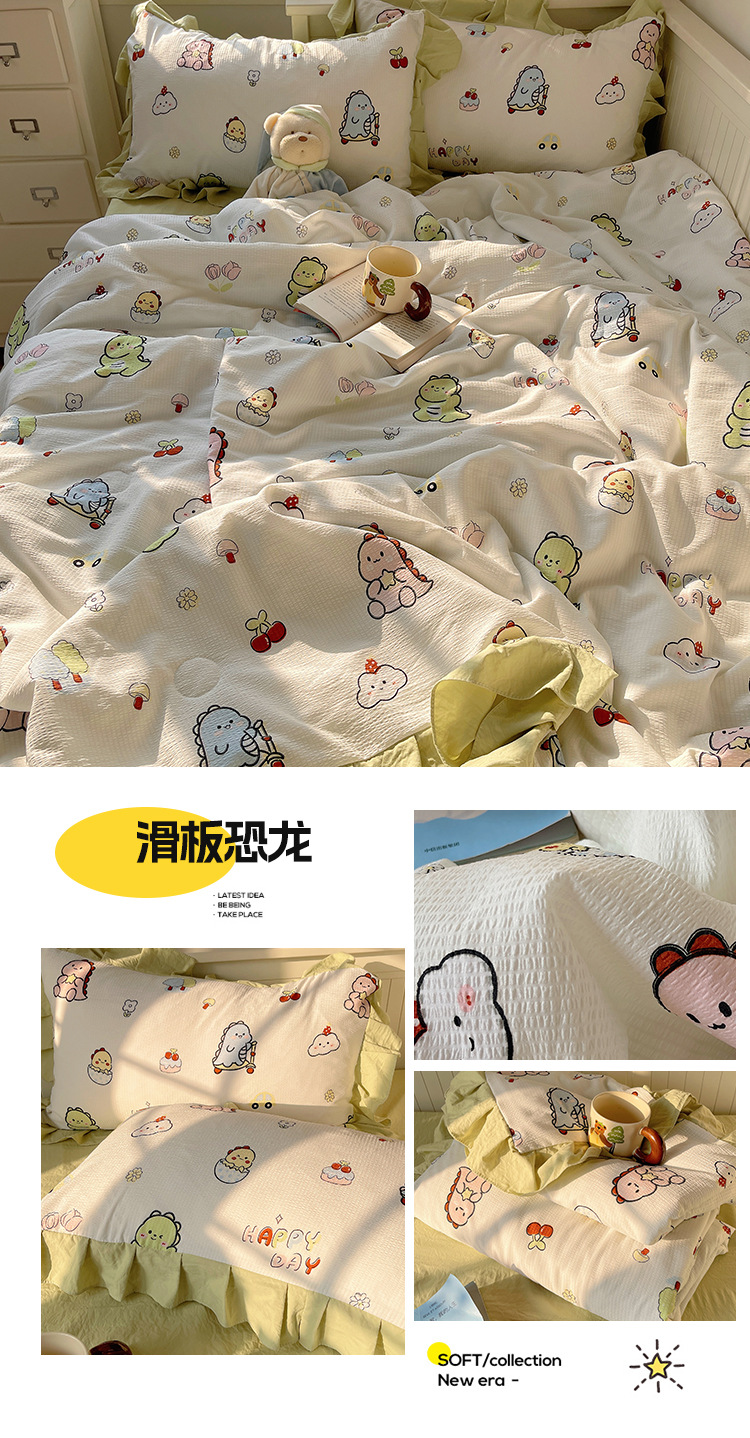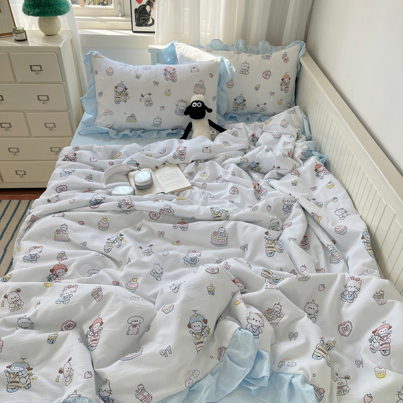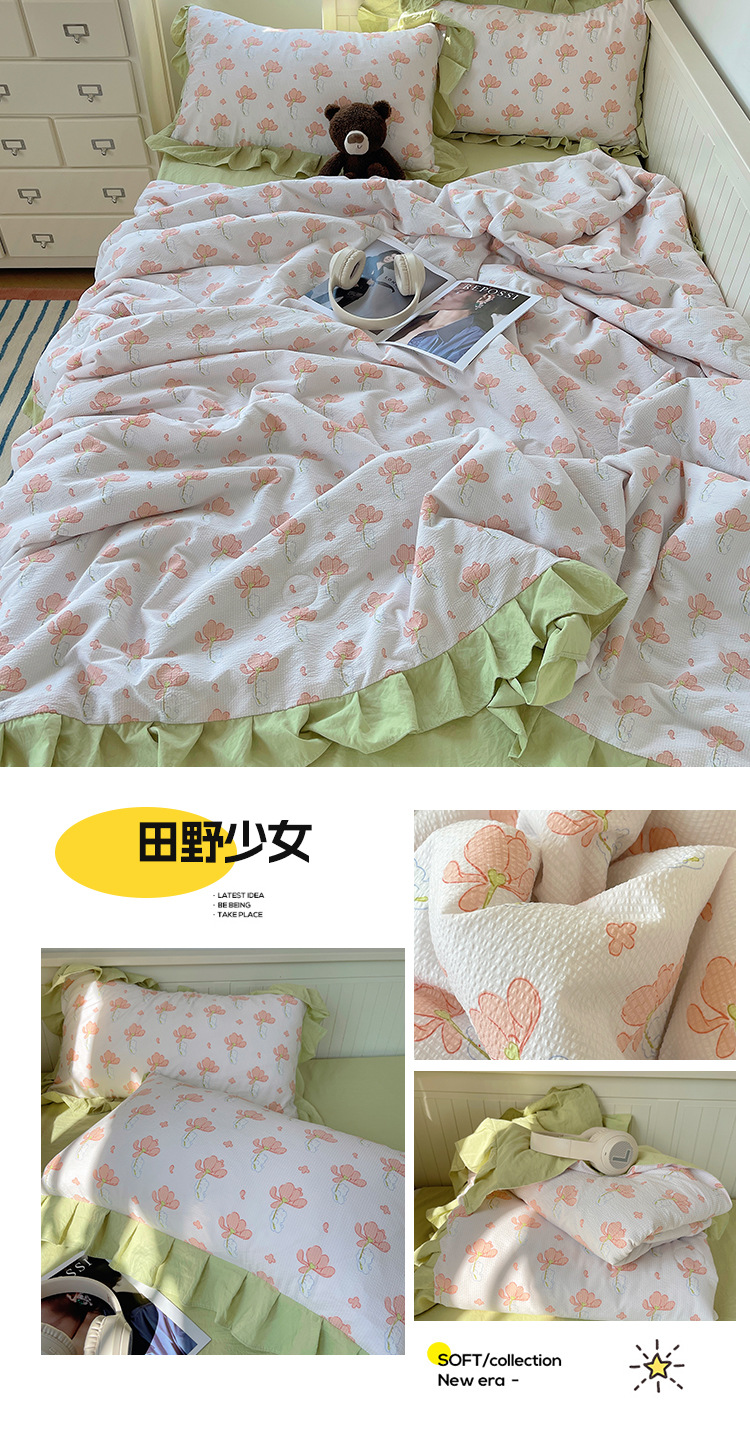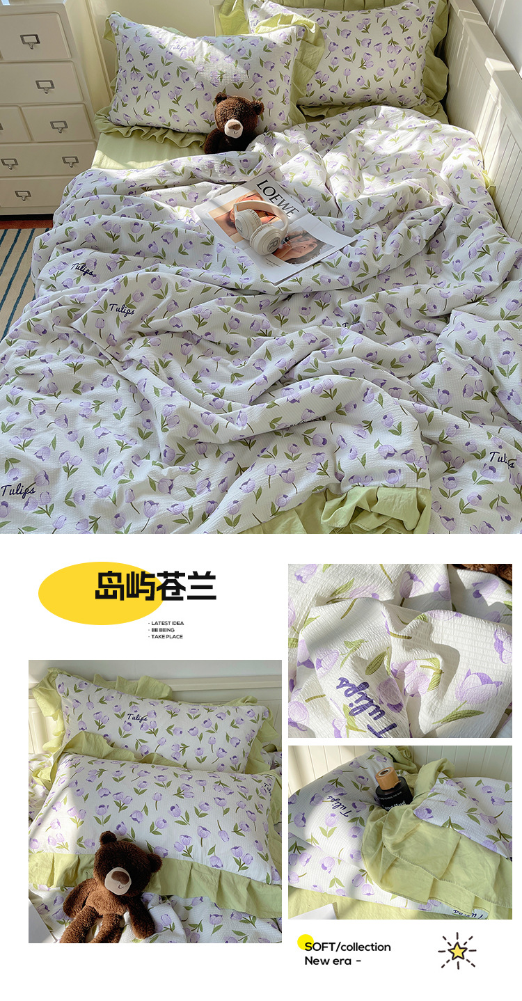 韩版泡泡纱夏被四件套A类空调被夏凉被三件套水洗棉单夏被可机洗