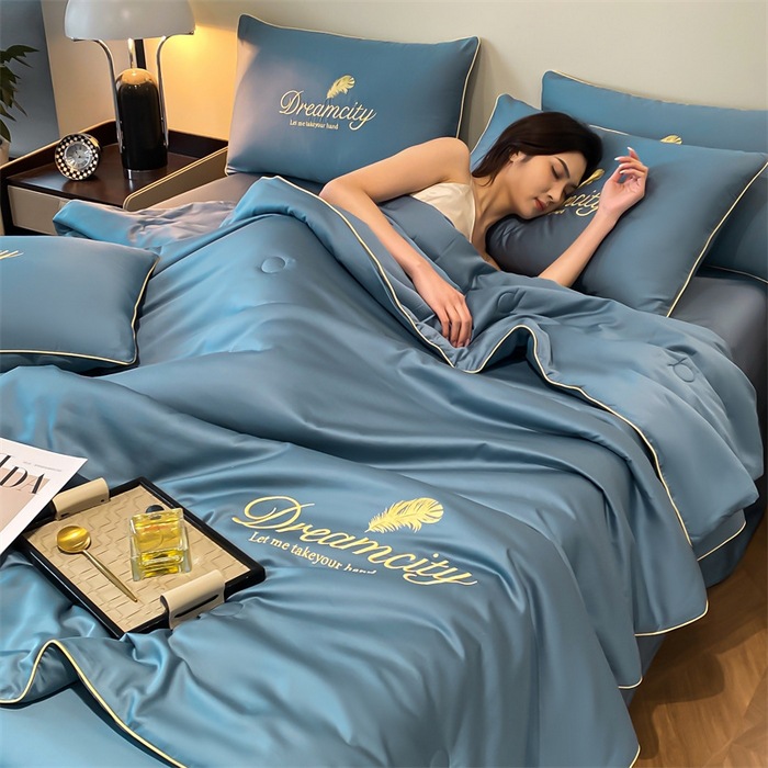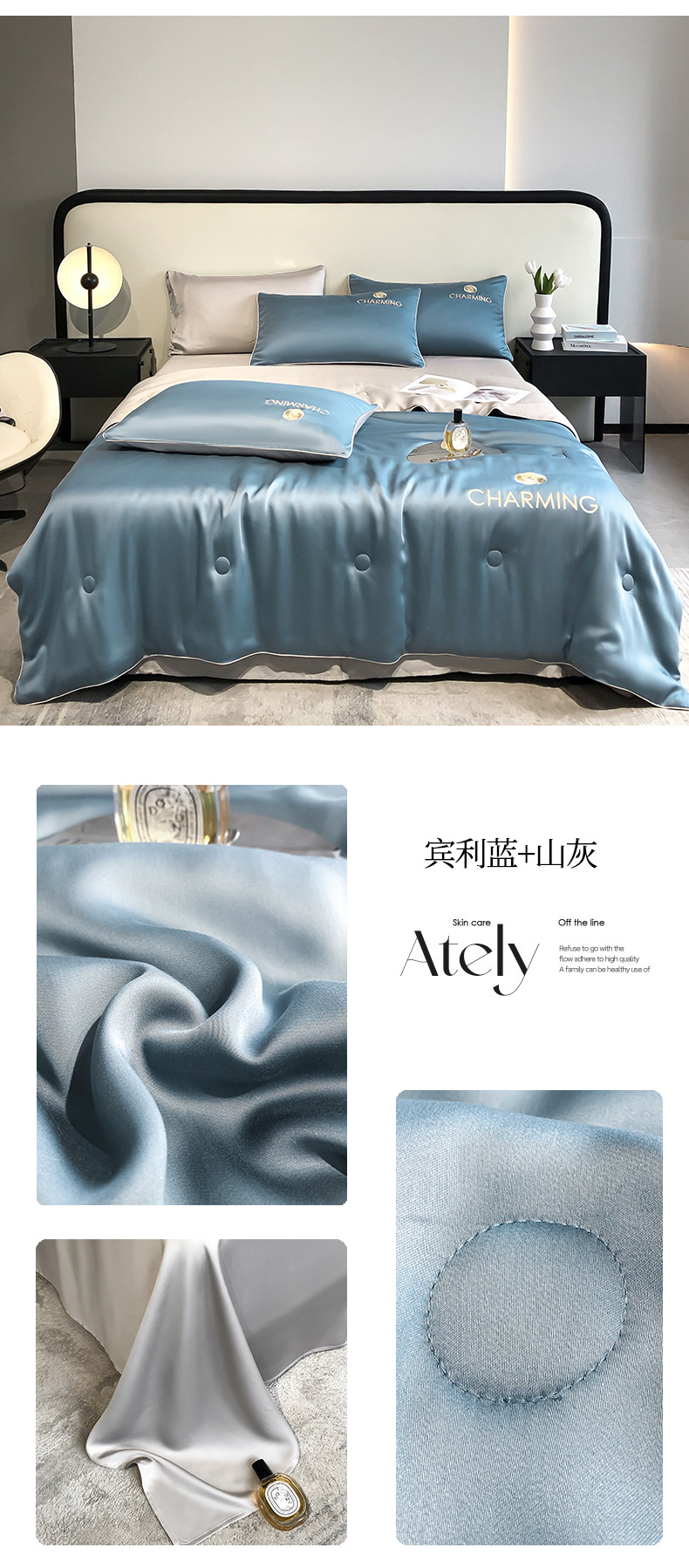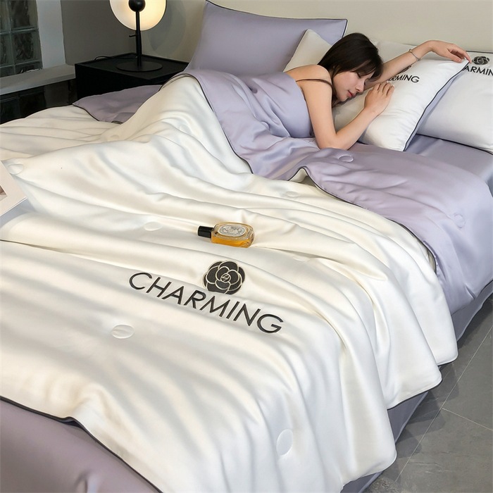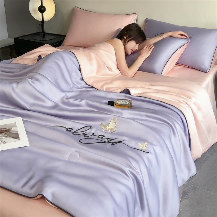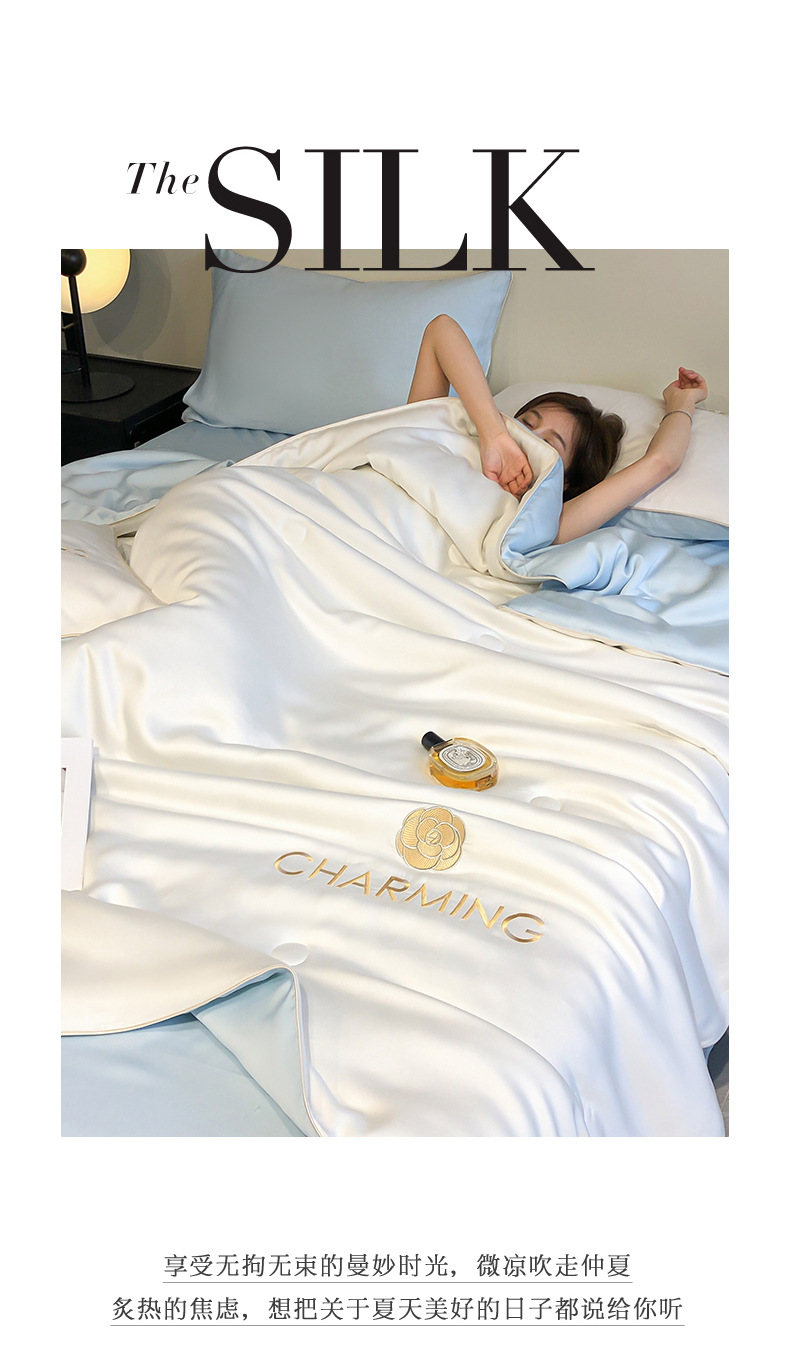 新款水洗真丝刺绣夏被四件套纯色混搭夏凉被高级空调被夏季薄被子