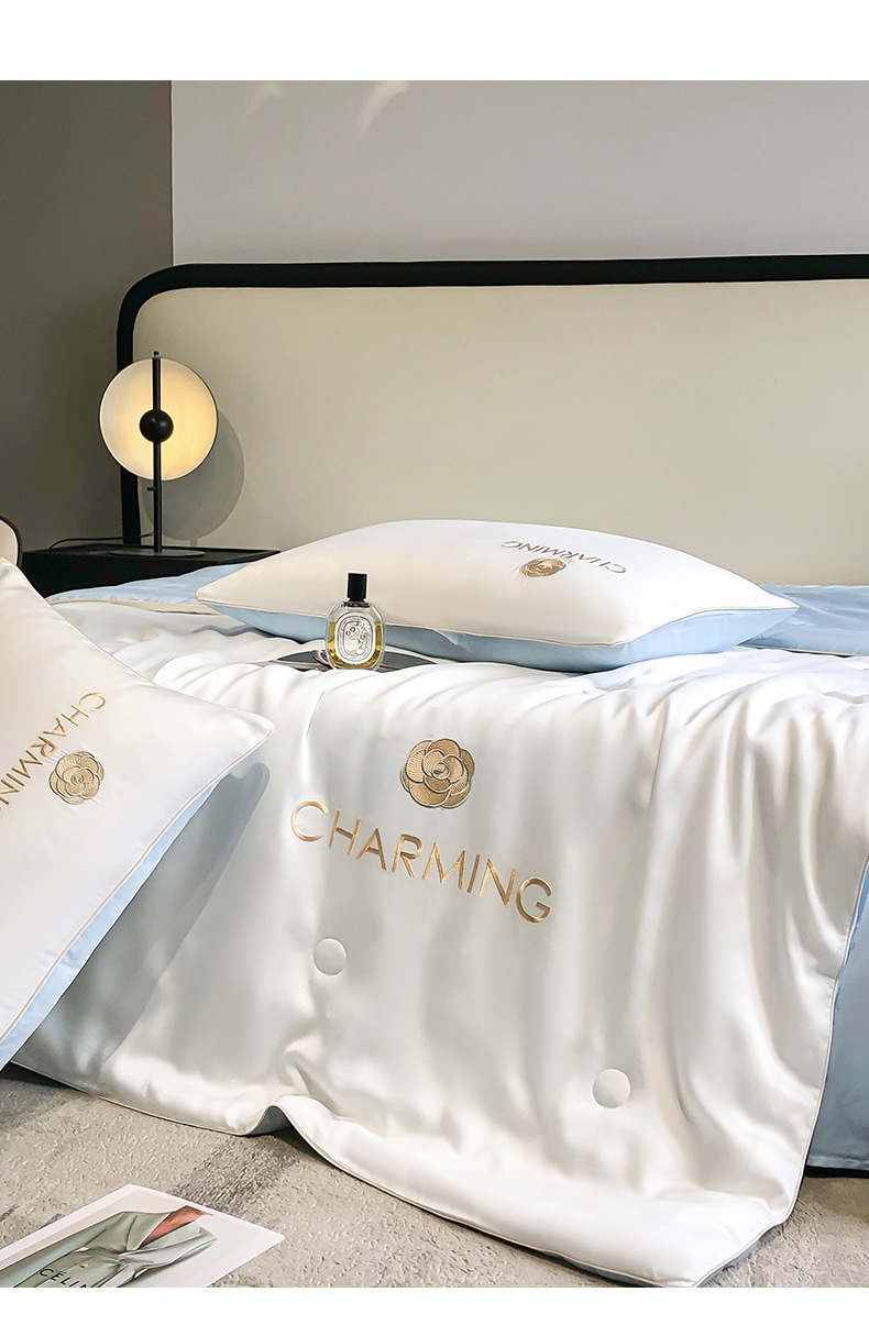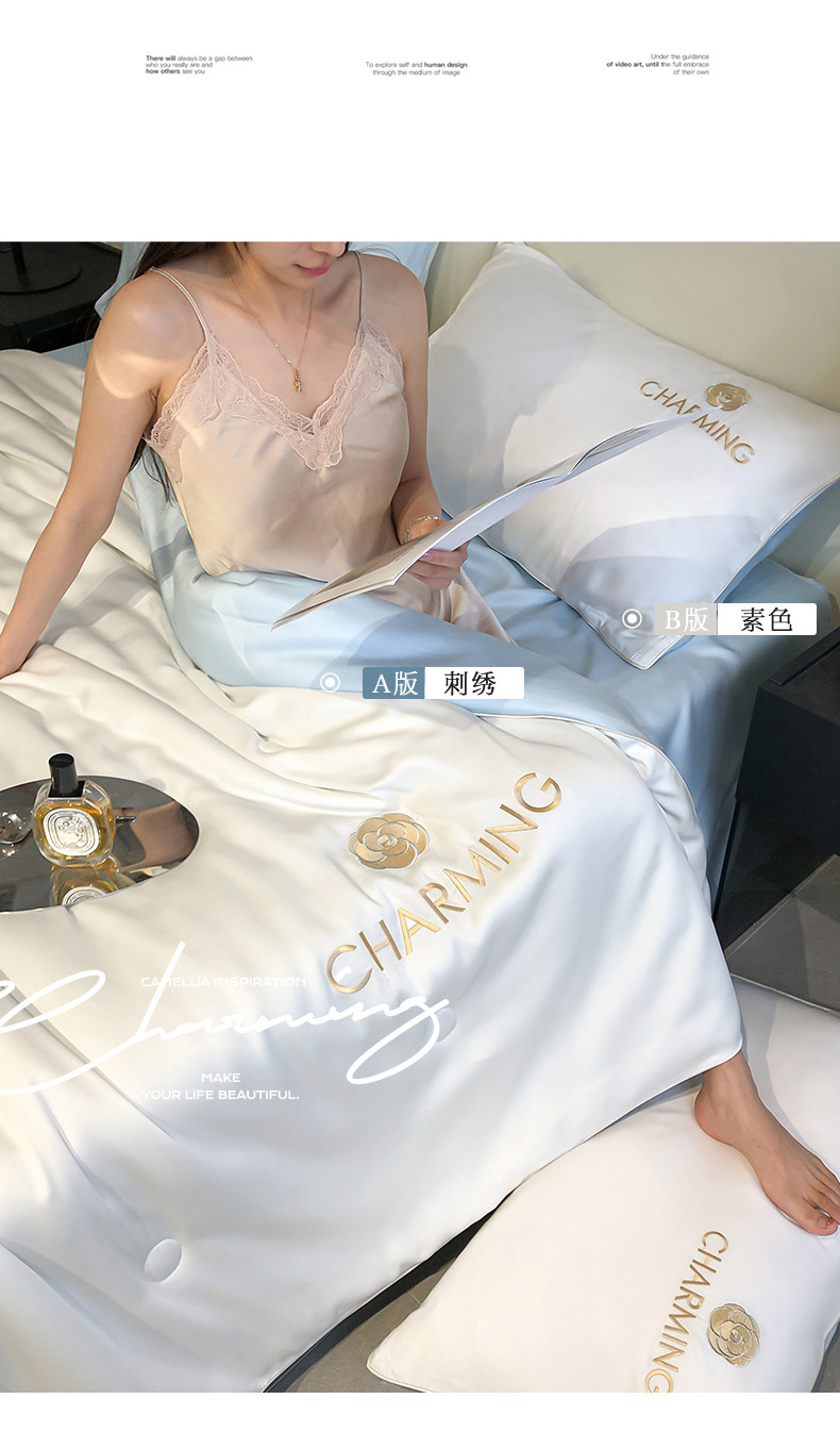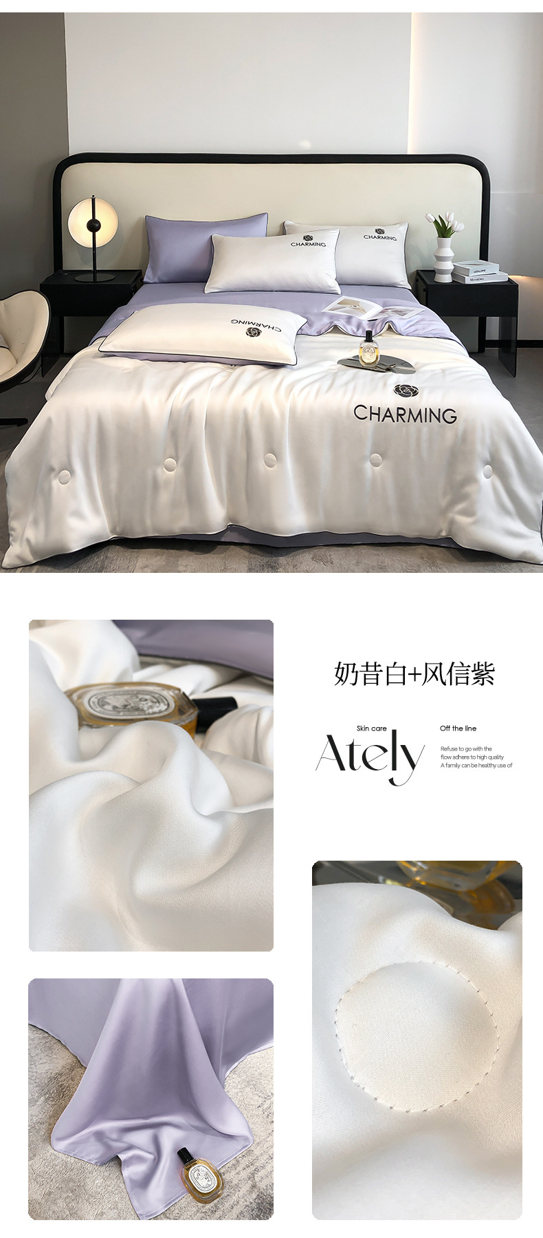 新款水洗真丝刺绣夏被四件套纯色混搭夏凉被高级空调被夏季薄被子