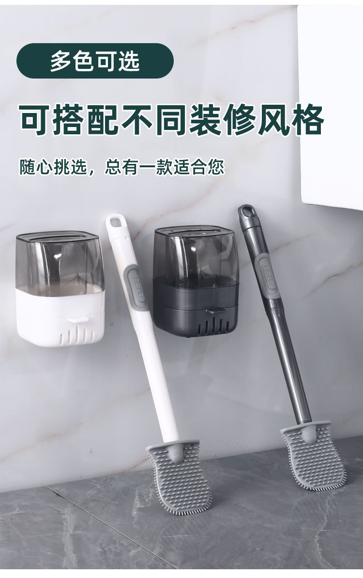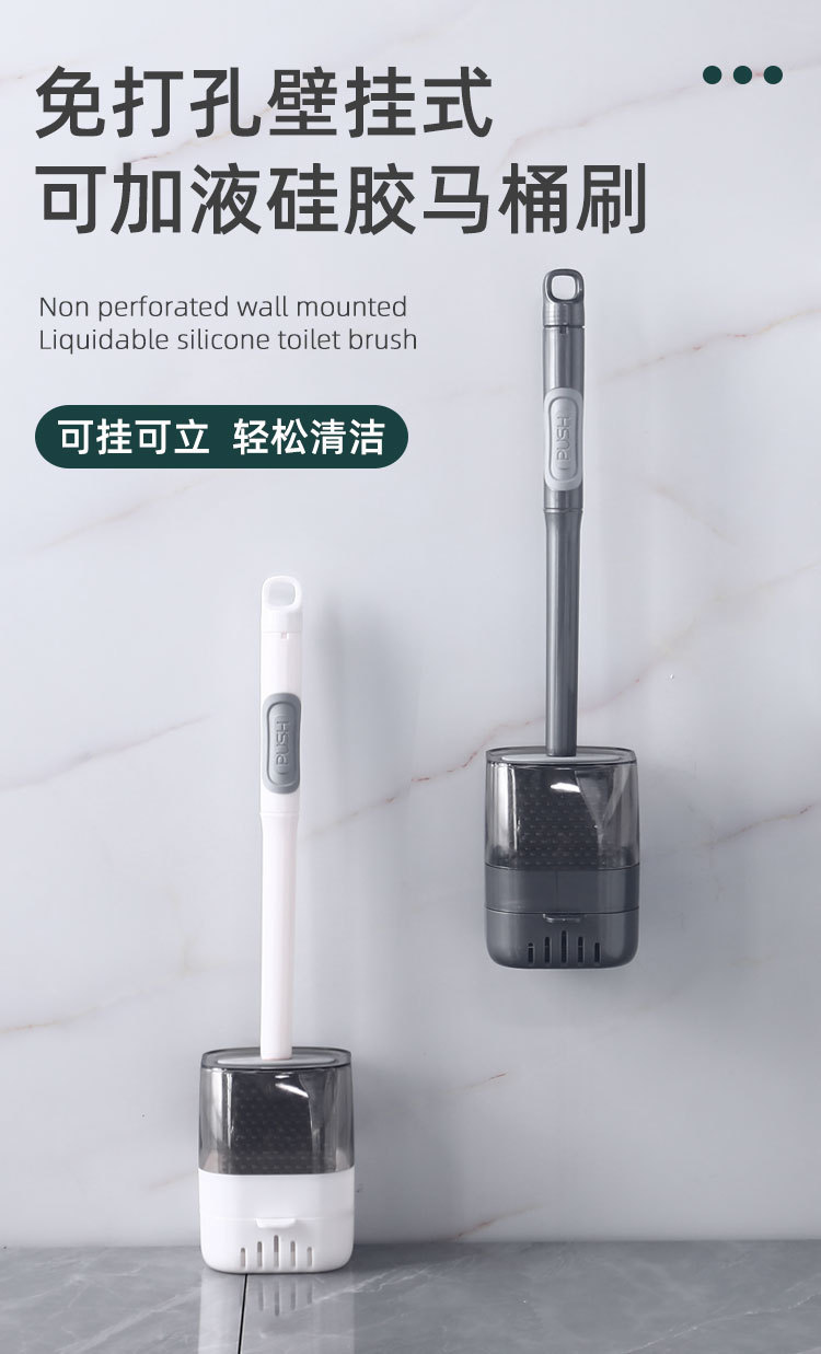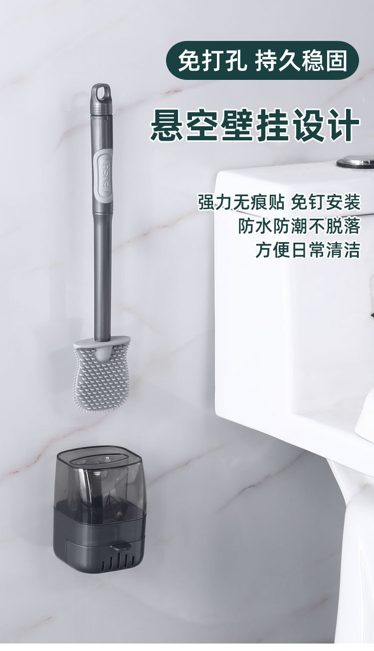 马桶刷免打孔卫生间壁挂式沥水盒加液硅胶套装无死角洗厕所 刷子
