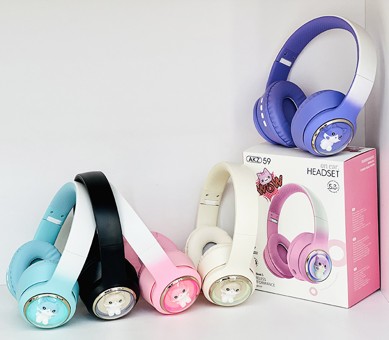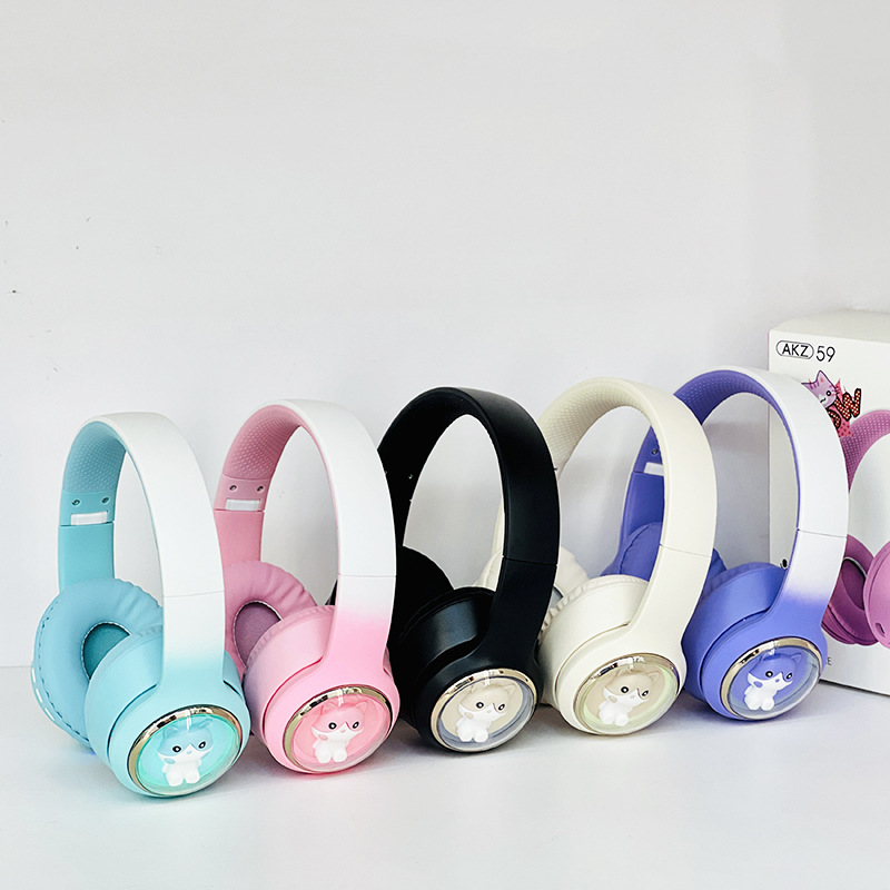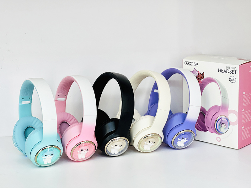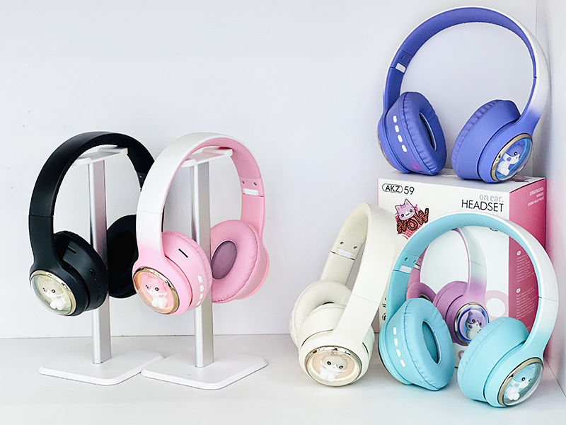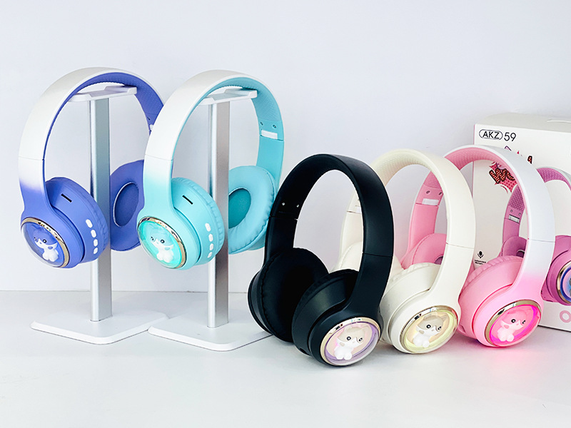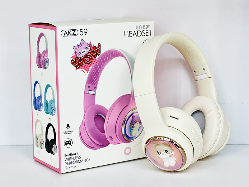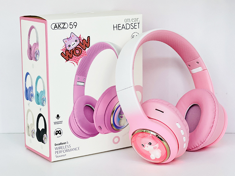 AKZ-59跨境无线头戴式可折叠蓝牙耳机可爱卡通游戏重低音超长续航