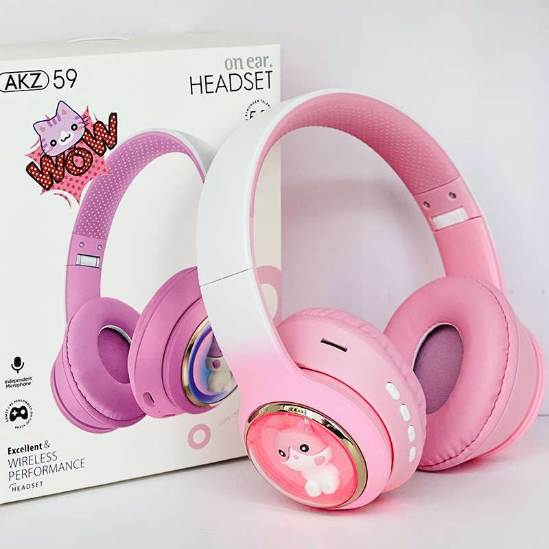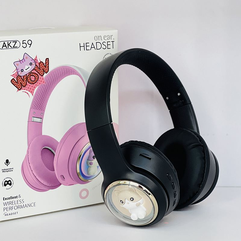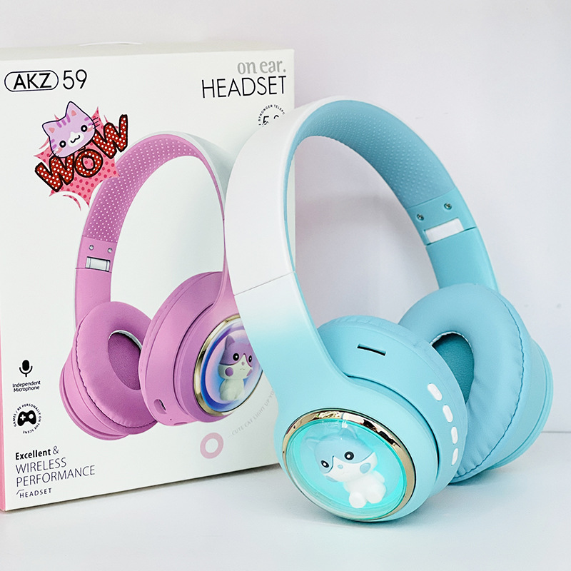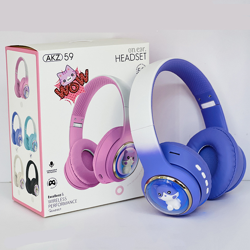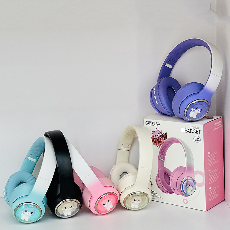 AKZ-59跨境无线头戴式可折叠蓝牙耳机可爱卡通游戏重低音超长续航