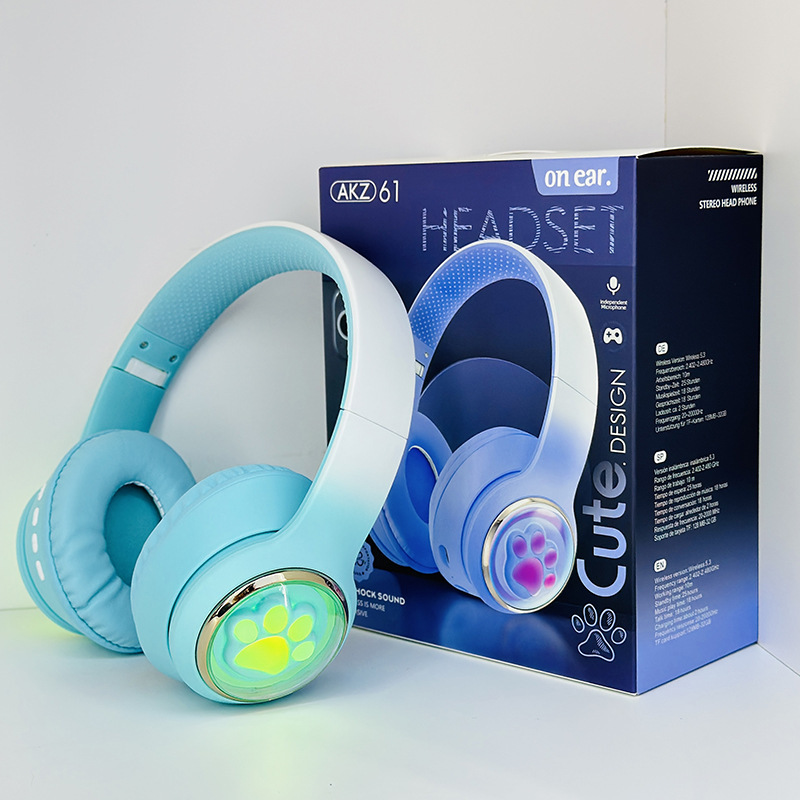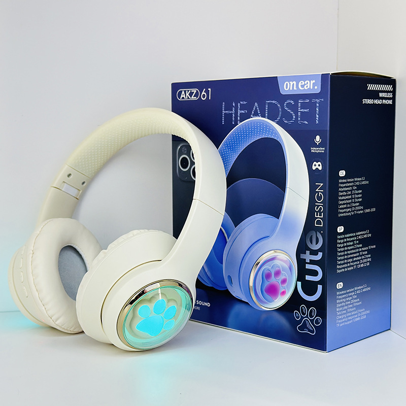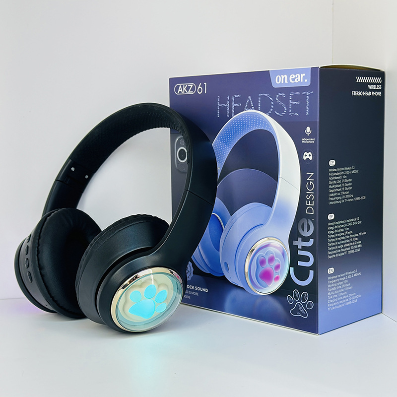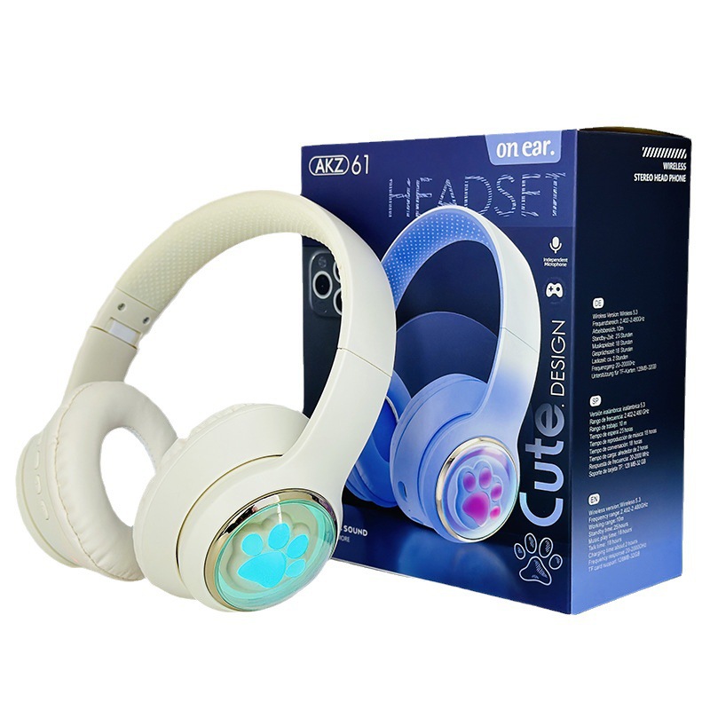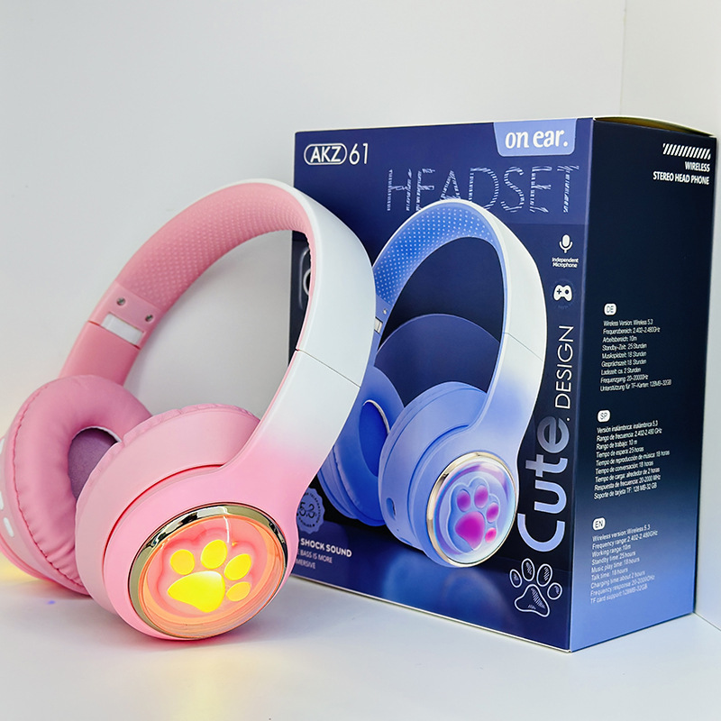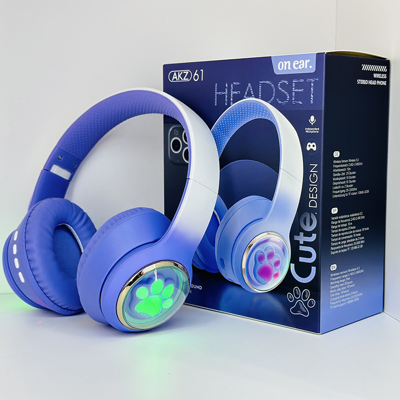 AKZ-61 跨境新款发光太空舱可爱猫爪头戴式无线蓝牙耳机无线耳麦
