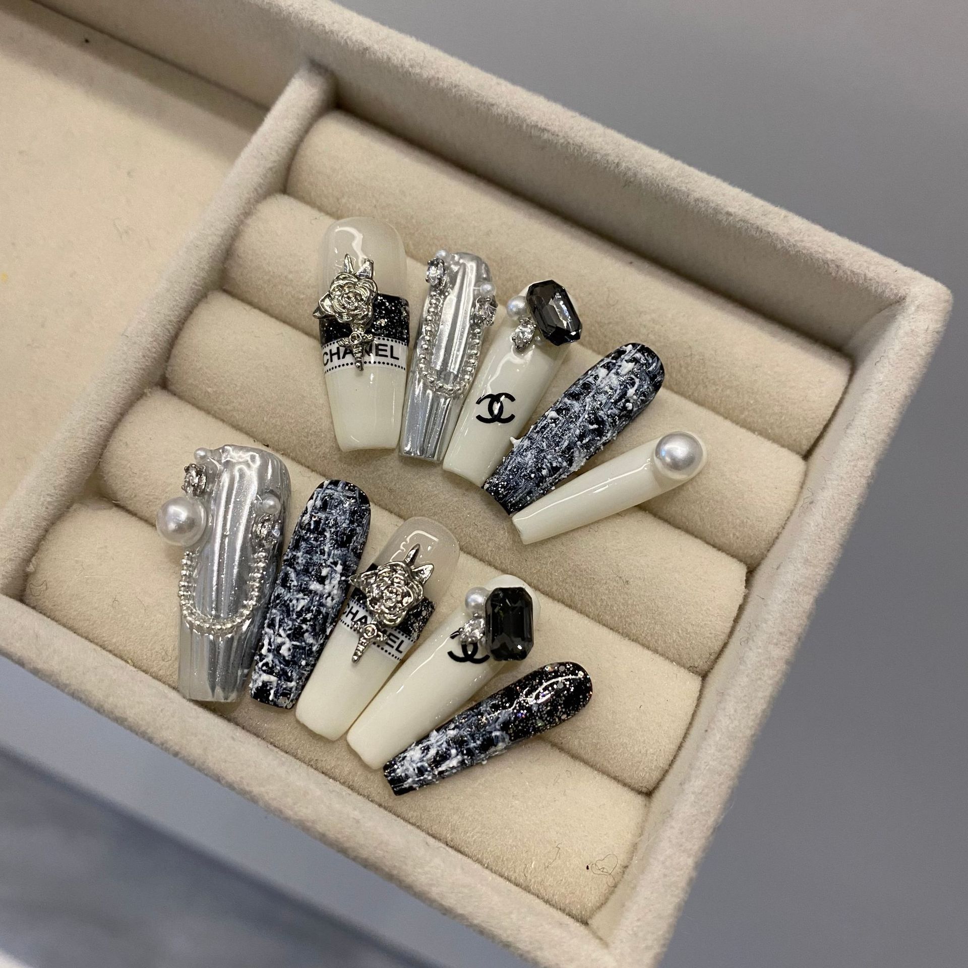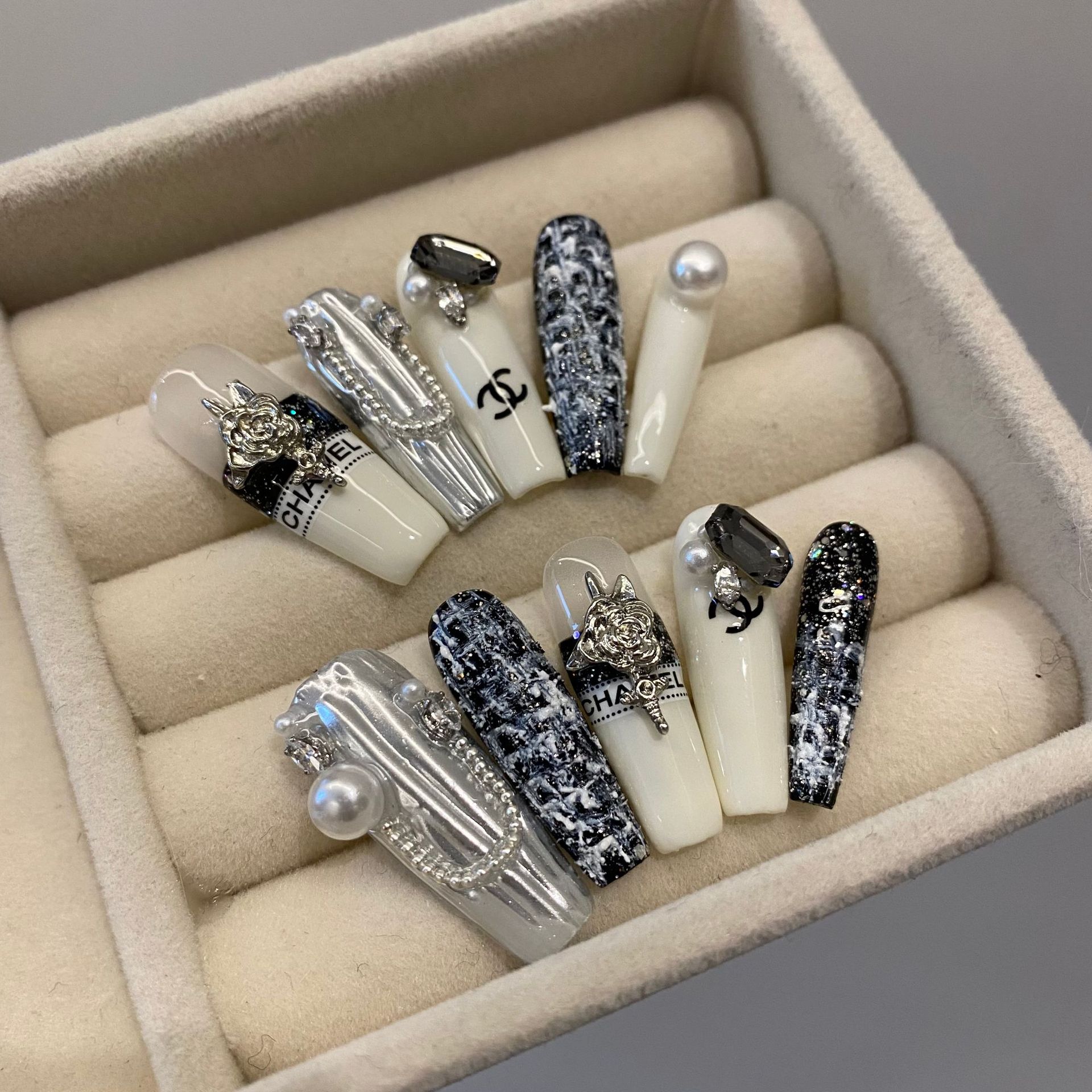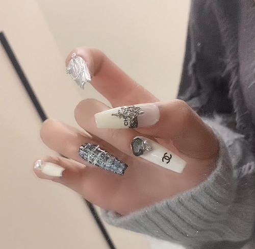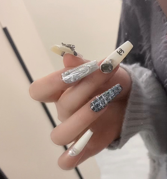 1675小香风百搭法式重工轻奢款超长梯小红书爆款纯手工穿戴甲现货