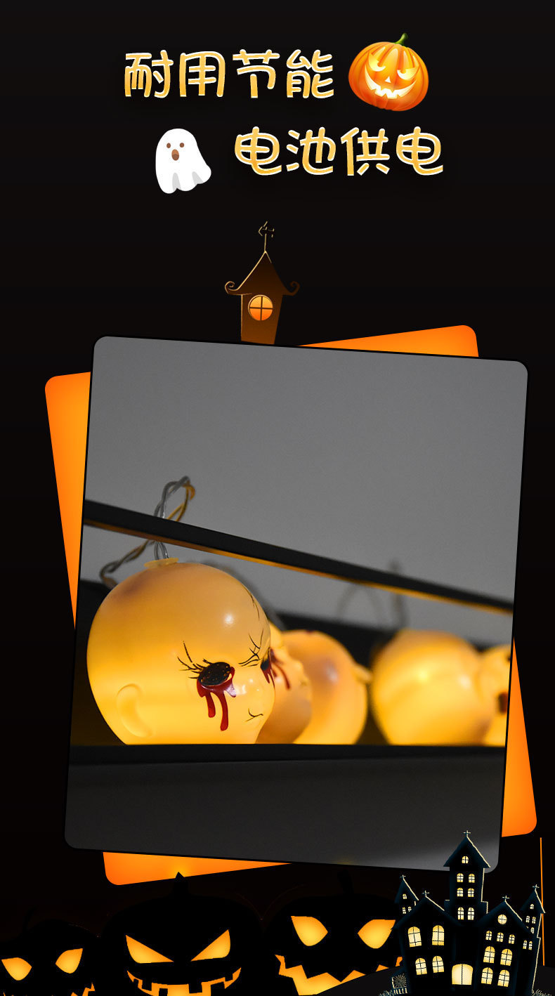 跨境爆款万圣节灯串 室外装饰氛围布置道具 万圣节日派对鬼脸灯串
