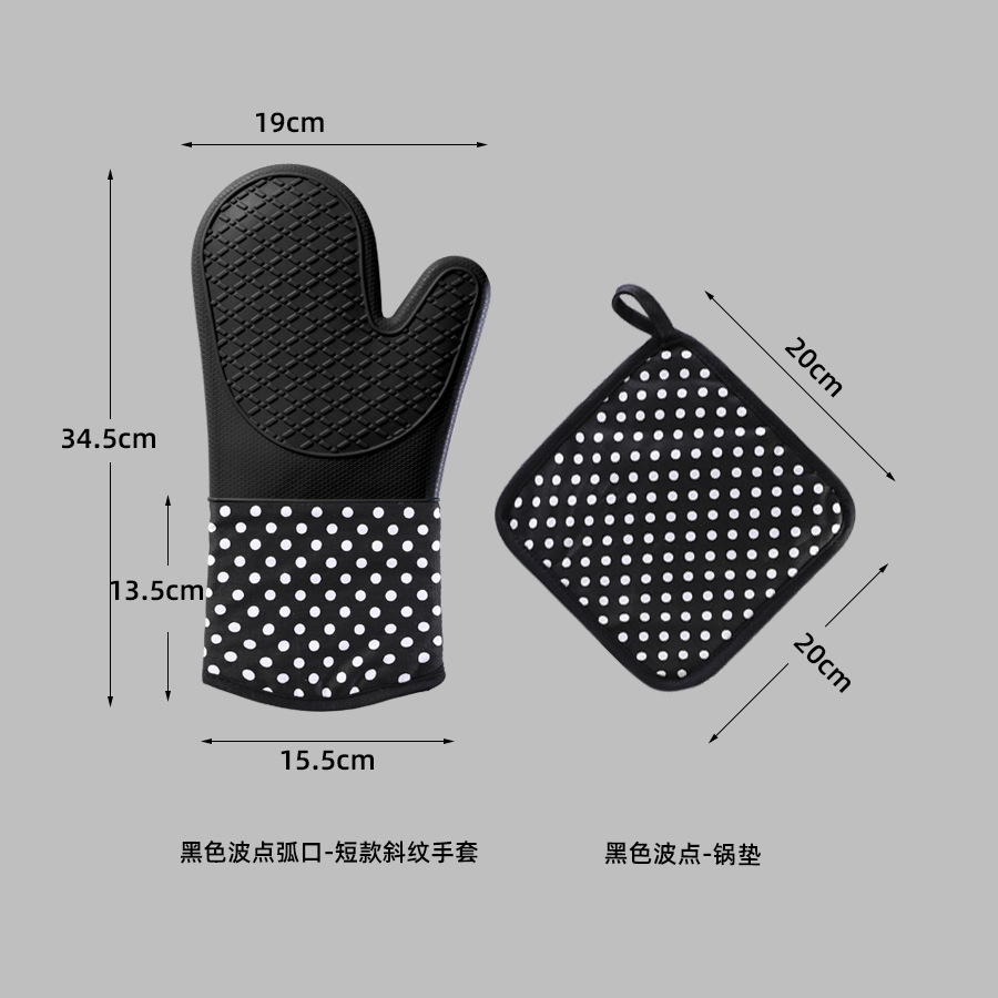 | 黑色波点弧口-短款斜纹手套 | 5*19cm袖口宽15.5cm | 130(±5)g | |