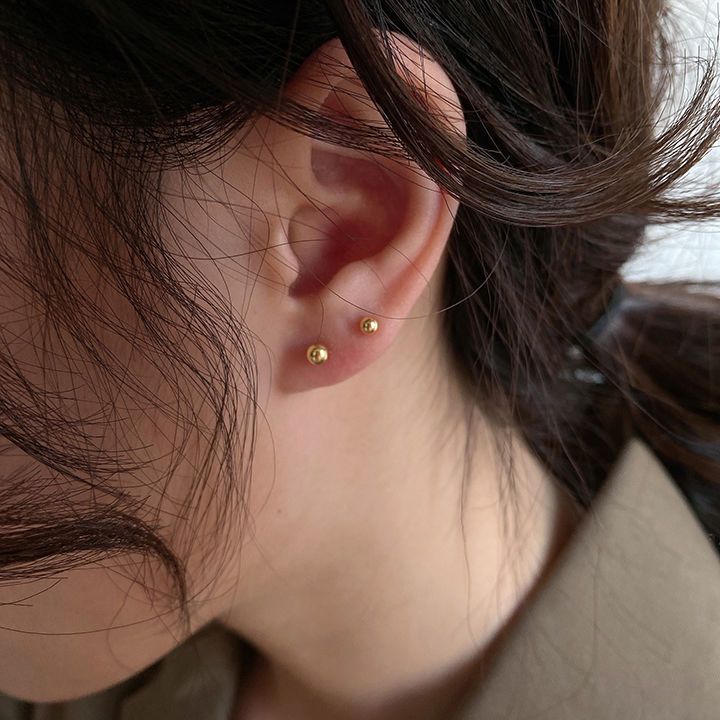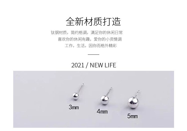 【不掉色不过敏】养耳洞钛钢耳钉百搭圆珠实心耳骨钉简约风耳饰品