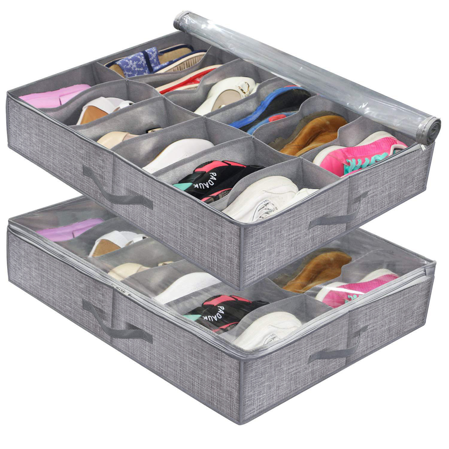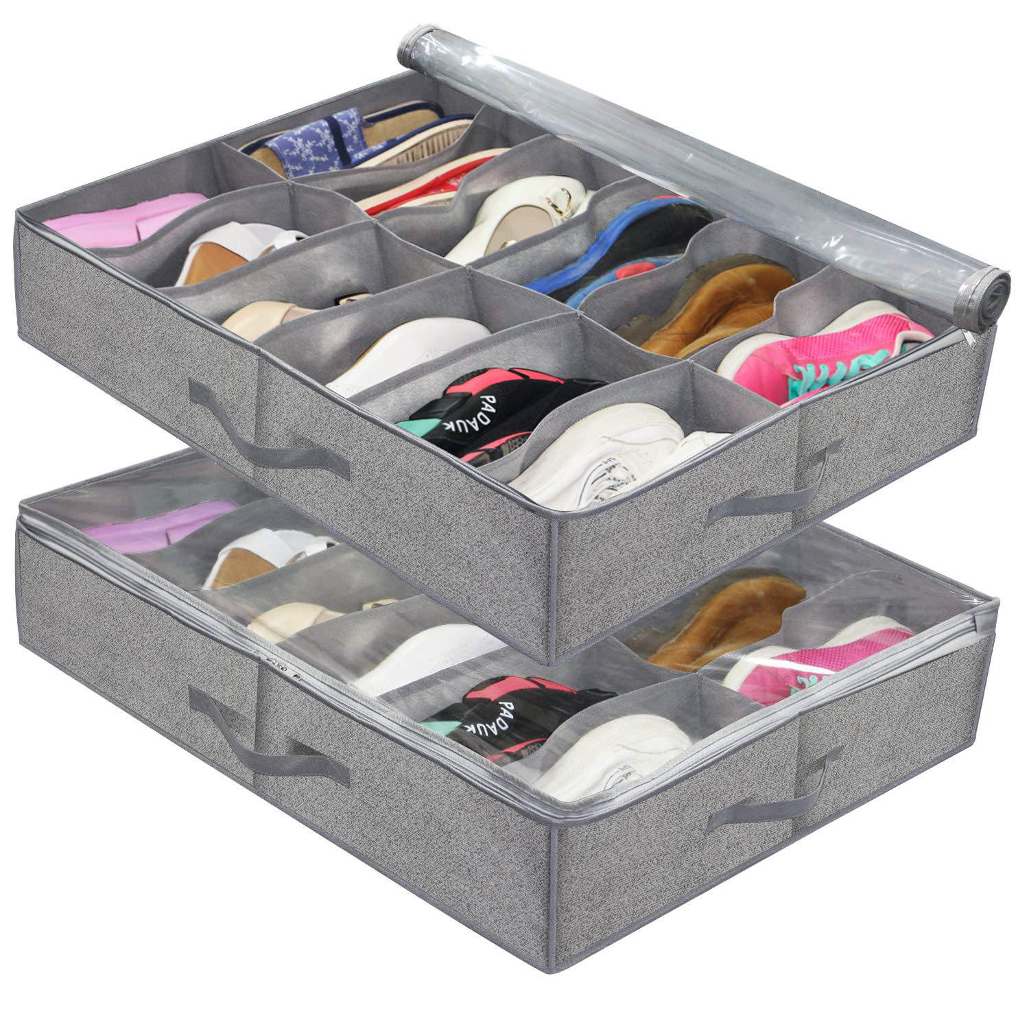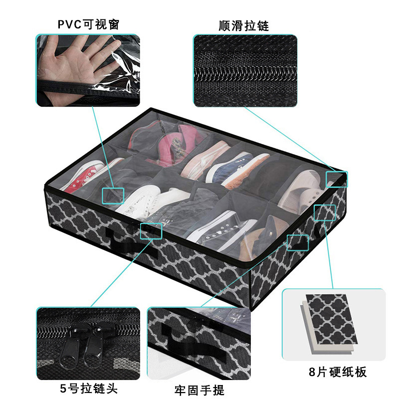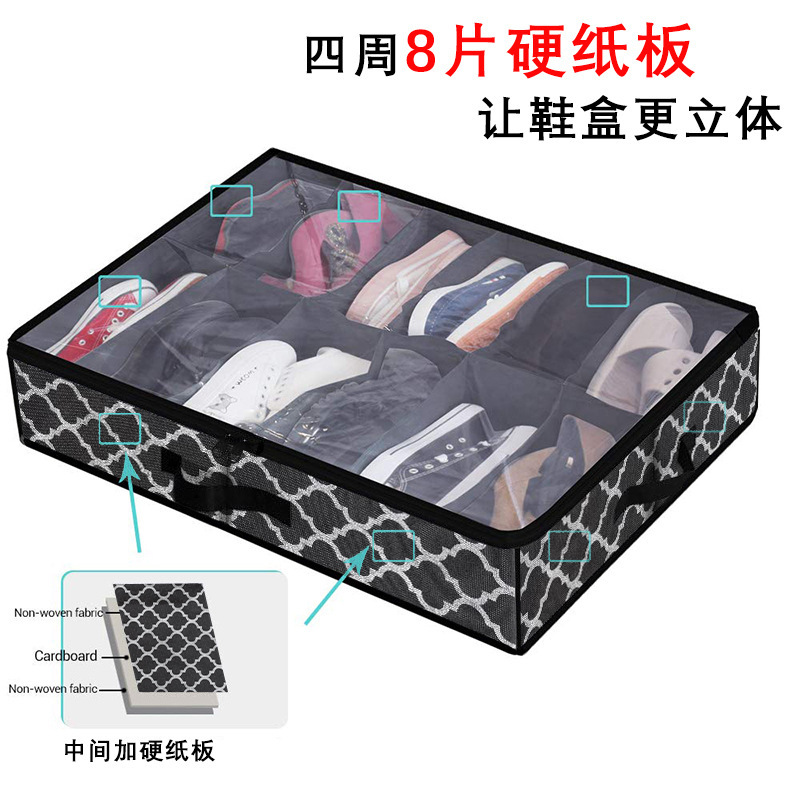 无纺布床底收纳箱家用扁平大容量分格收纳袋亚马逊透明鞋子收纳箱