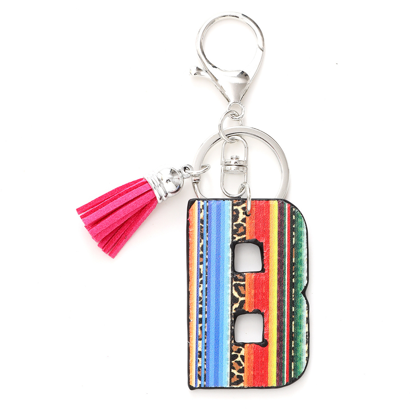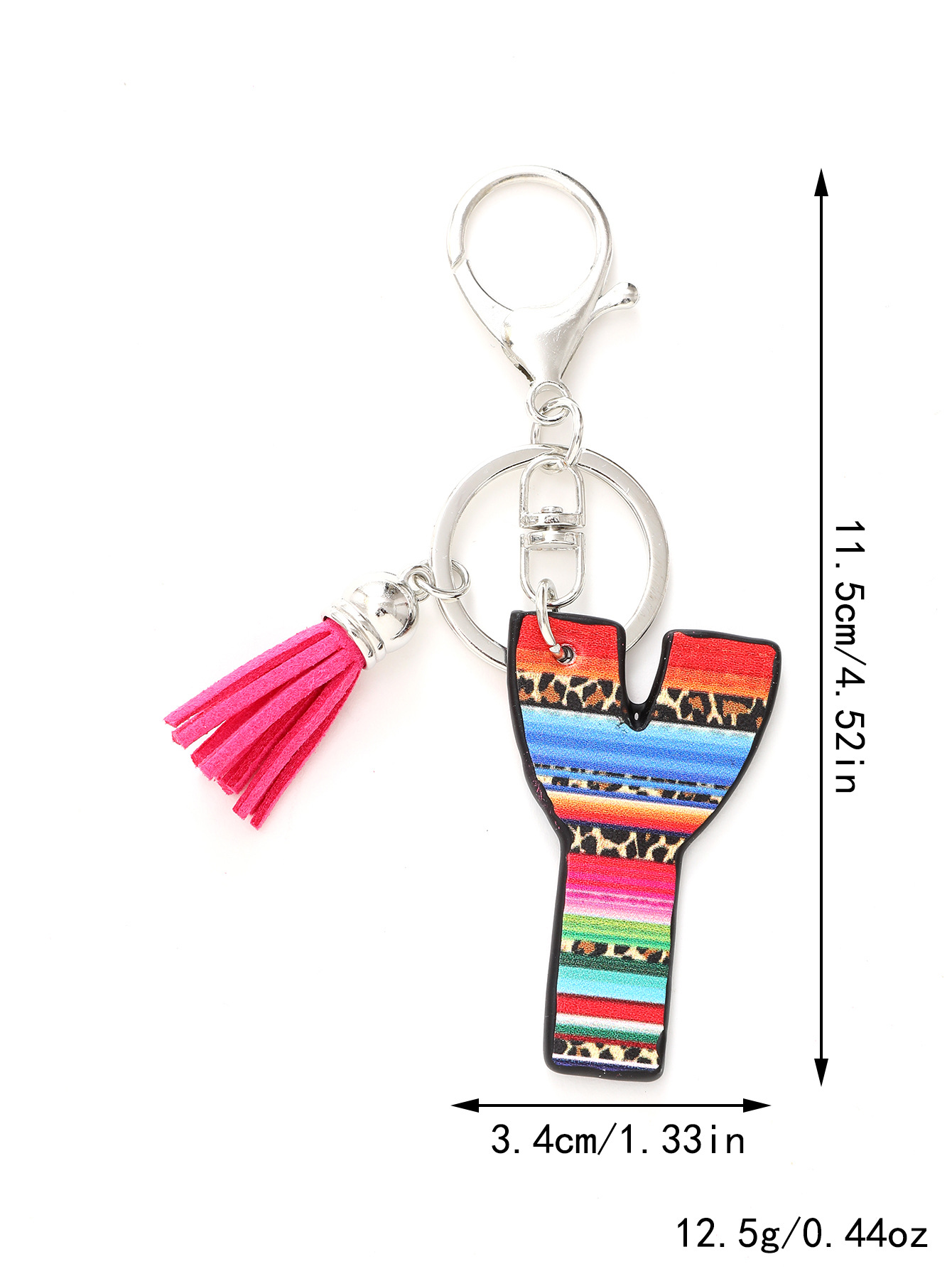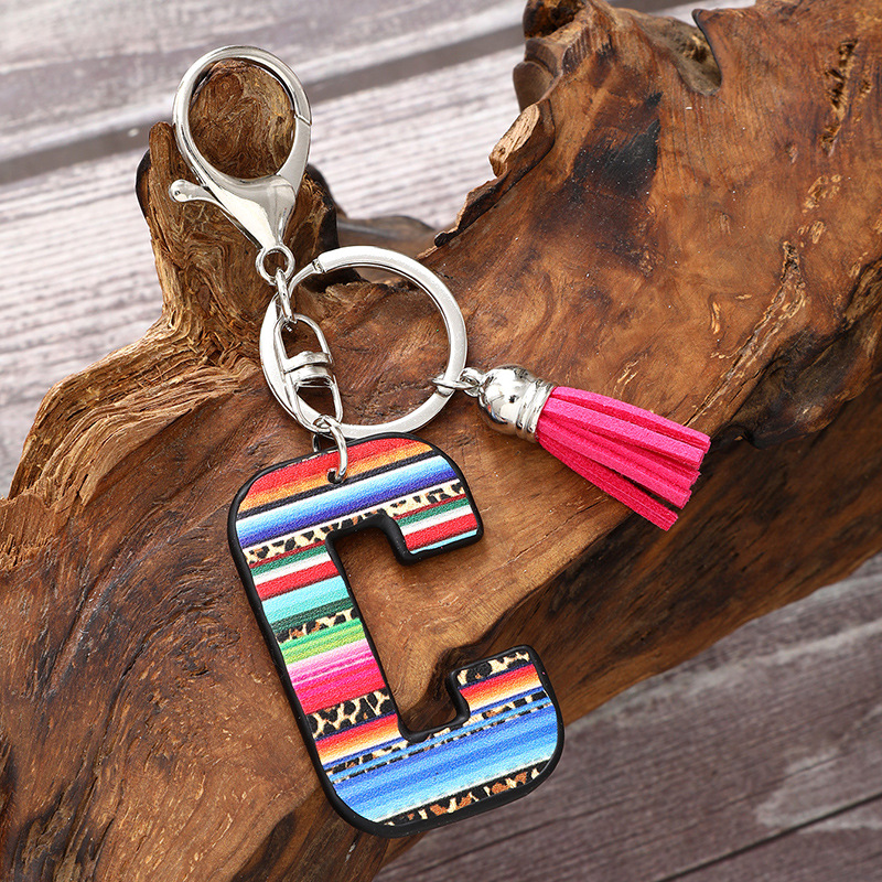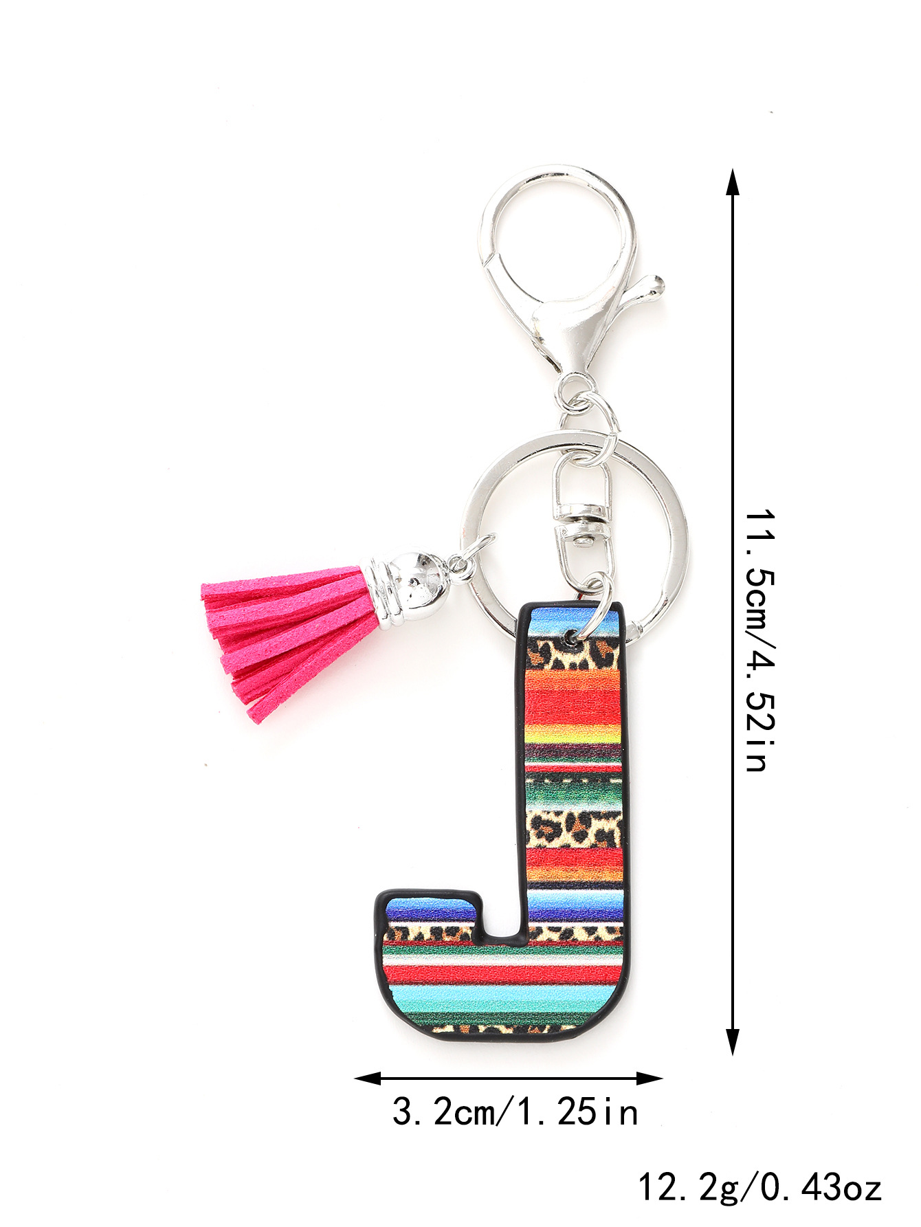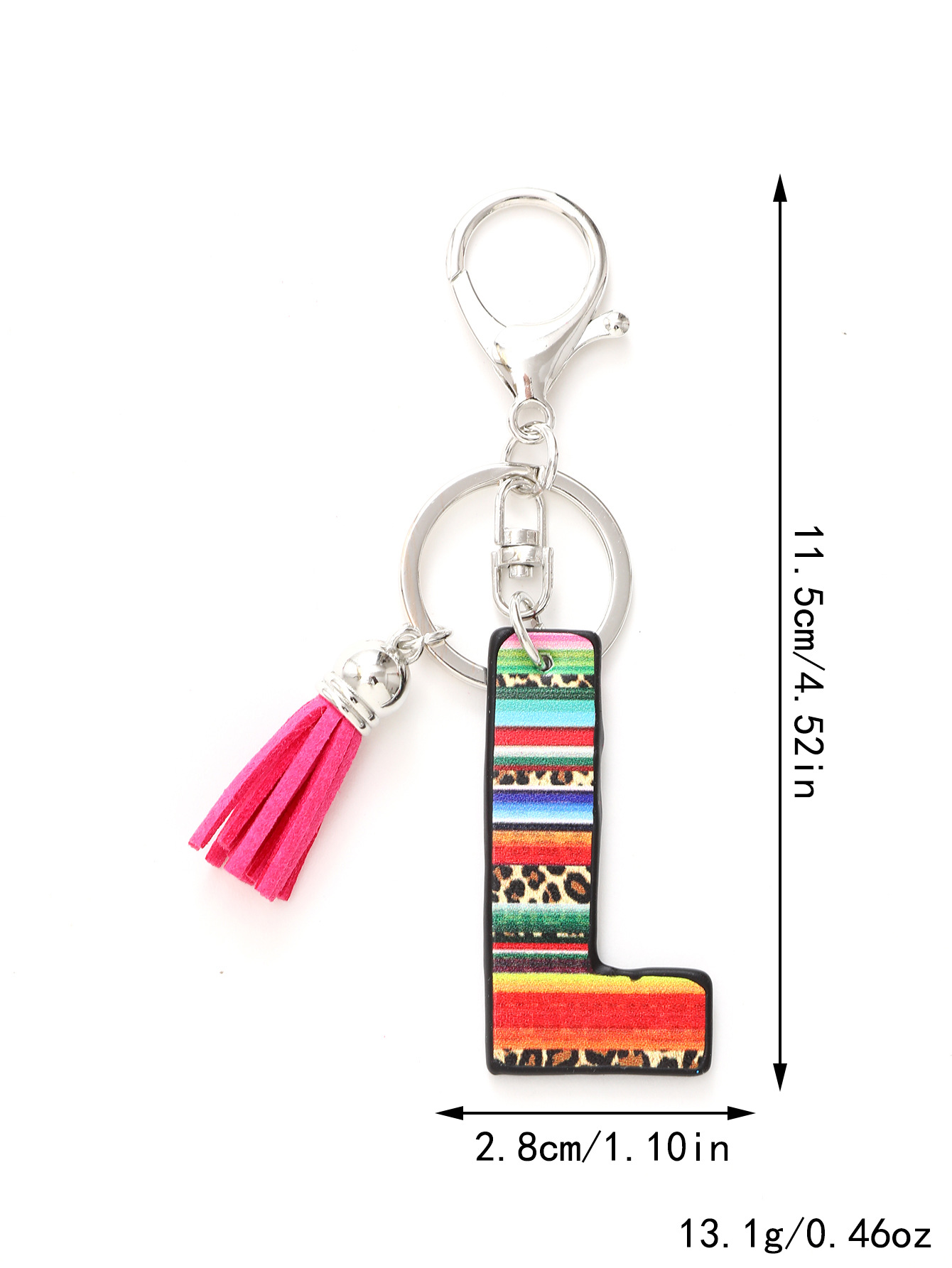 跨境韩国绒流苏彩虹字母钥匙扣豹纹皮革挂件钥匙扣亚马逊速卖通