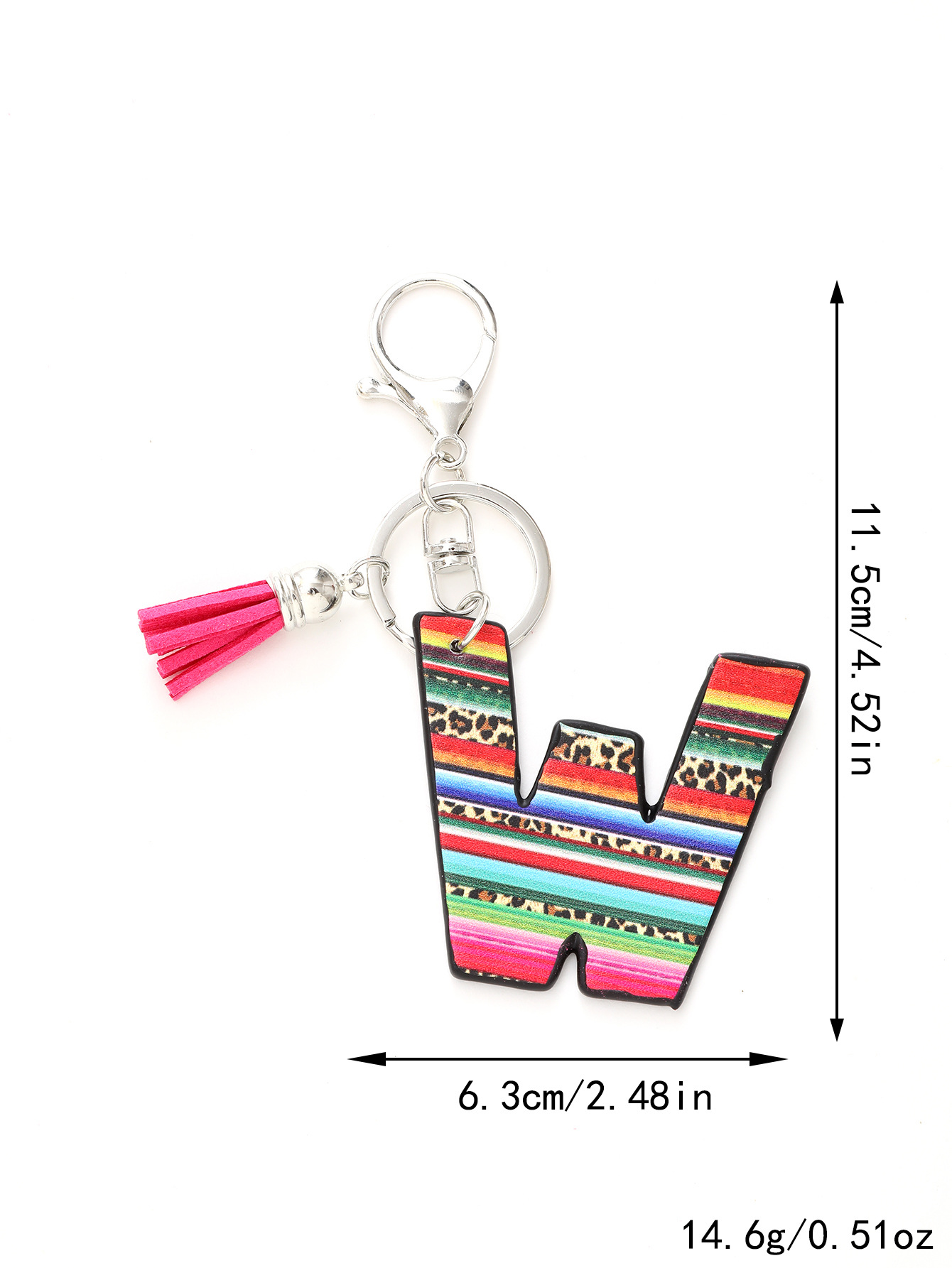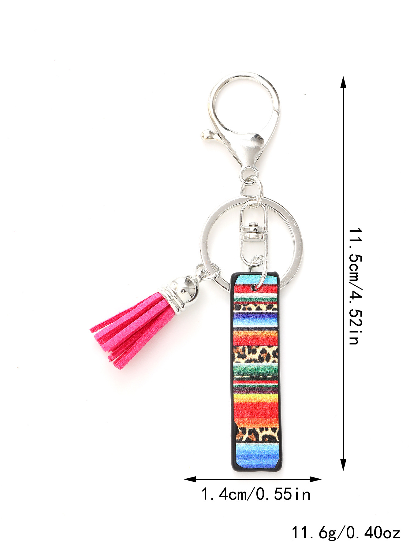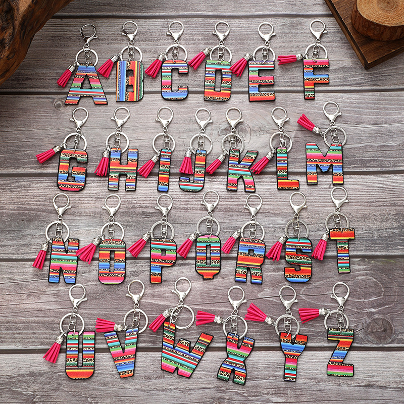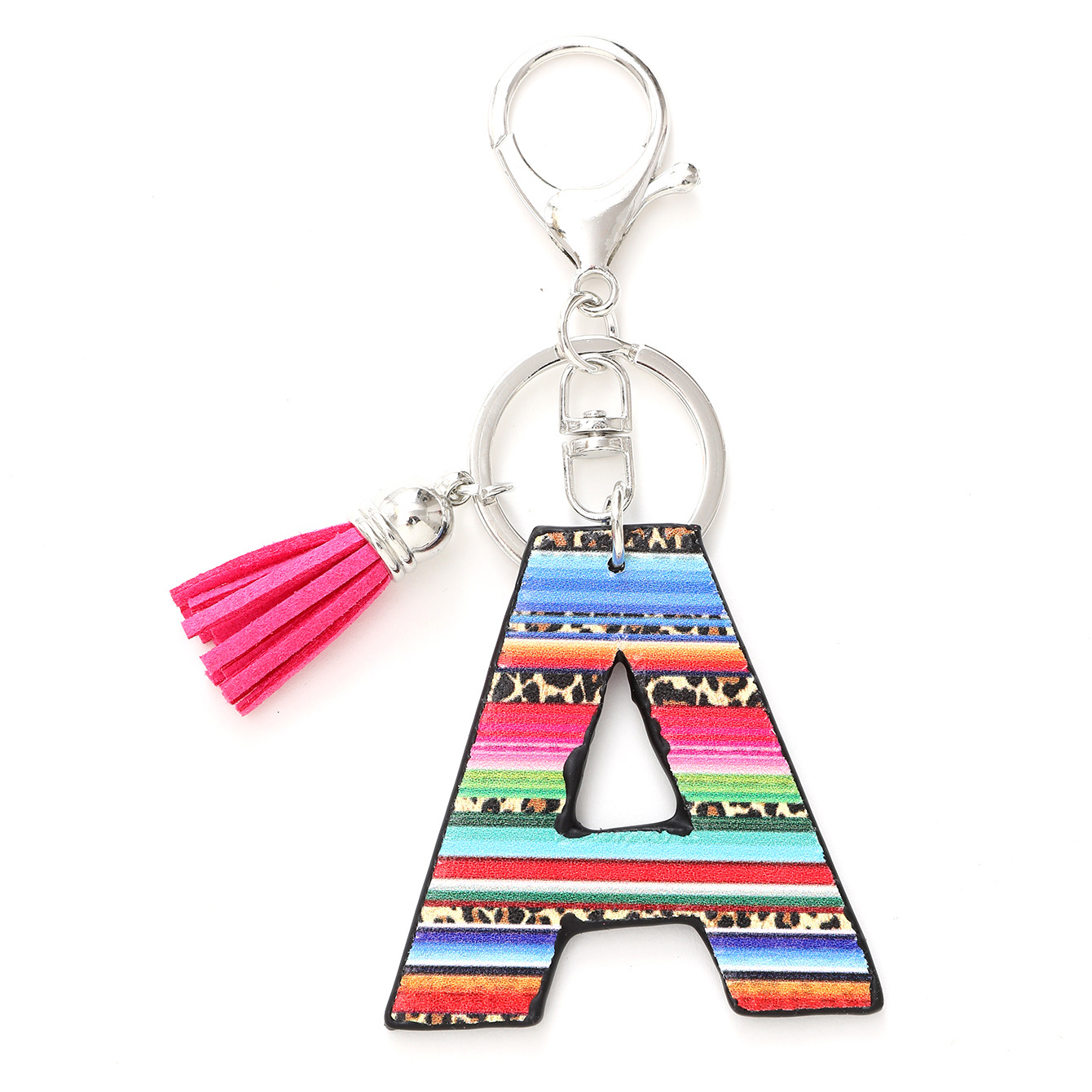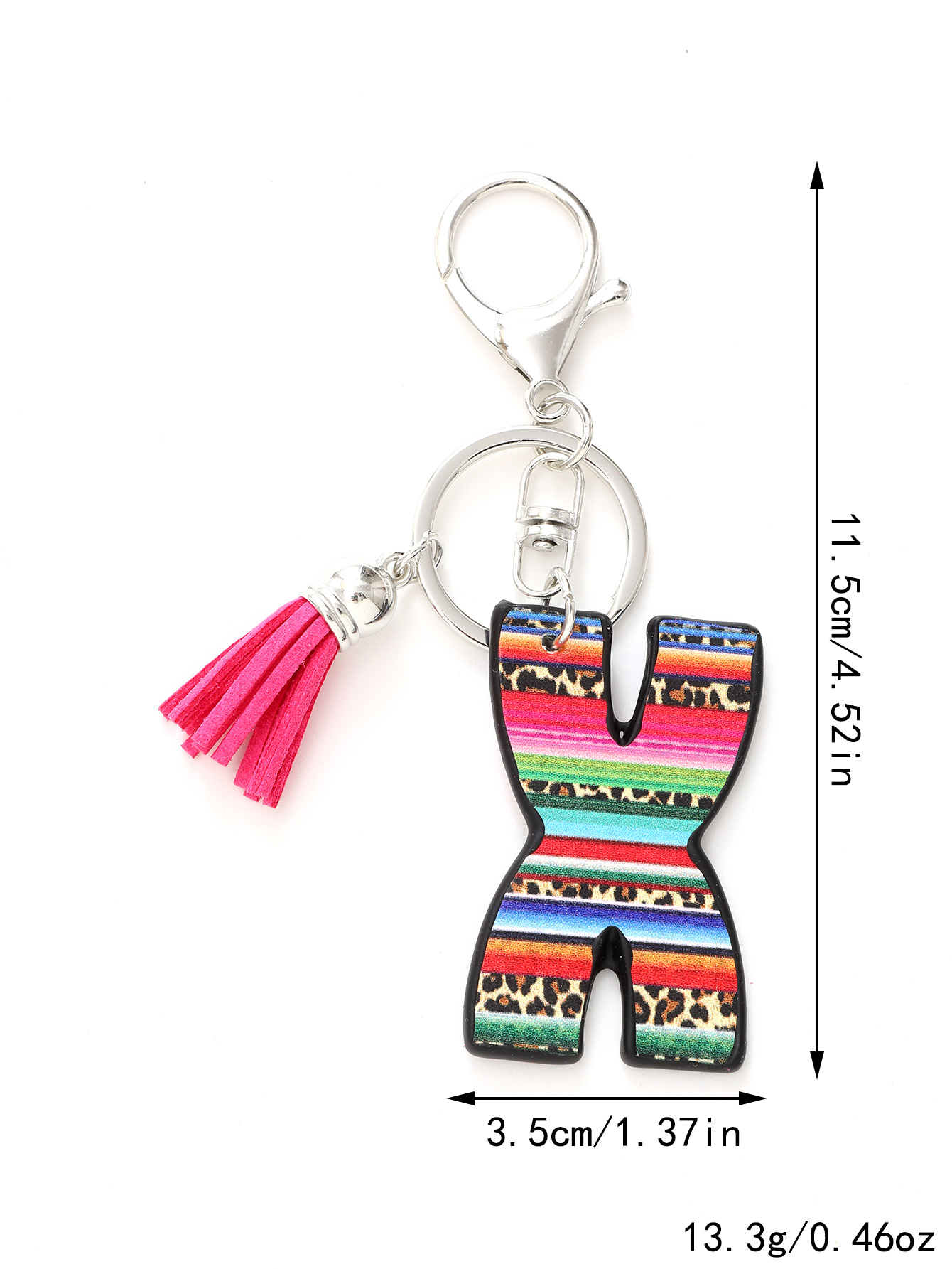 跨境韩国绒流苏彩虹字母钥匙扣豹纹皮革挂件钥匙扣亚马逊速卖通