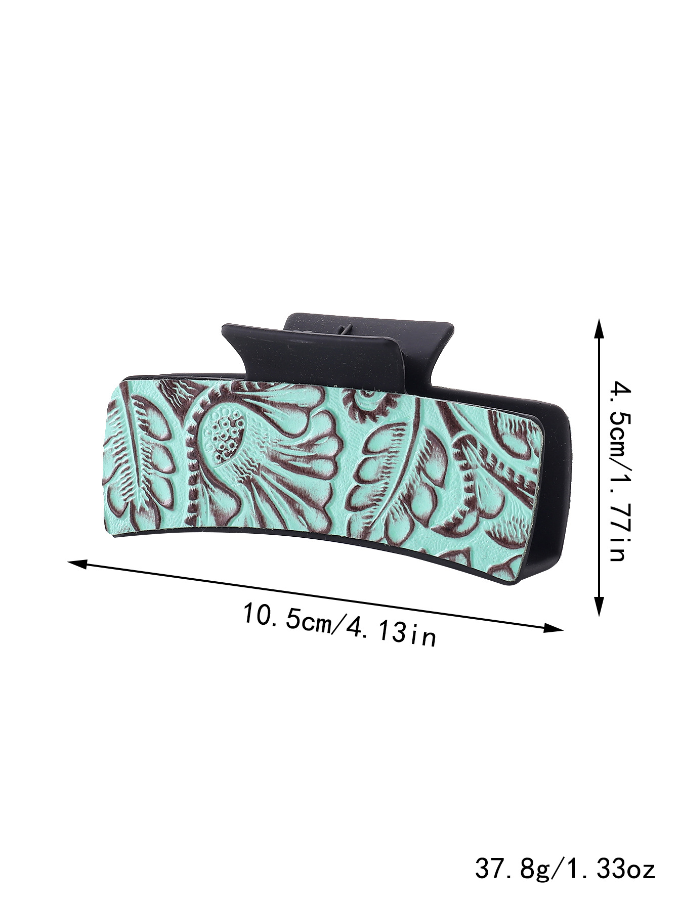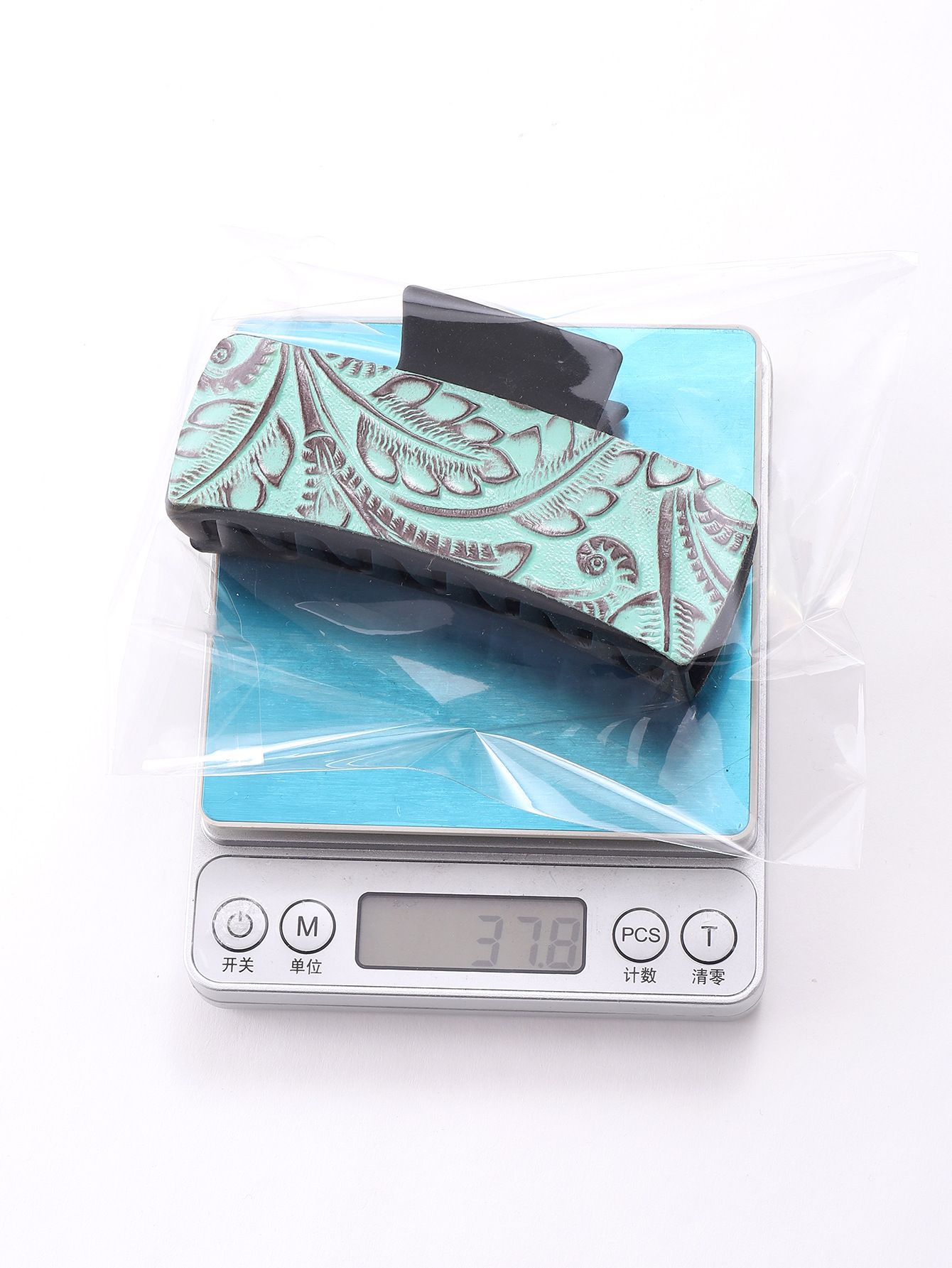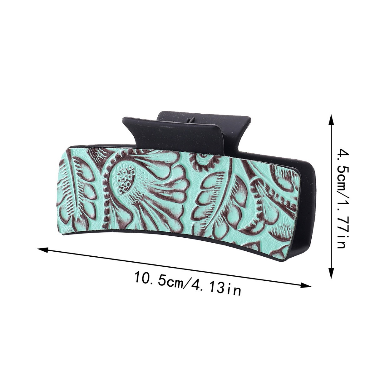 跨境真皮纯色印花纹理百搭鲨鱼夹复古皮革女士发抓夹亚马逊速卖通