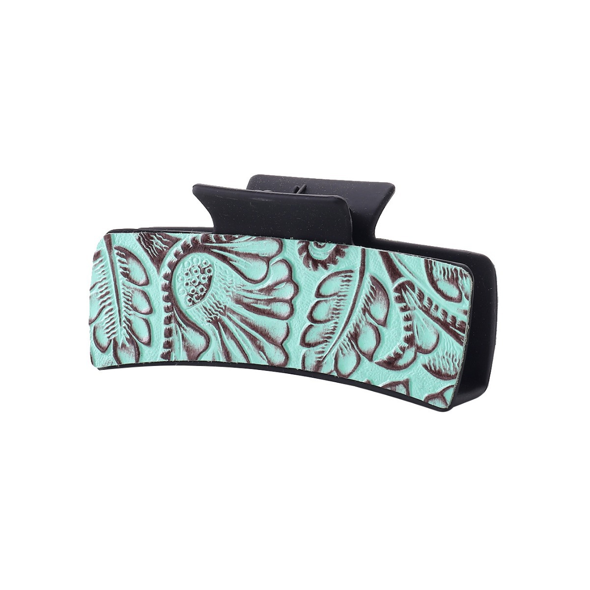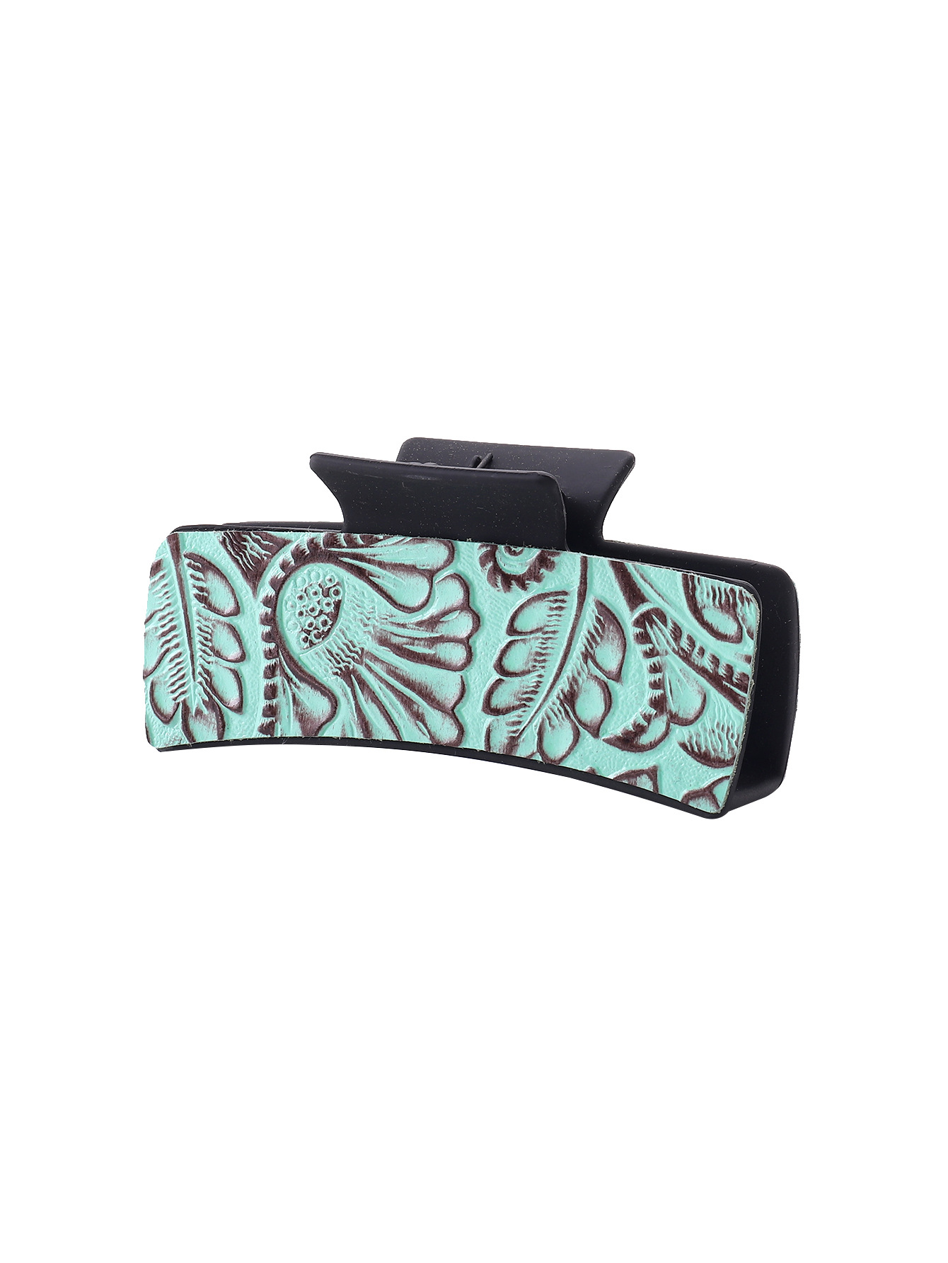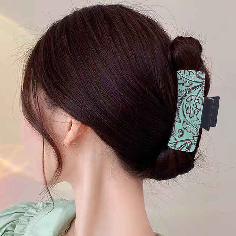 跨境真皮纯色印花纹理百搭鲨鱼夹复古皮革女士发抓夹亚马逊速卖通
