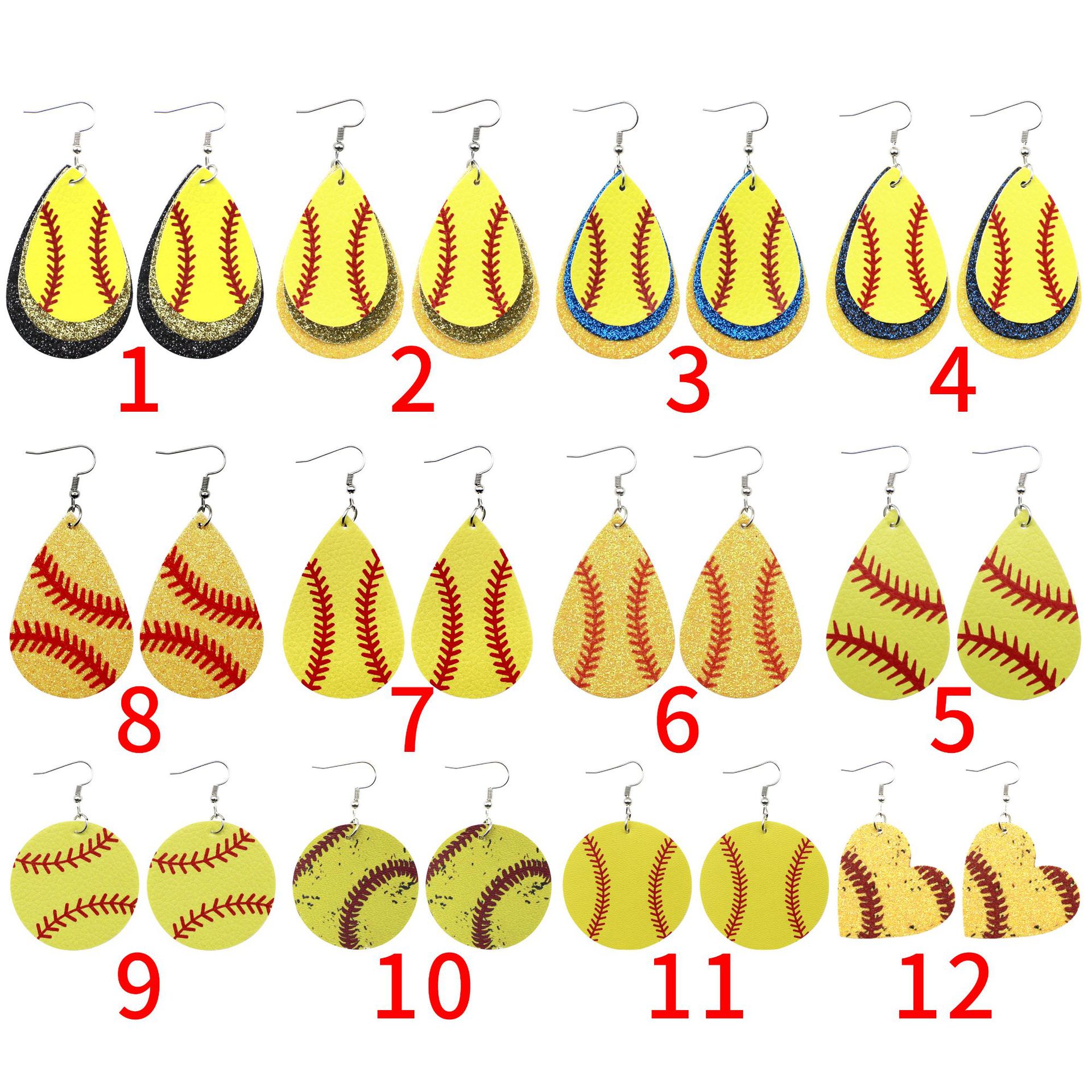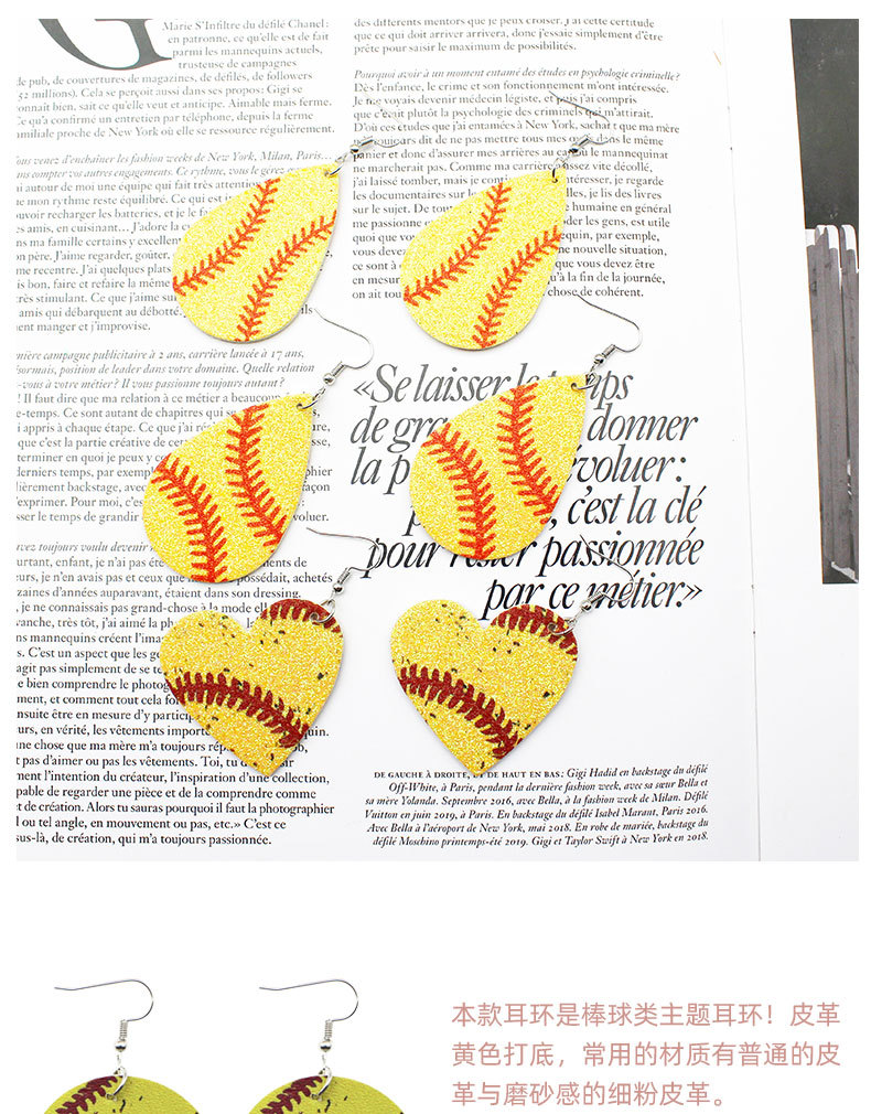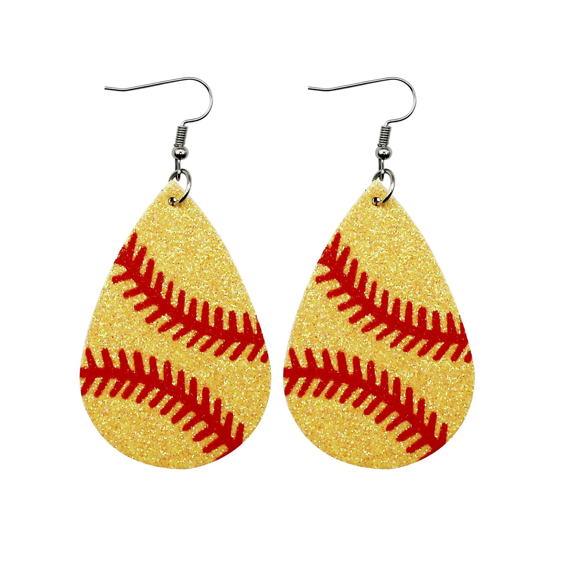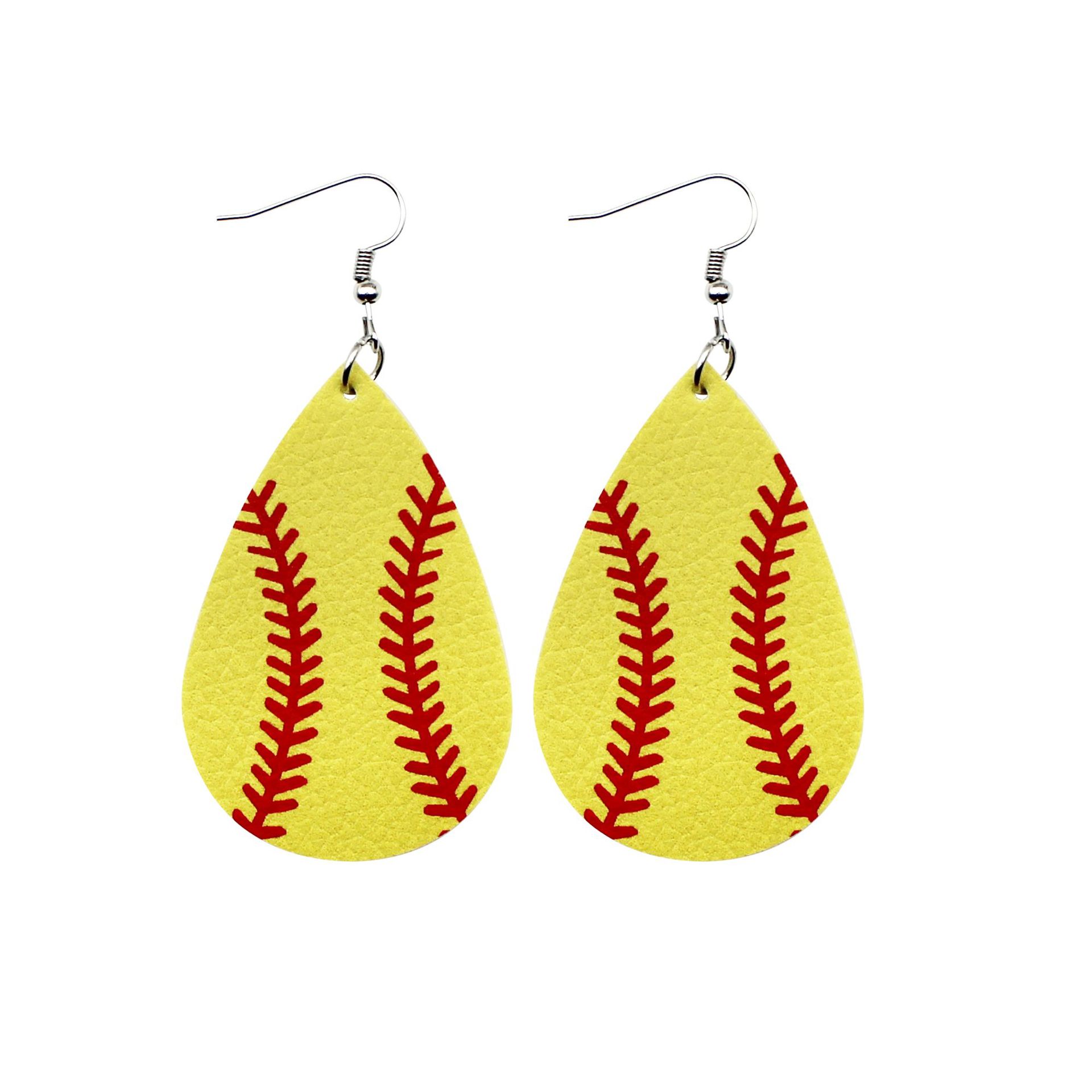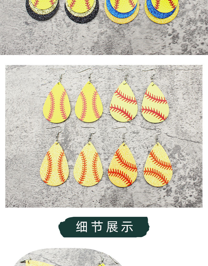 跨境棒球耳环三层水滴皮革耳环爱心球形棒球PU耳环亚马逊速卖通