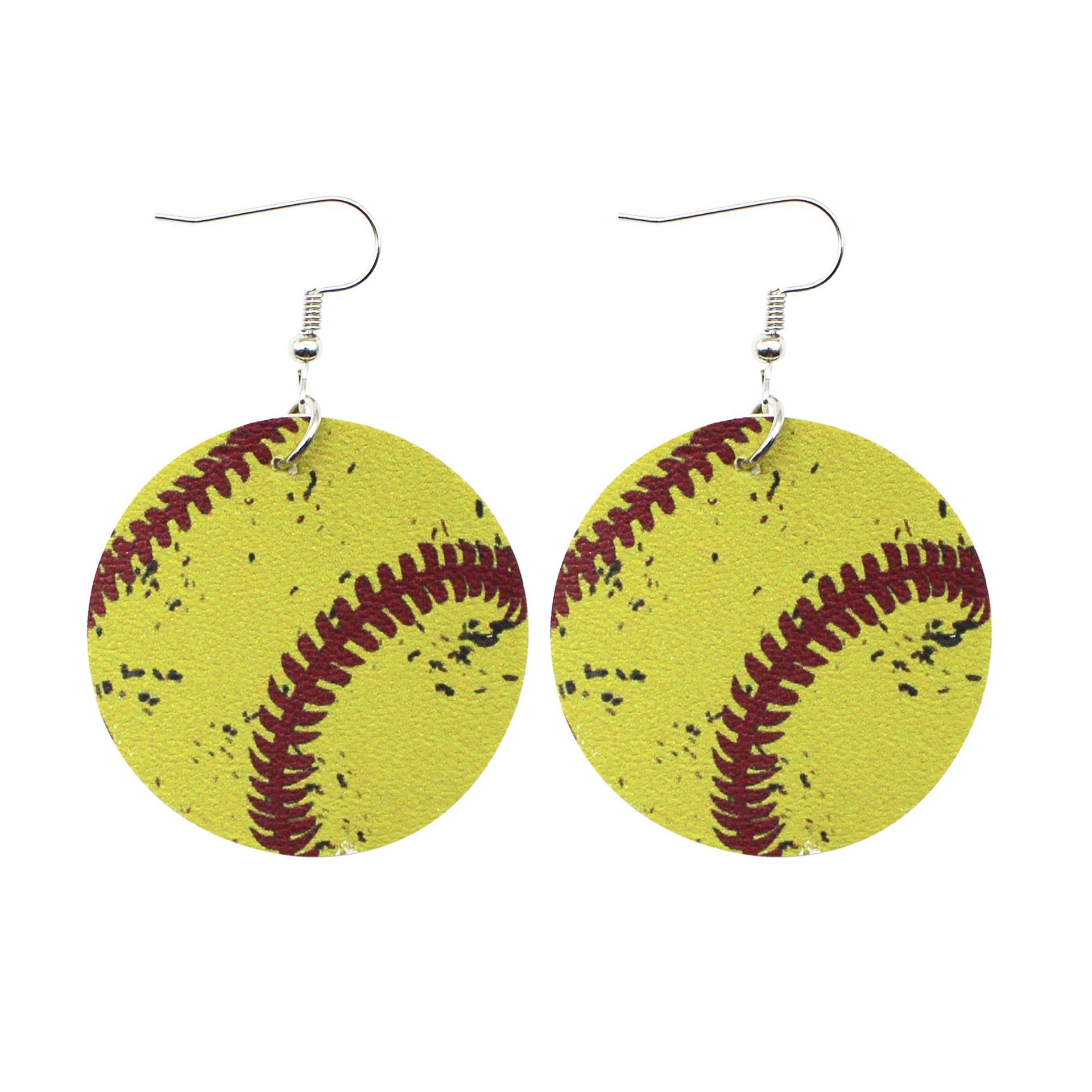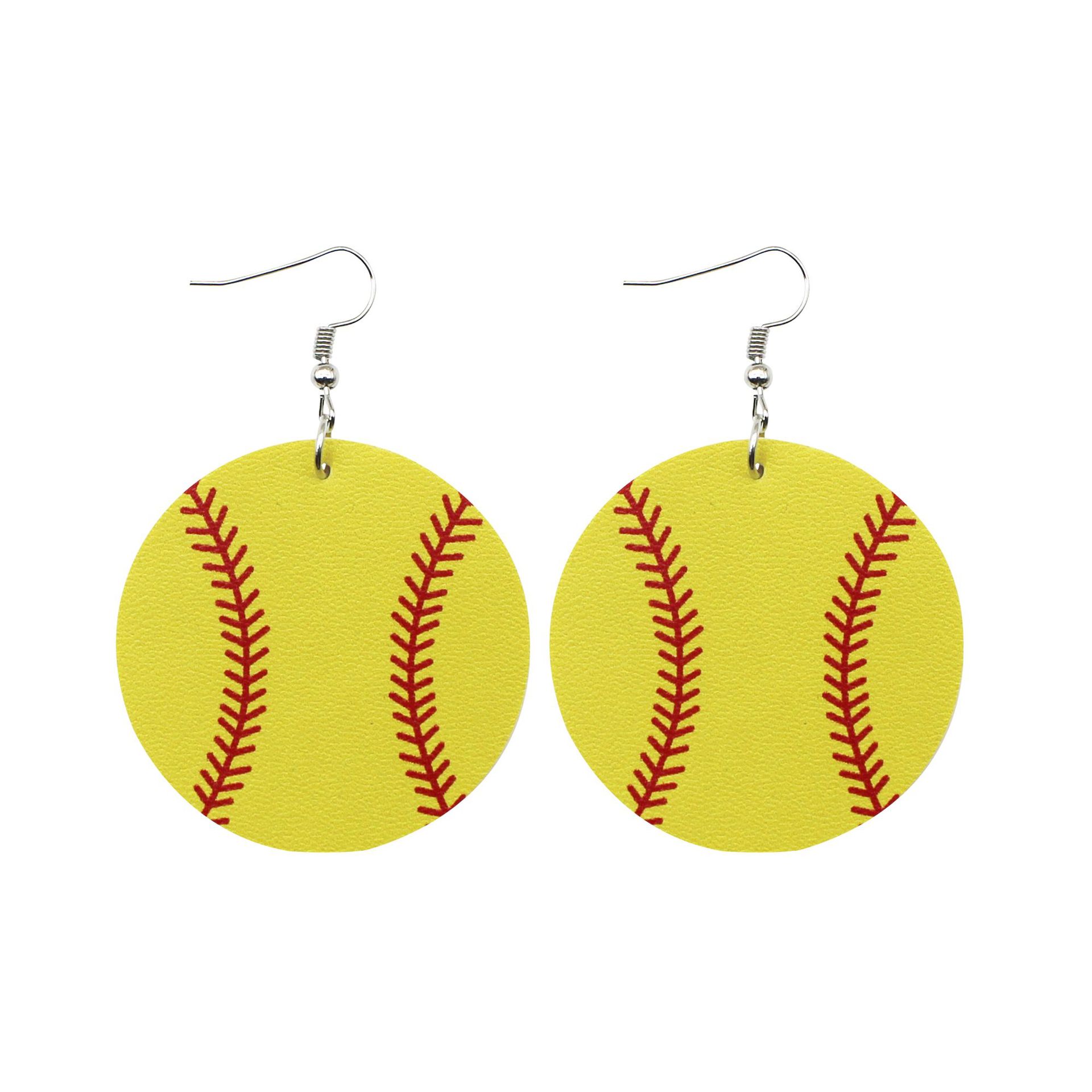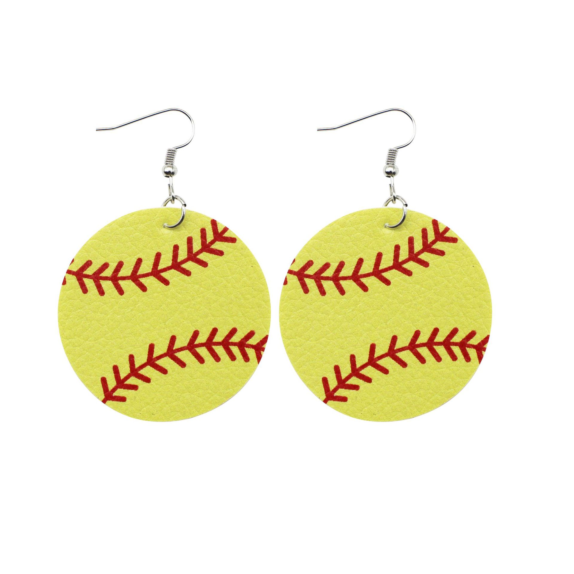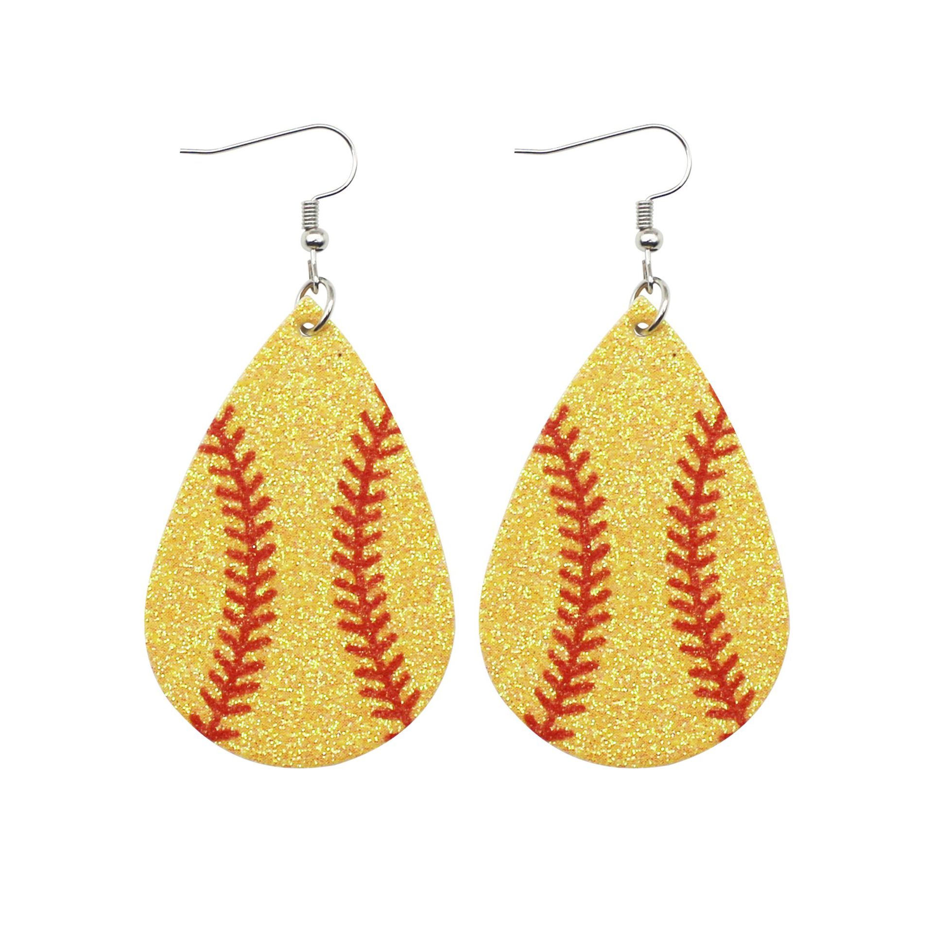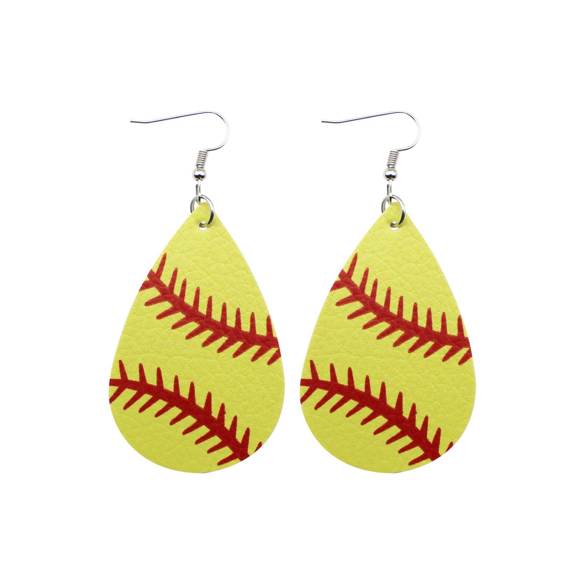 跨境棒球耳环三层水滴皮革耳环爱心球形棒球PU耳环亚马逊速卖通