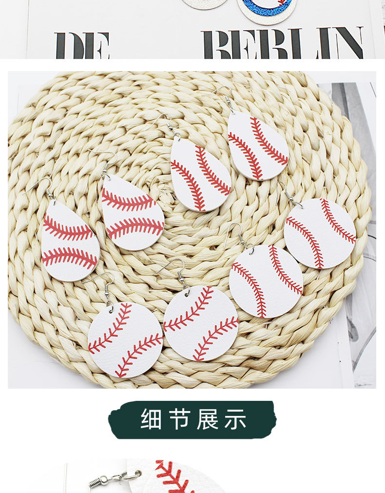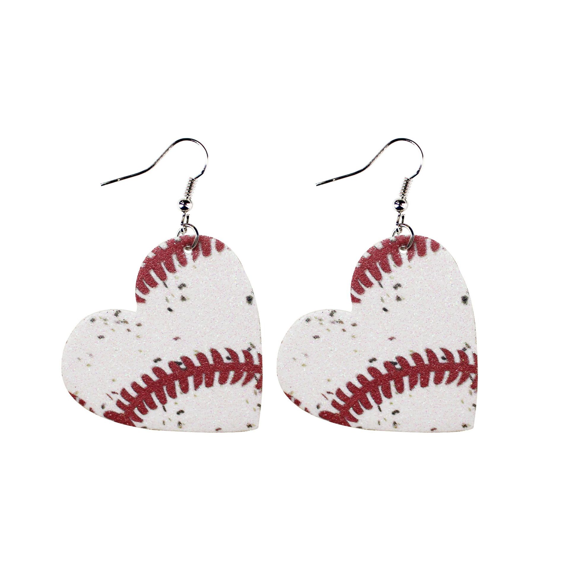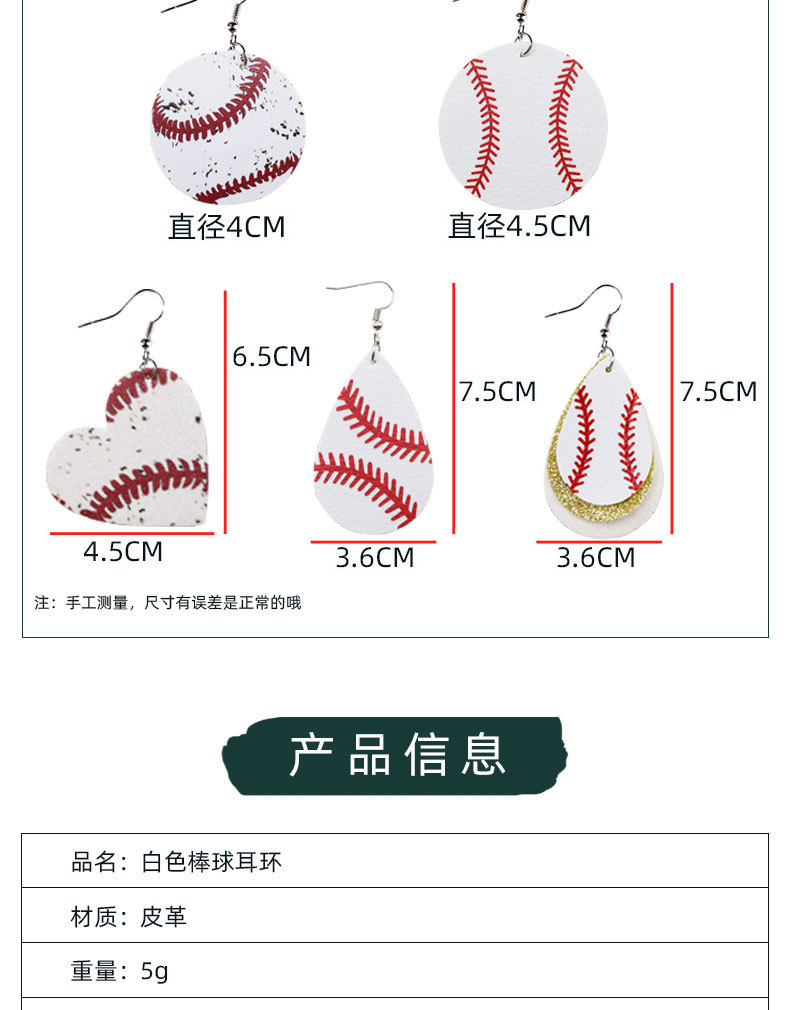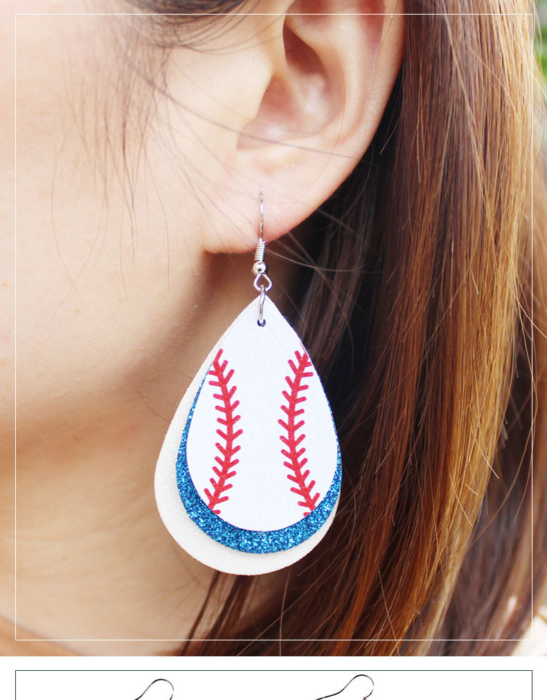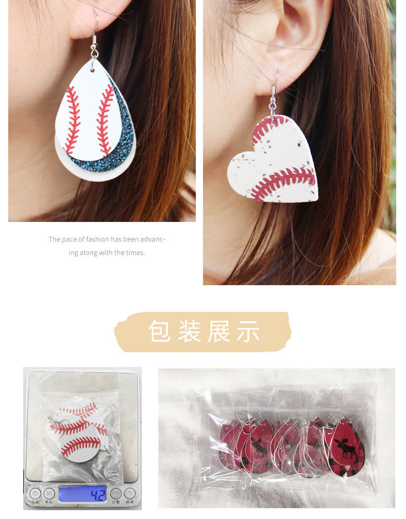 跨境白色皮革棒球主题耳环闪粉PU圆形爱心水滴三层亚马逊速卖通
