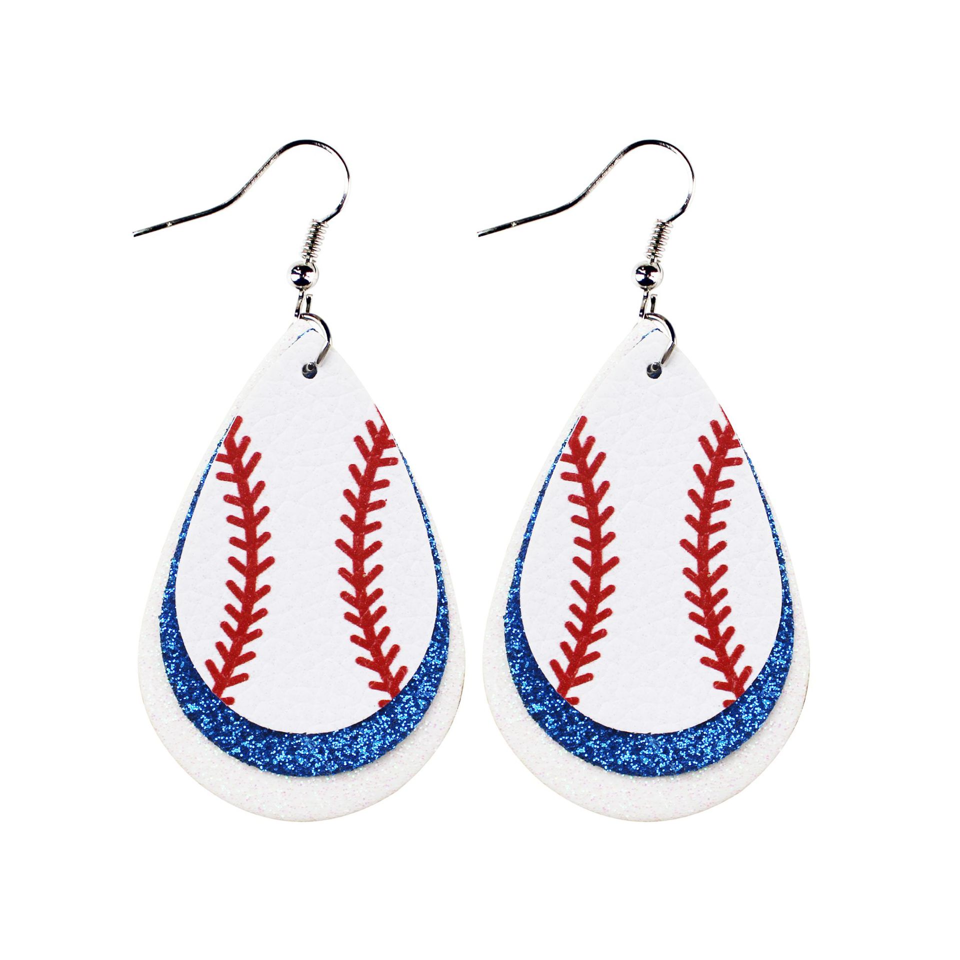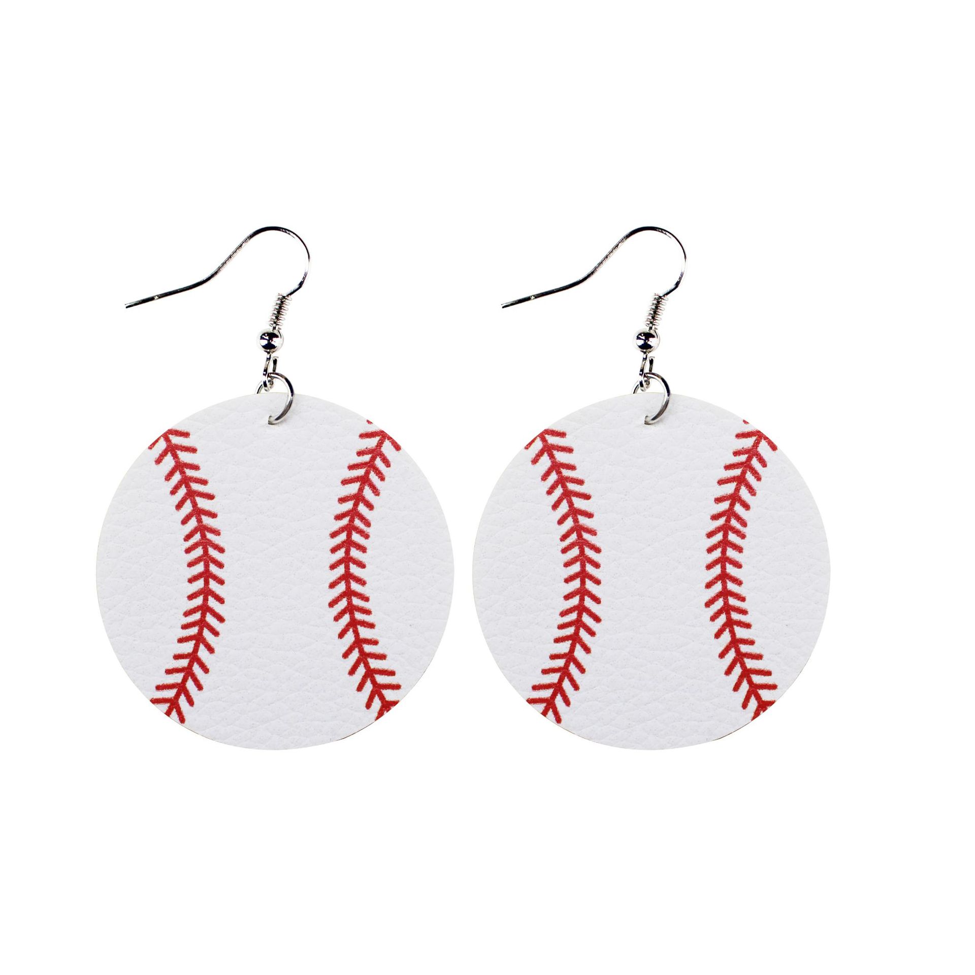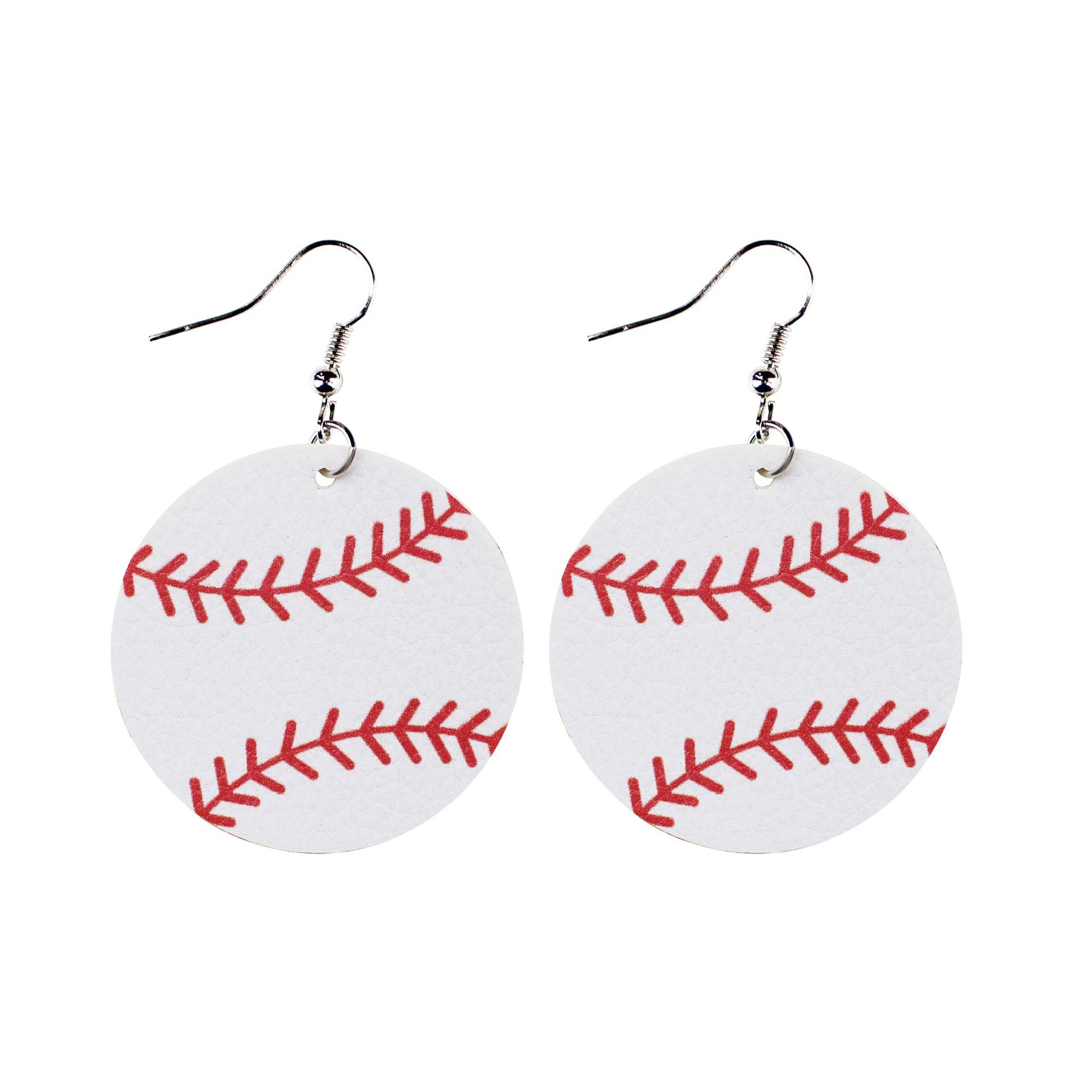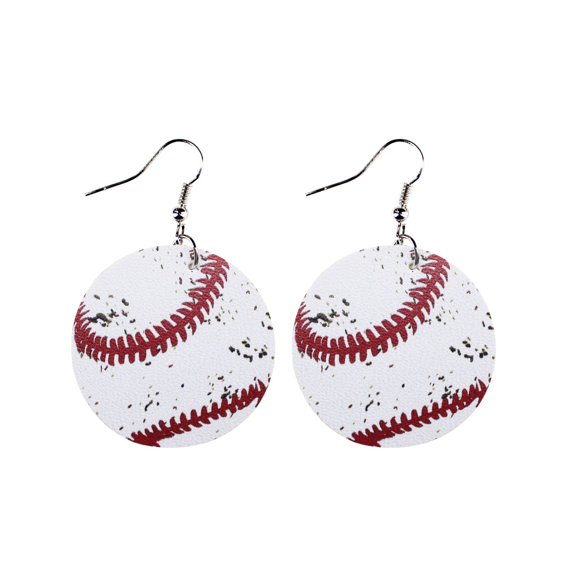 跨境白色皮革棒球主题耳环闪粉PU圆形爱心水滴三层亚马逊速卖通