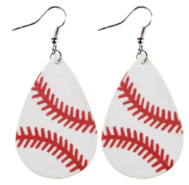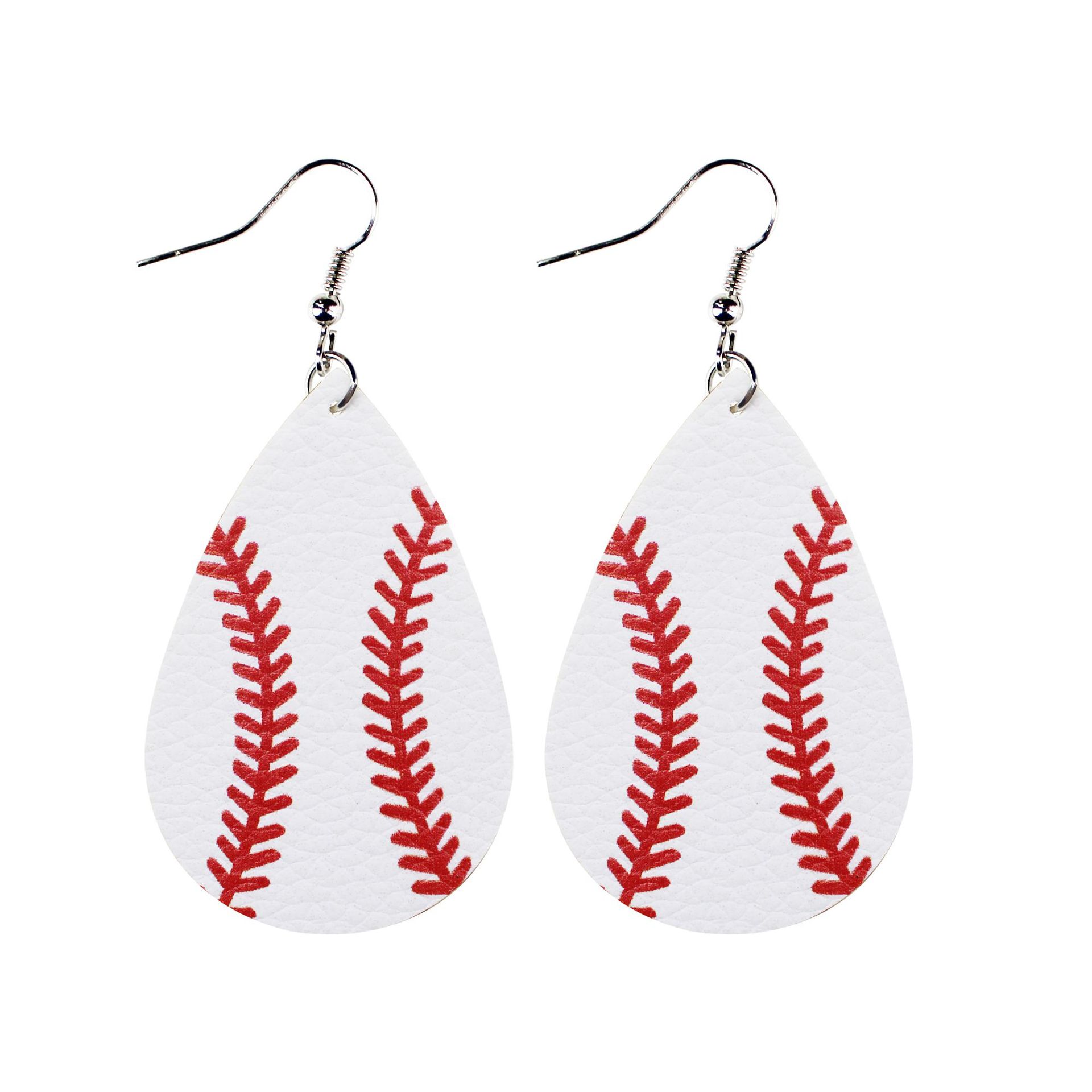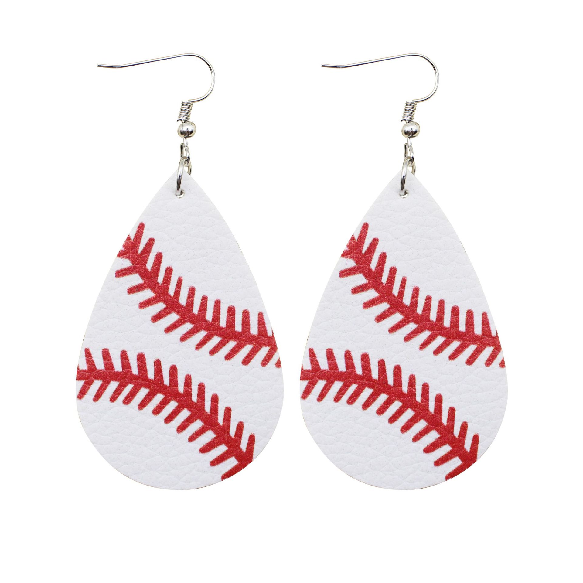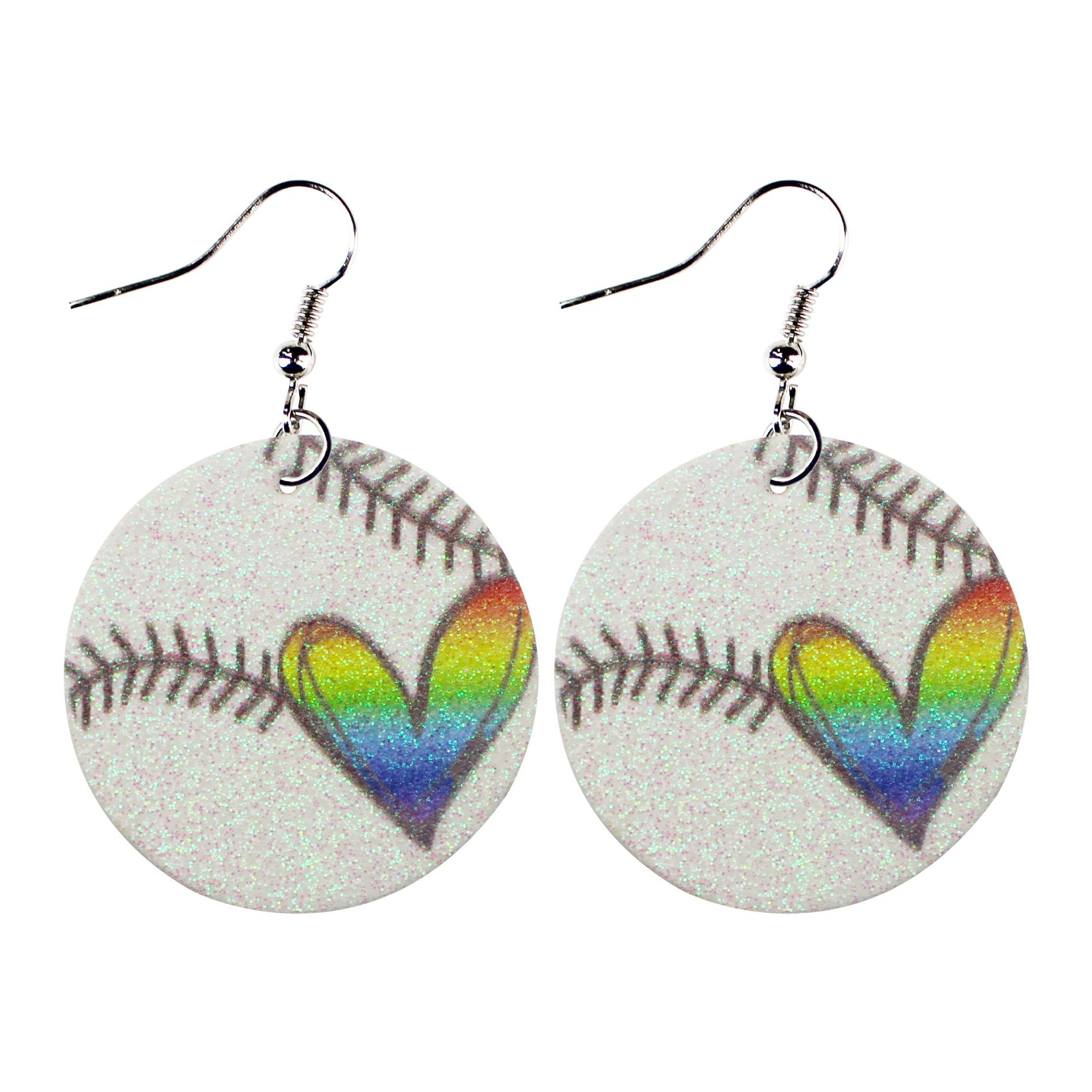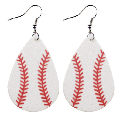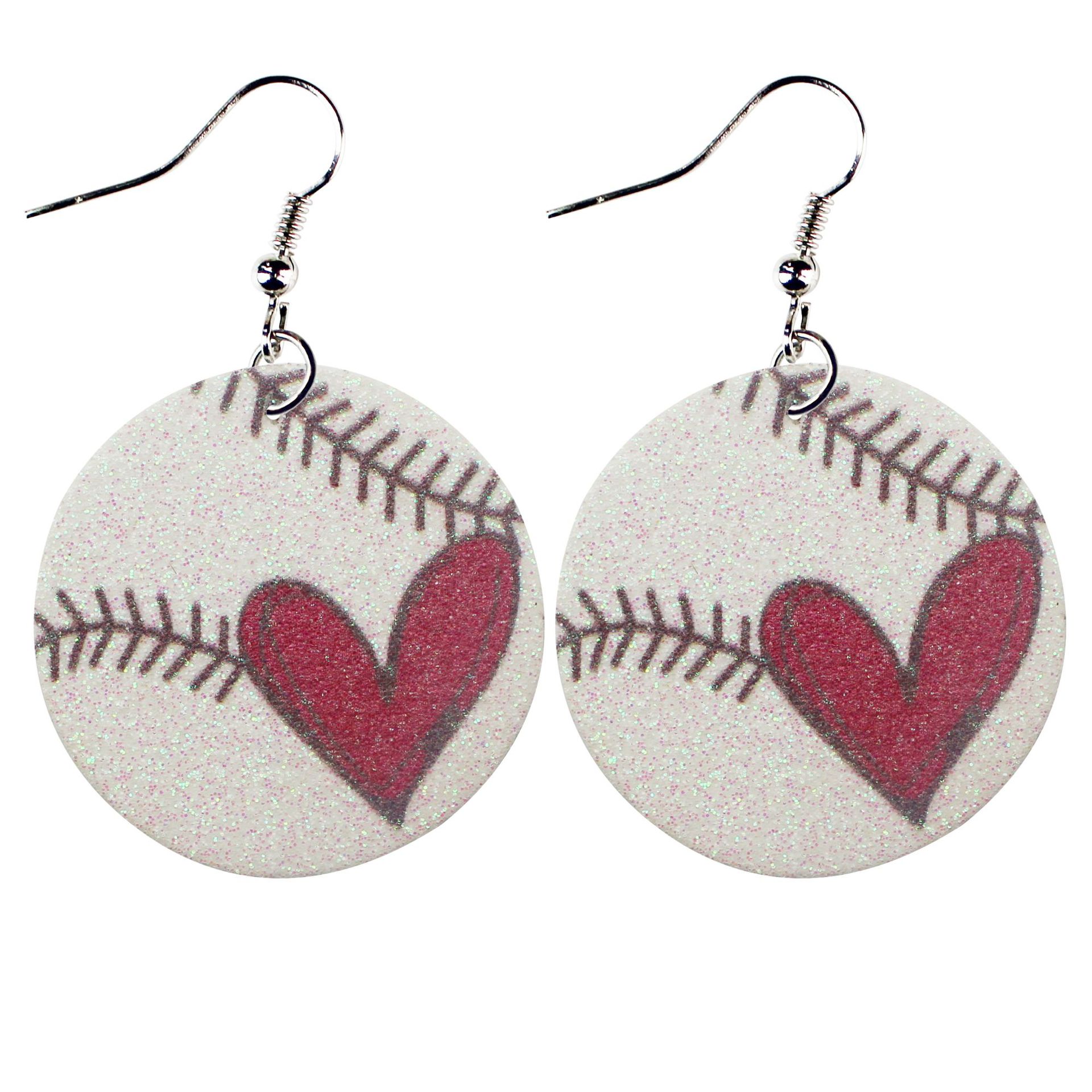 跨境白色皮革棒球主题耳环闪粉PU圆形爱心水滴三层亚马逊速卖通