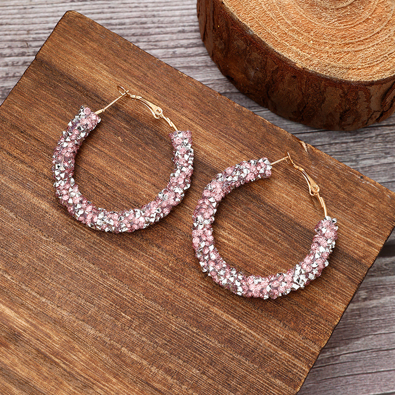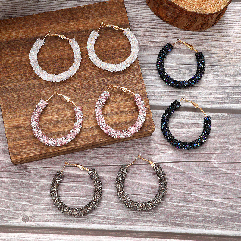 跨境新款闪亮排钻圈圈耳环满钻圆圈耳钉韩版耳饰耳环亚马逊速卖通