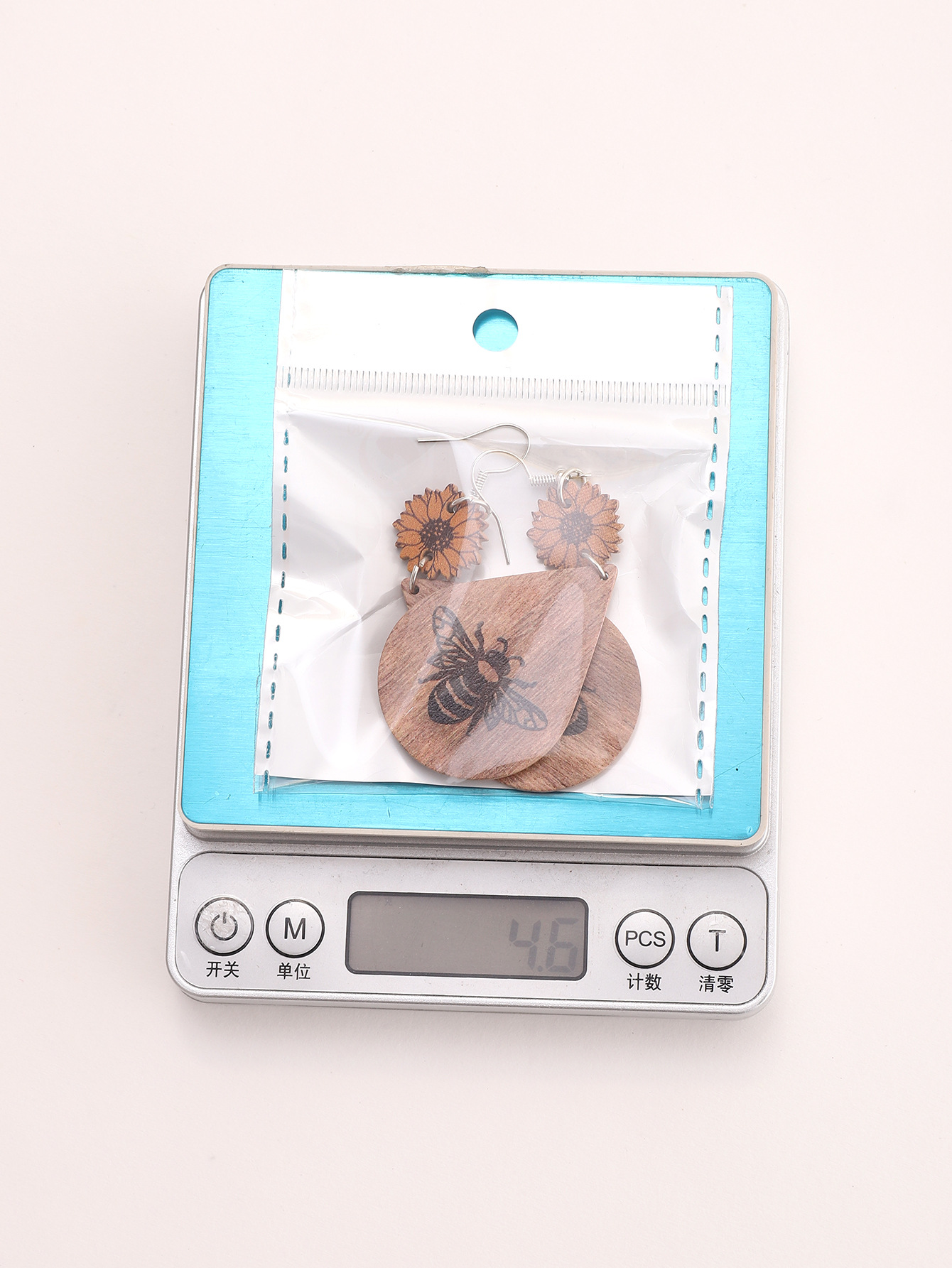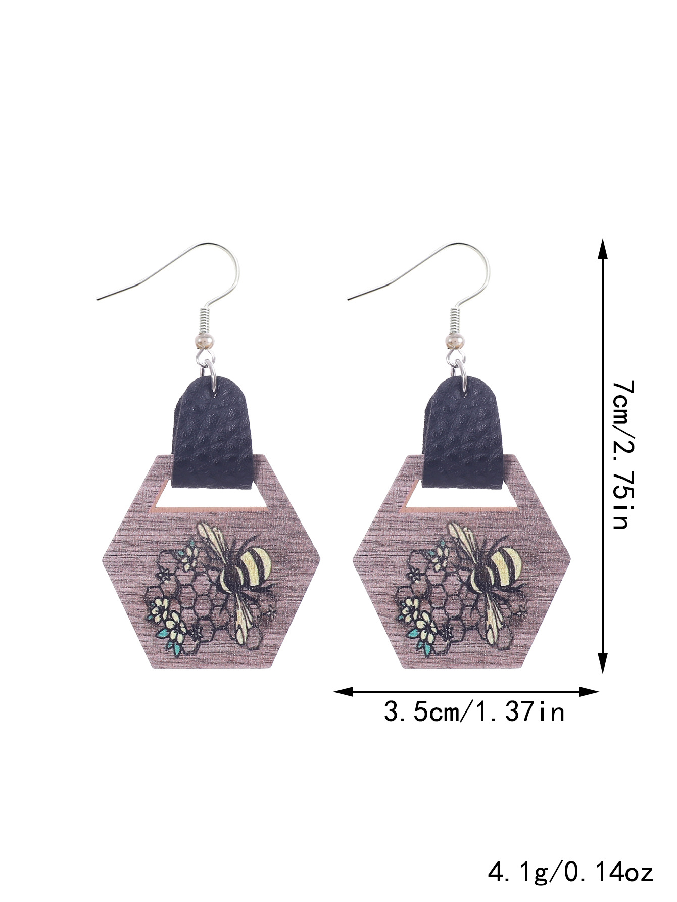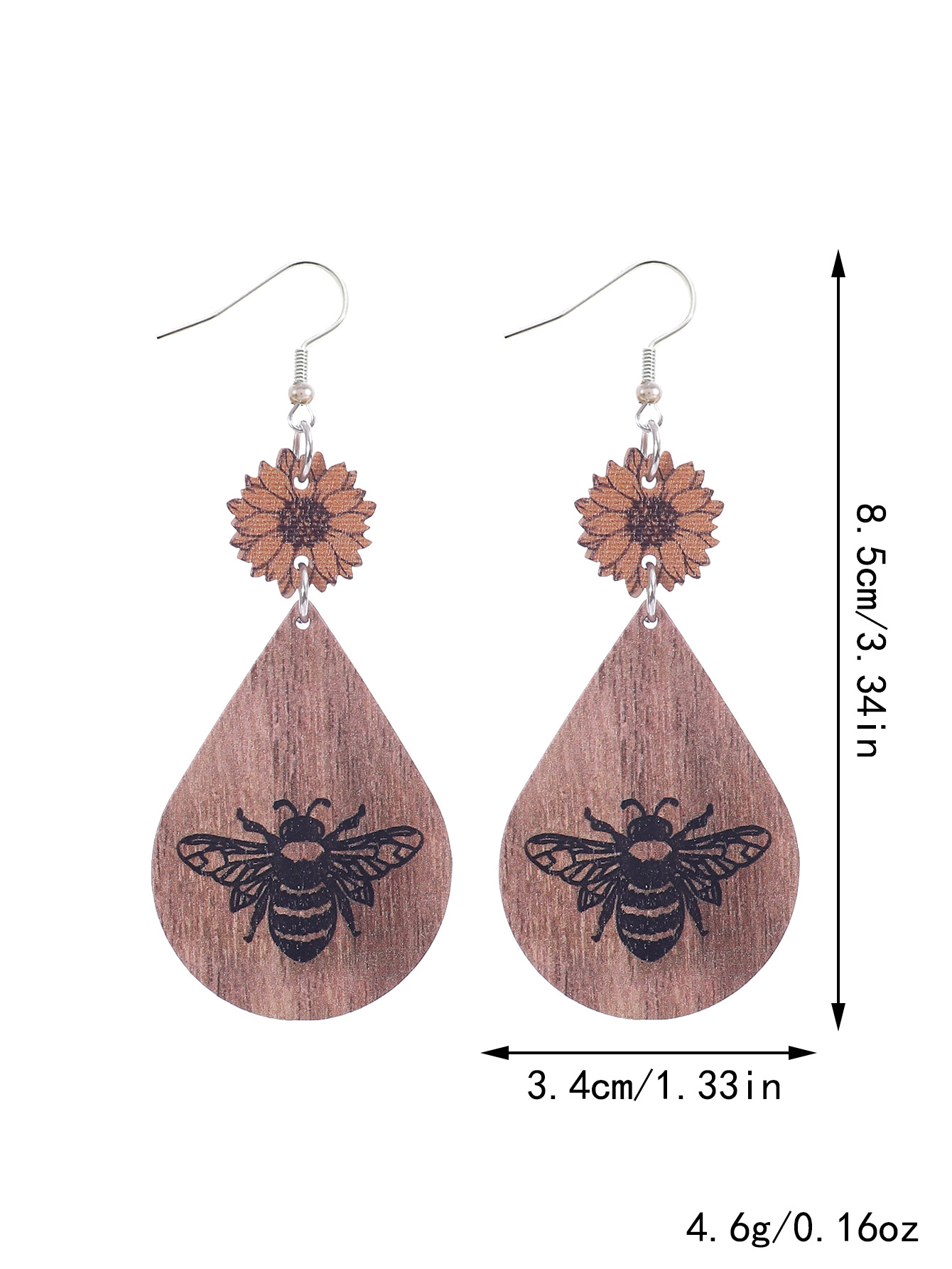 跨境欧美新款农场系列耳饰向日葵蜜蜂图案皮革水滴型耳环亚马逊速