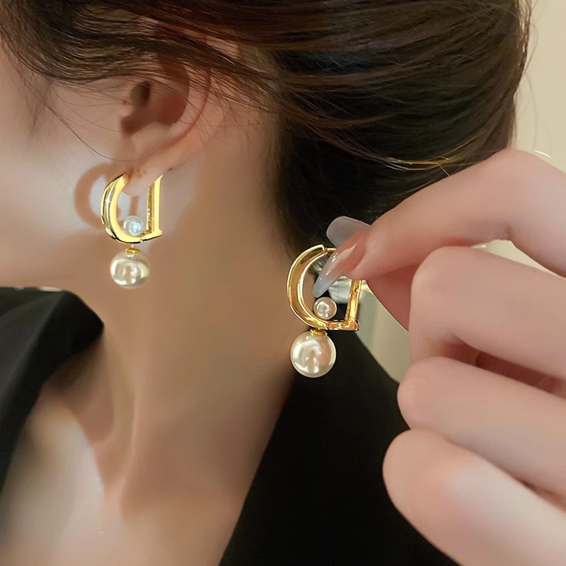 S925银针气质耳钉女小众设计感高级耳环爆款耳坠珍珠独特耳饰批发