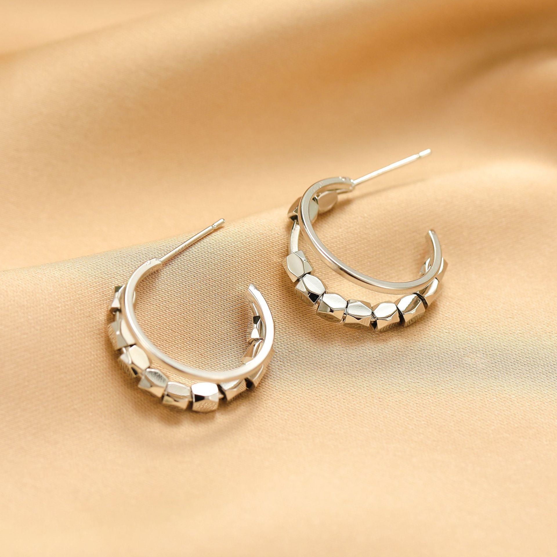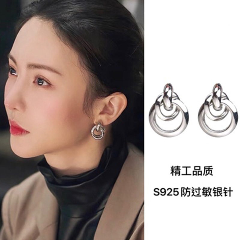 S925银针欧美风时尚耳环简约气质小众个性高级感耳钉女耳饰品批发