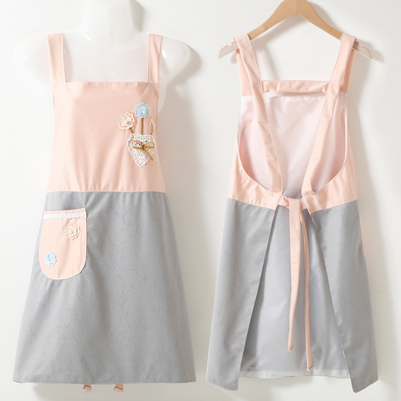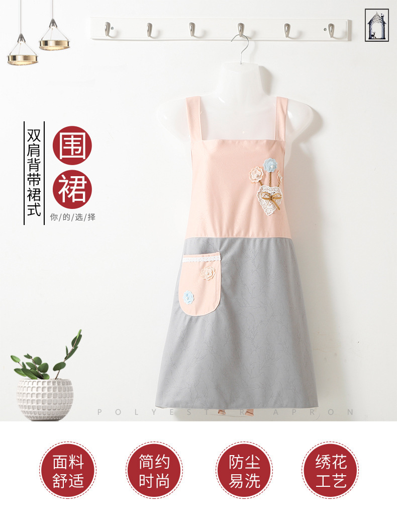 围裙家用厨房专用做饭防油污渍透气夏背带时尚无袖围腰工作服新款