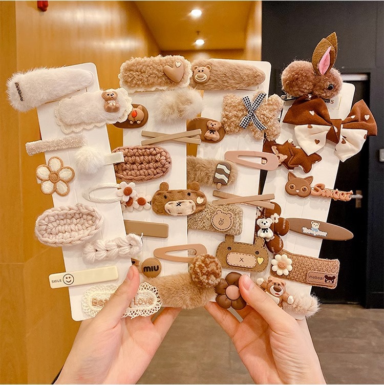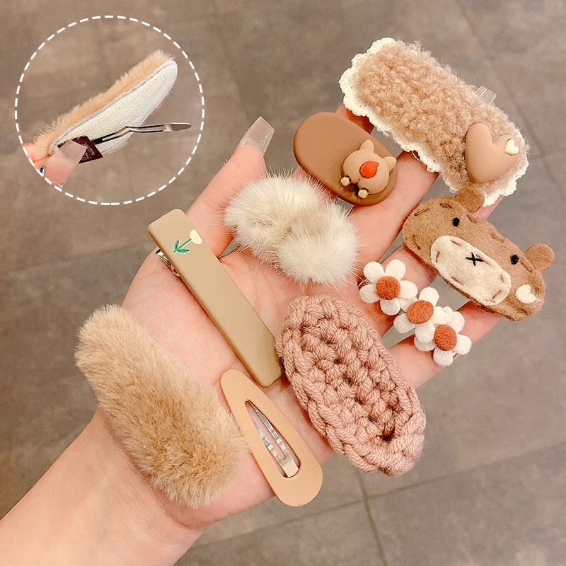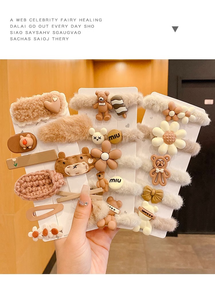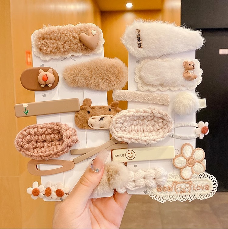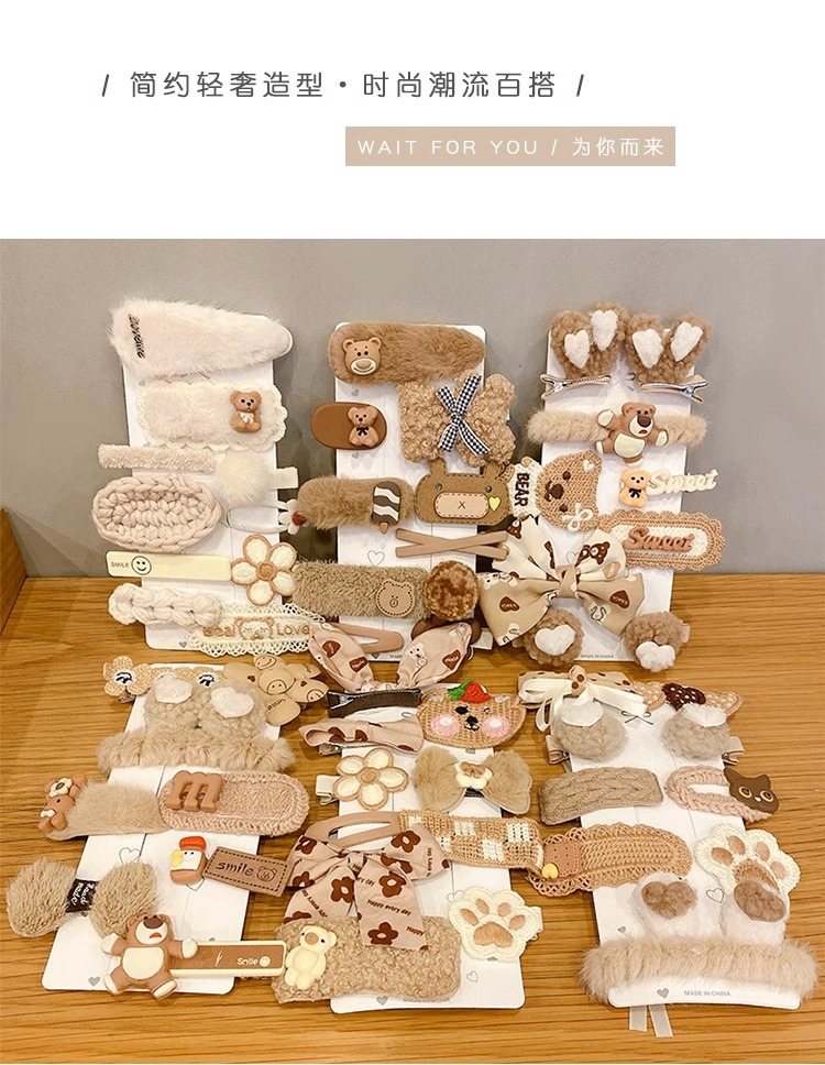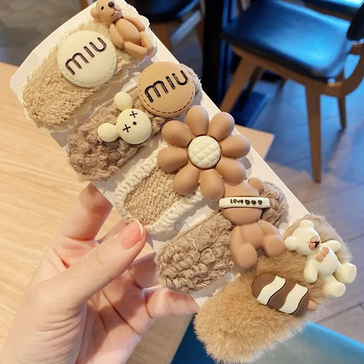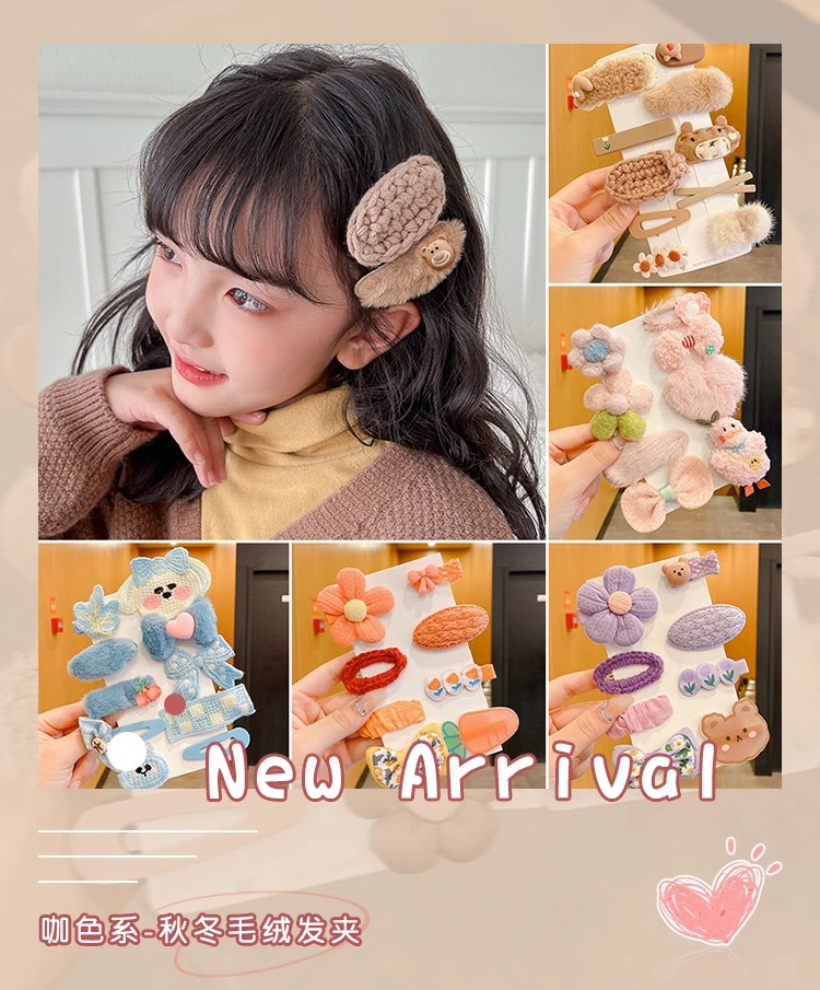 新款女童发夹头饰秋冬简约边夹女可爱毛绒侧边刘海夹子碎发卡批发