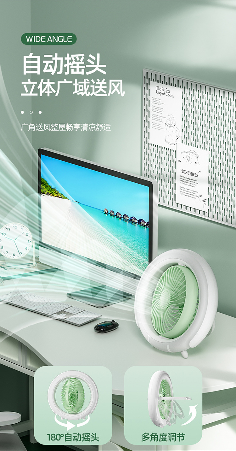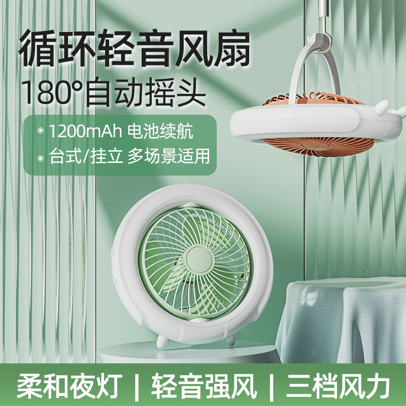 新款桌面台灯摇头风扇吊扇大风力充电款长续航创意学生宿舍电风扇