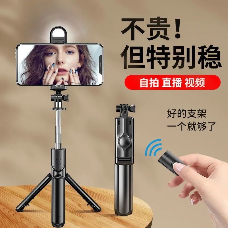 多功能直播蓝牙自拍杆三角支架补光灯手机支架拍视频旅游拍照通用