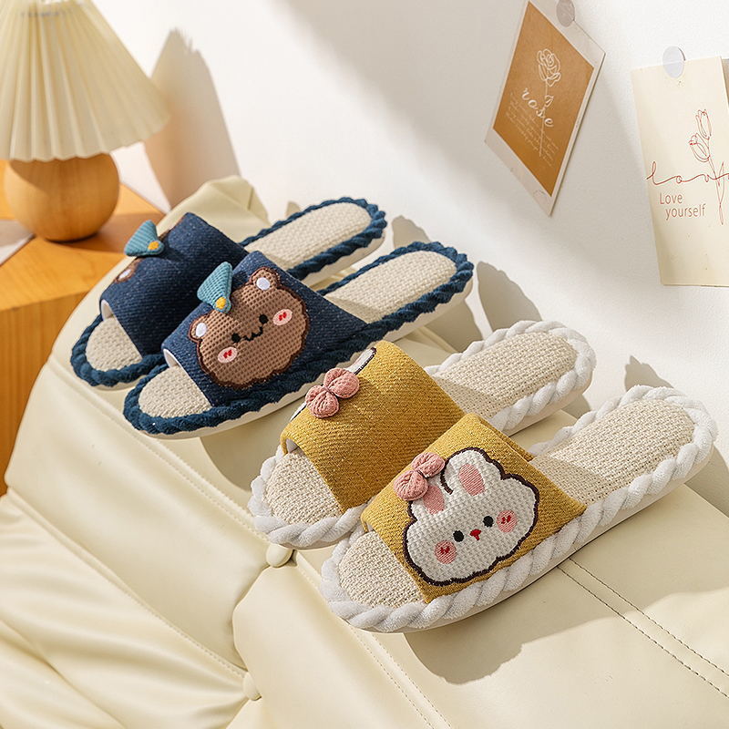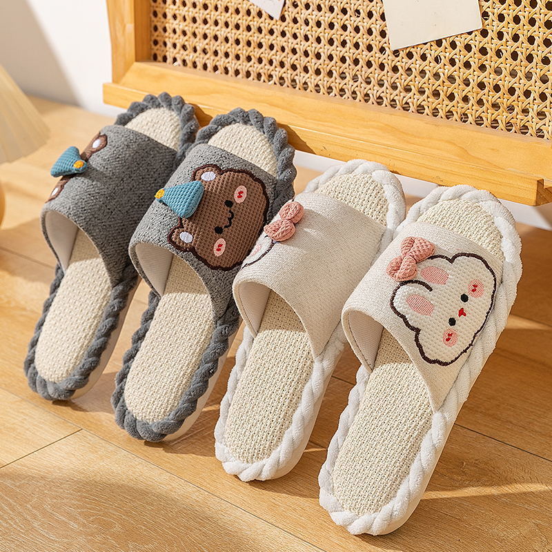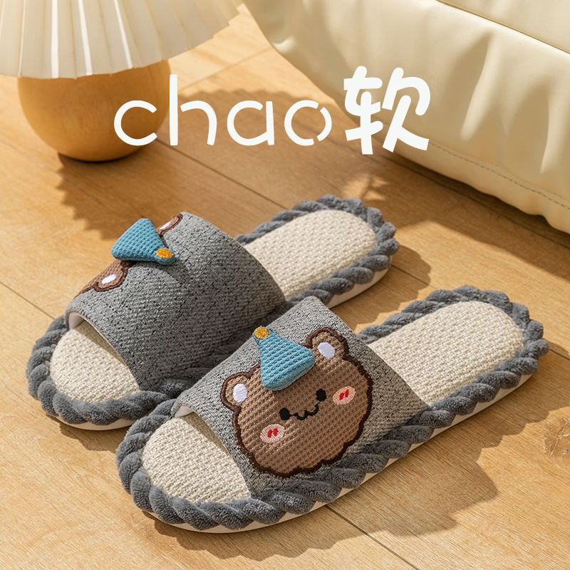 亚麻拖鞋女家居男款四季家用情侣室内防滑静音棉麻布地板居家拖鞋
