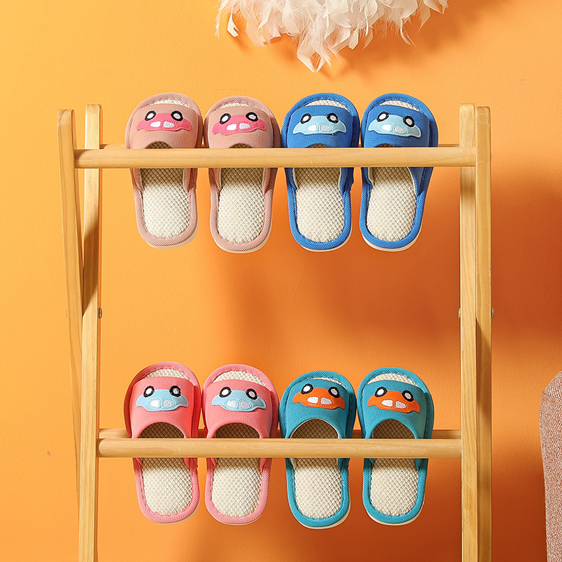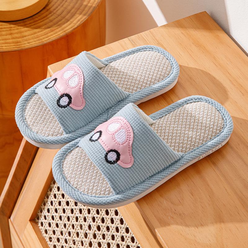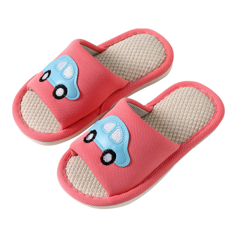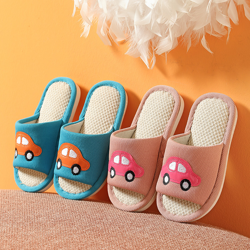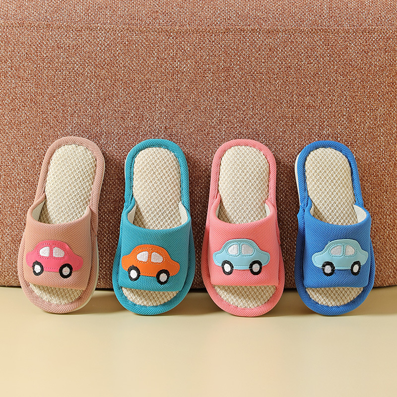 儿童卡通汽车男女宝宝夏季亚麻室内外居家实心PVC阻滑鞋底凉拖鞋