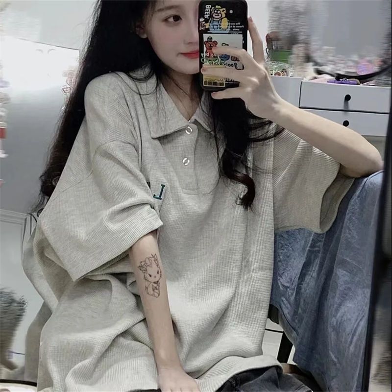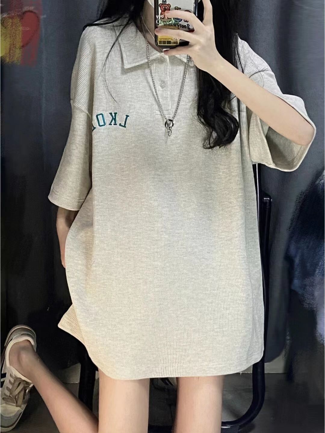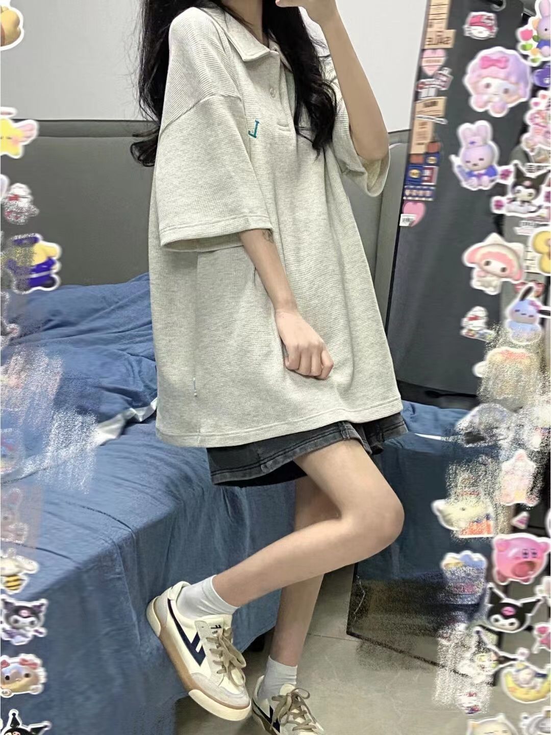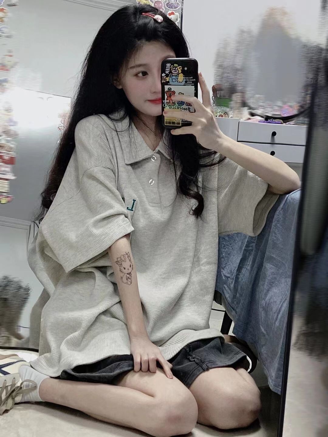 很奈斯【韩国polo衫】原宿BF风港味翻领短袖ins学生百搭宽松T恤潮