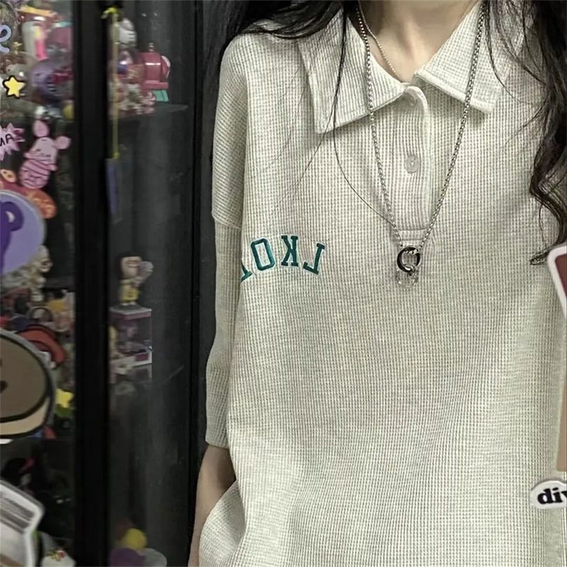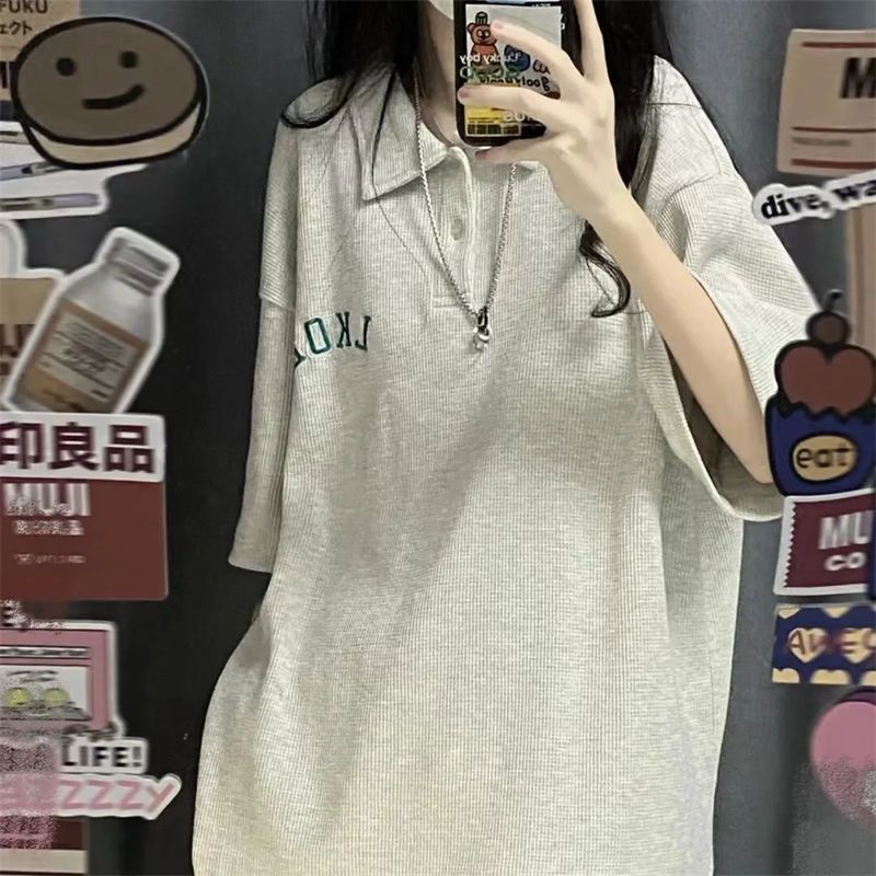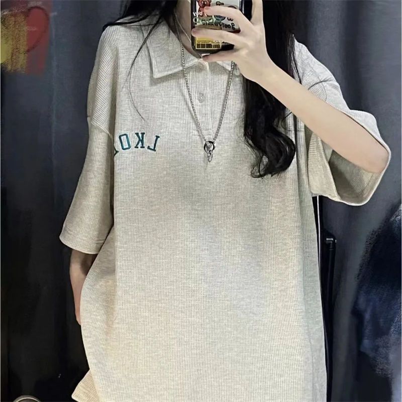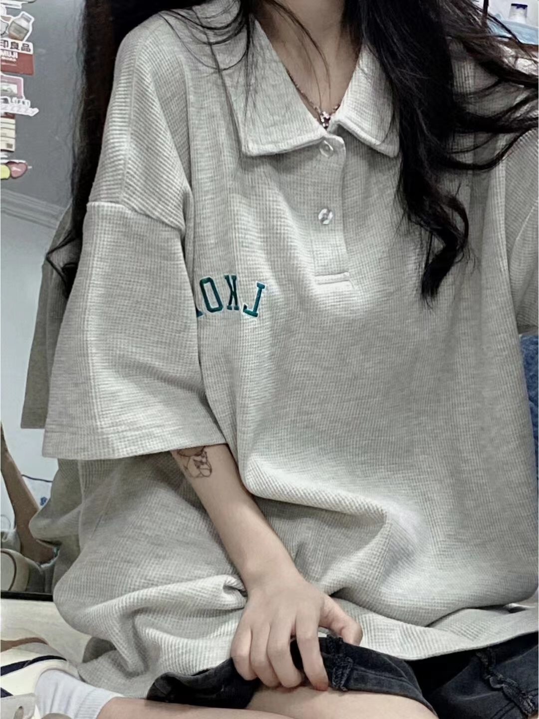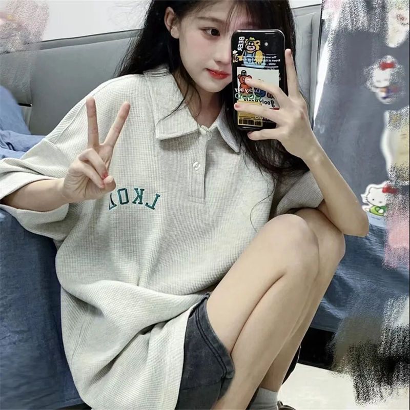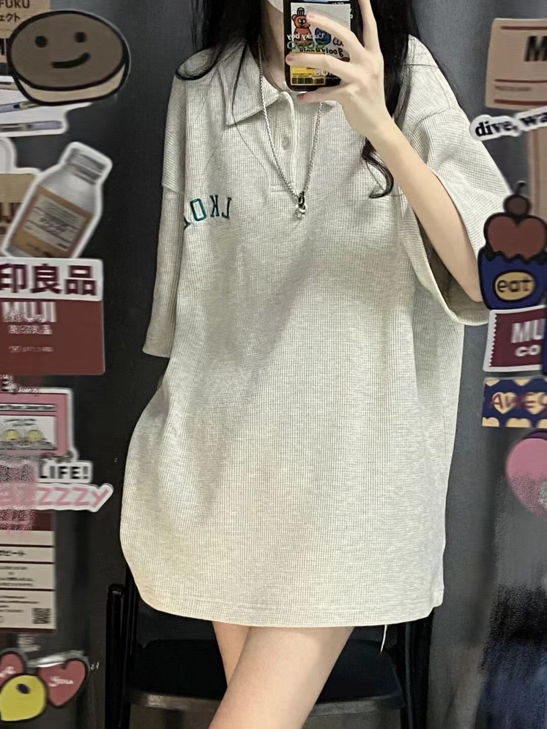 很奈斯【韩国polo衫】原宿BF风港味翻领短袖ins学生百搭宽松T恤潮