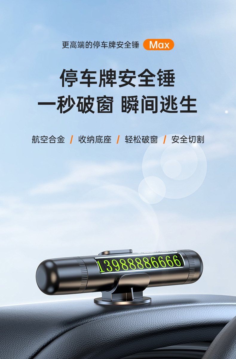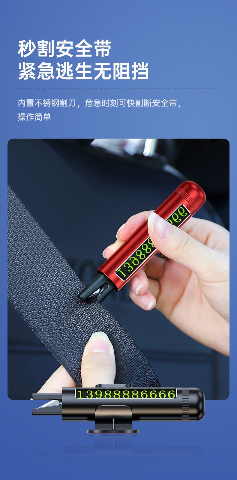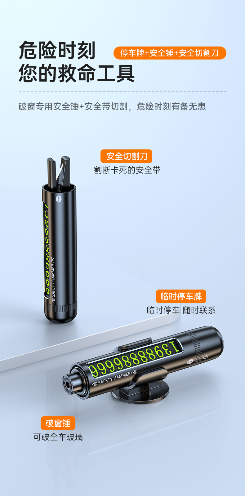 新品三合一汽车安全锤迷你便携车用破窗器多功能停车牌停车号码牌