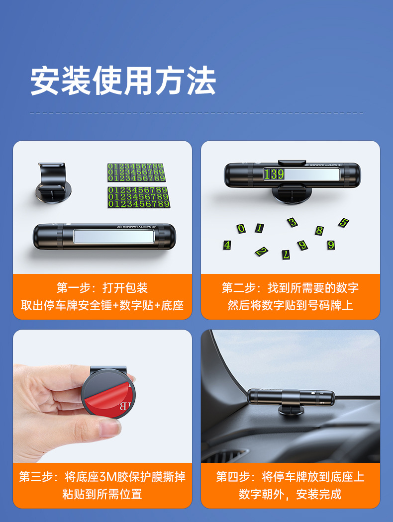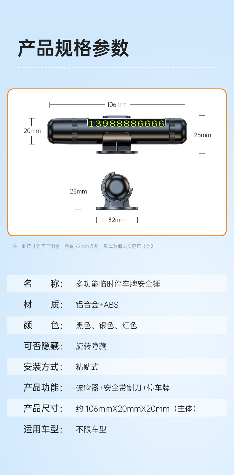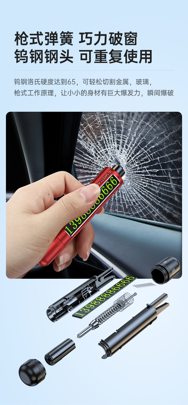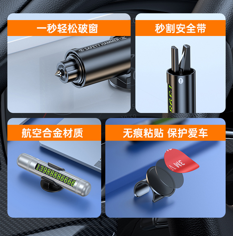 新品三合一汽车安全锤迷你便携车用破窗器多功能停车牌停车号码牌