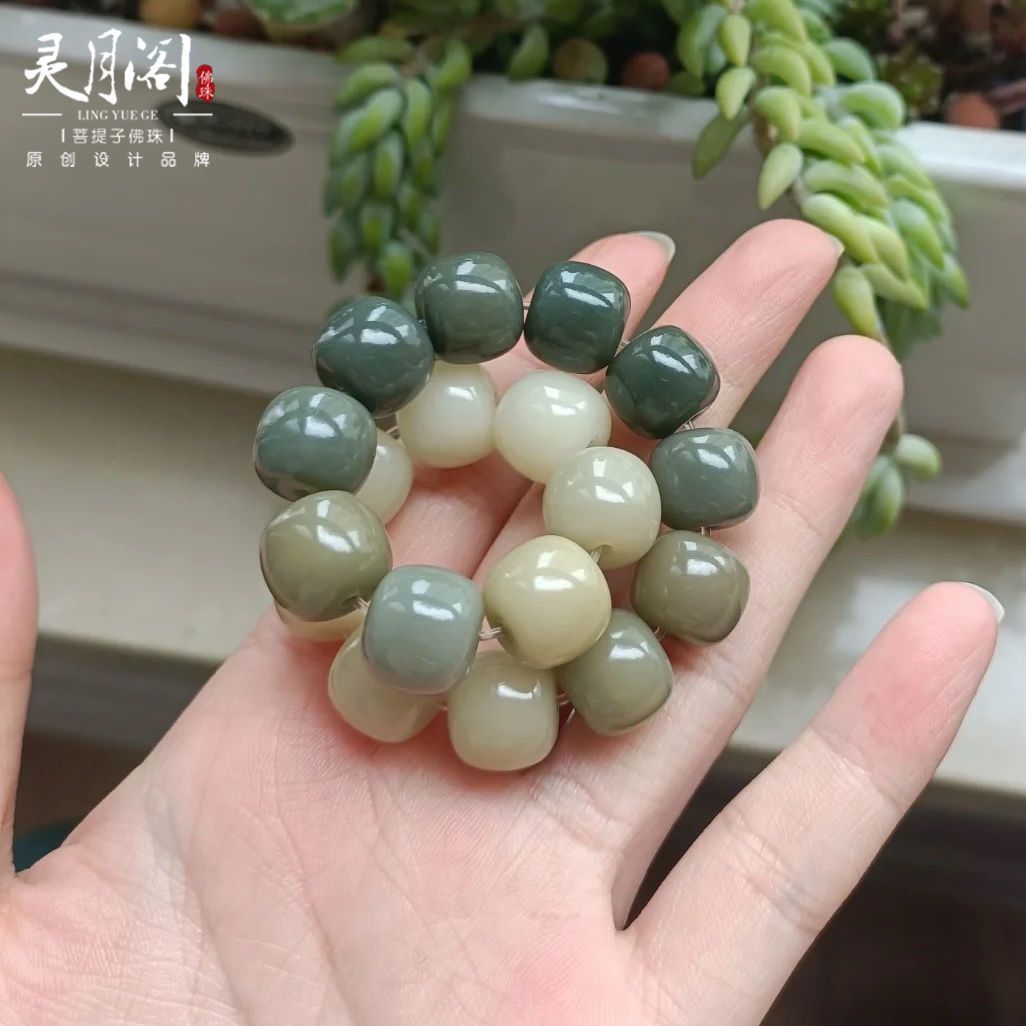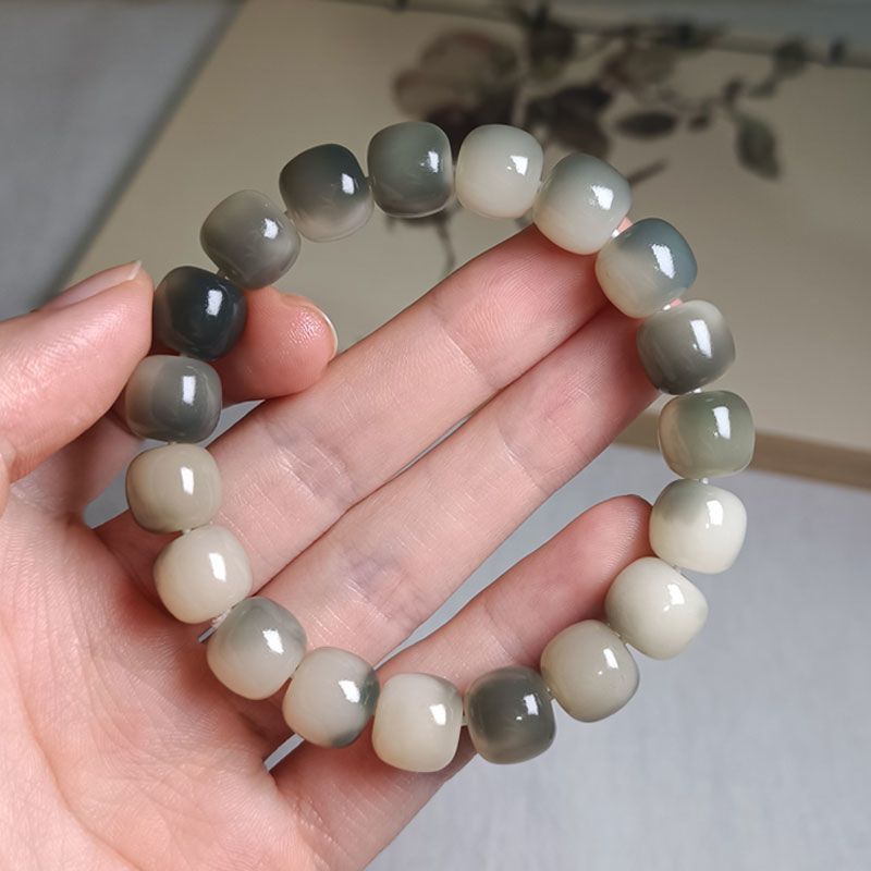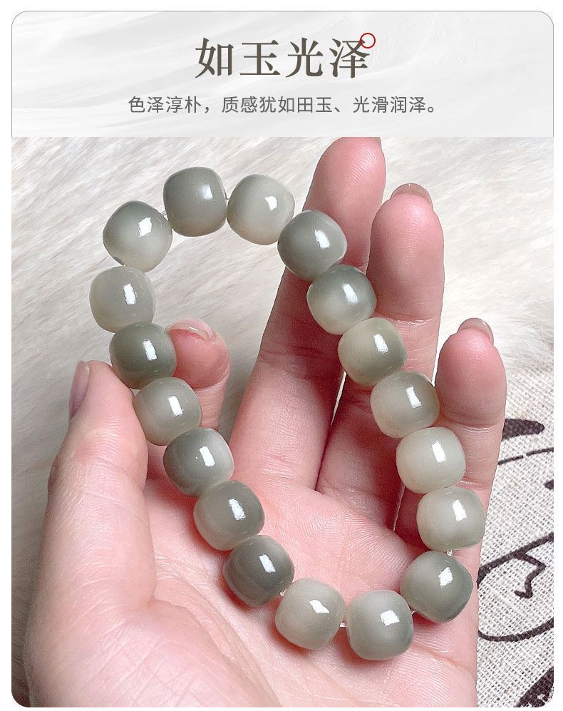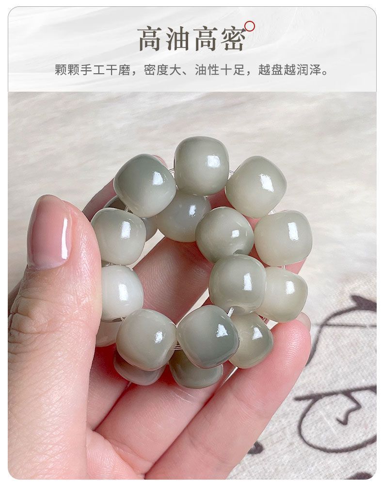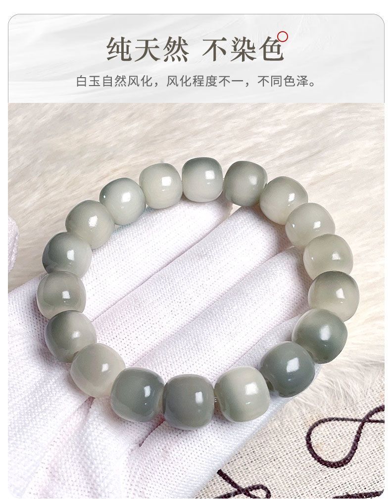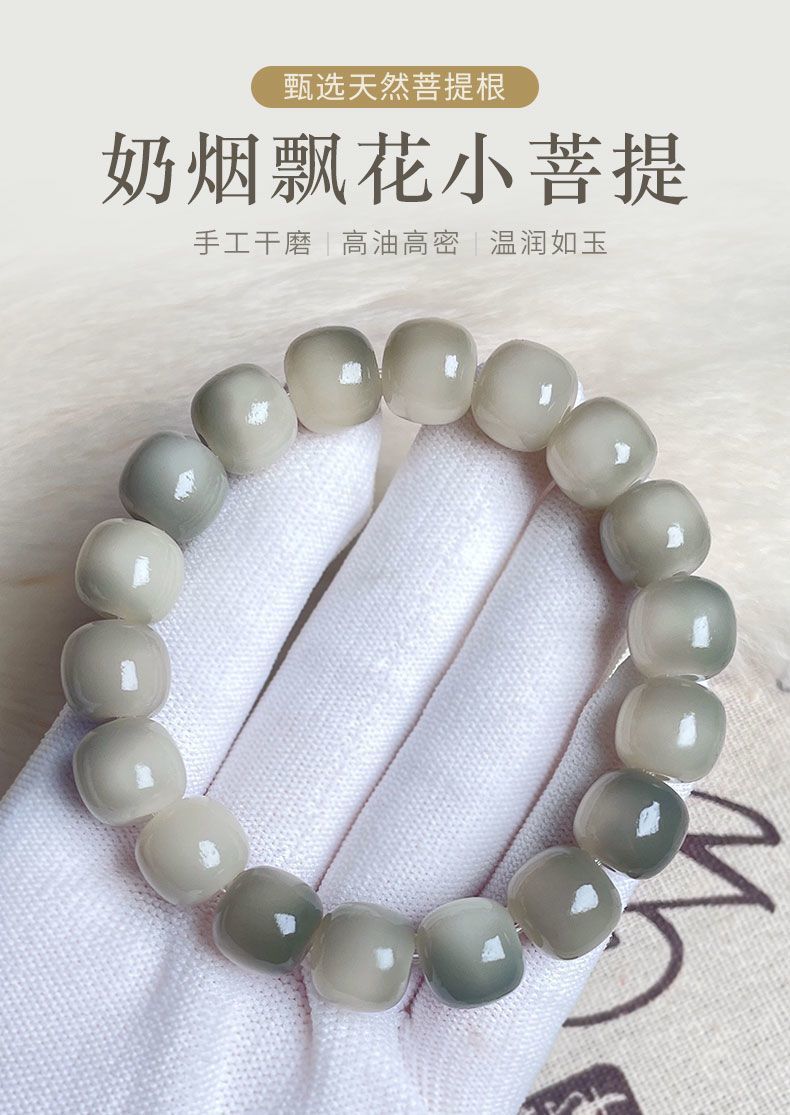 灵月阁烟灰色飘花菩提根手串绕指柔渐变白玉菩提子佛珠文玩手链女