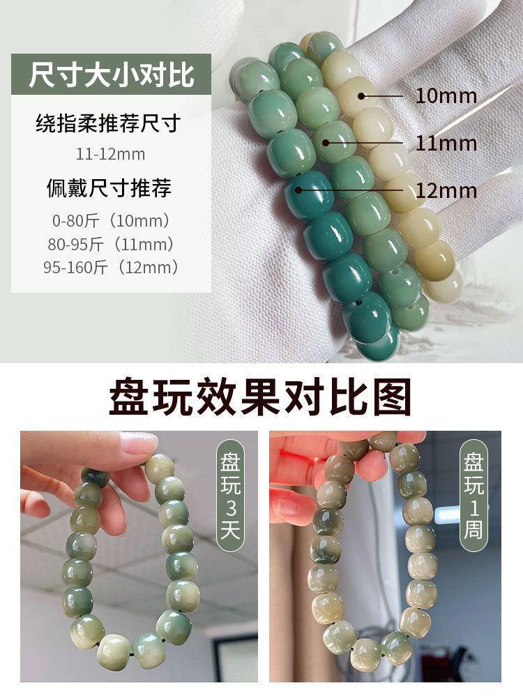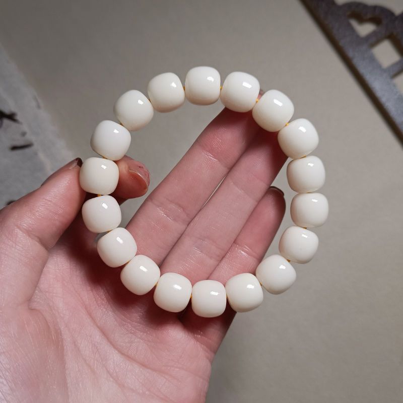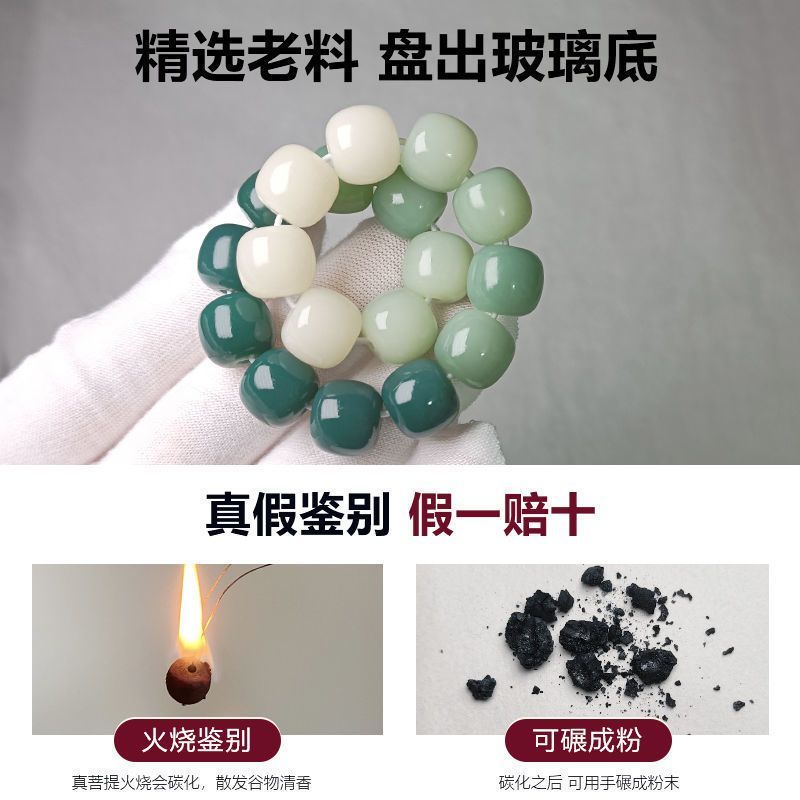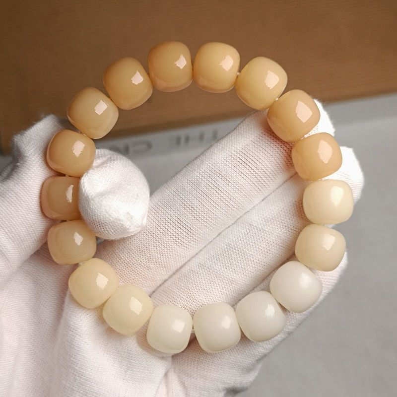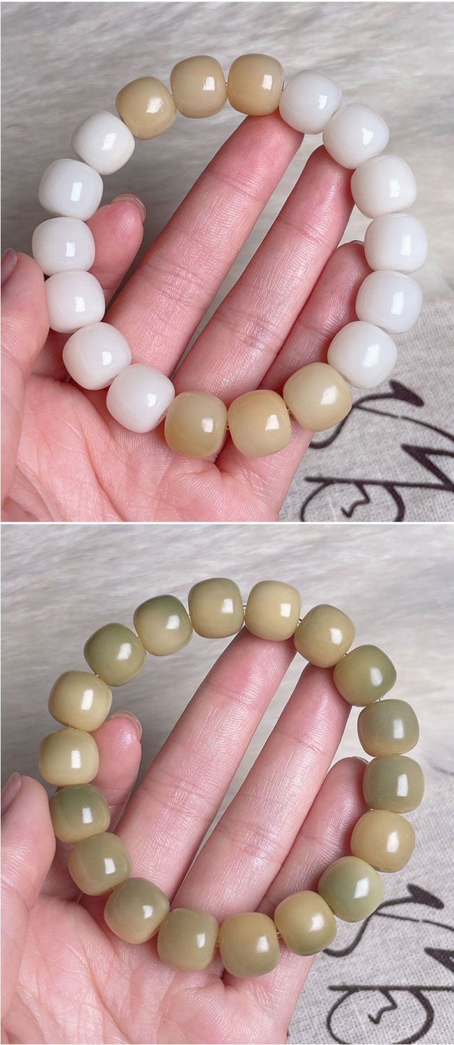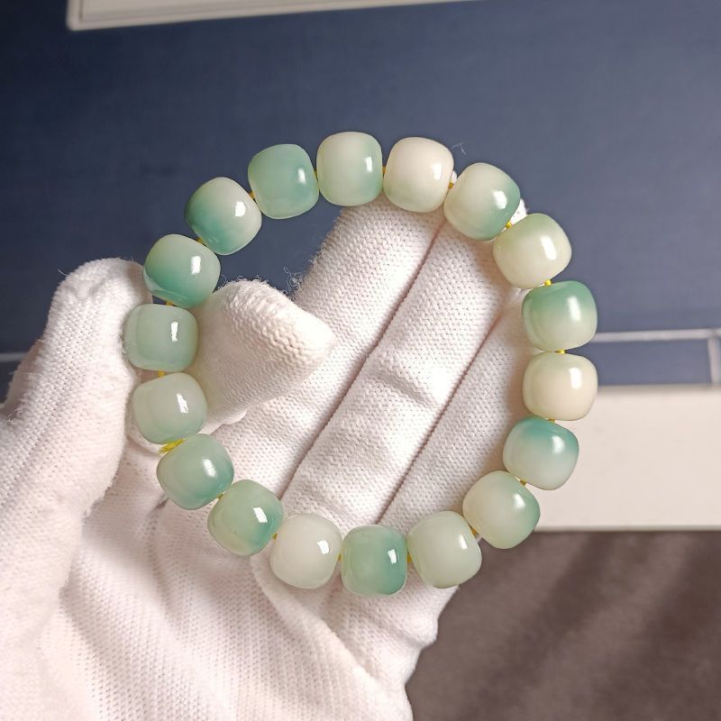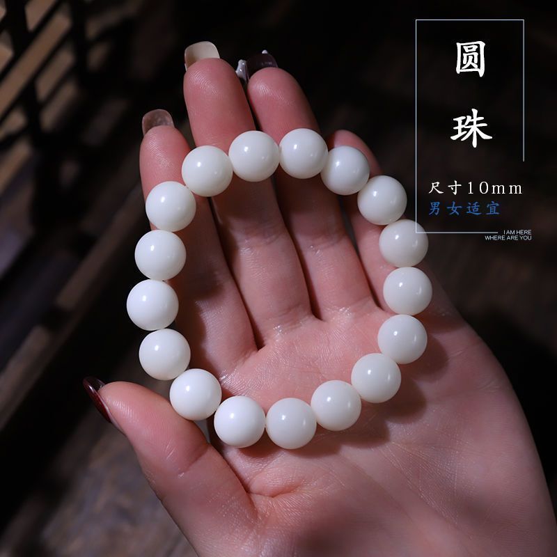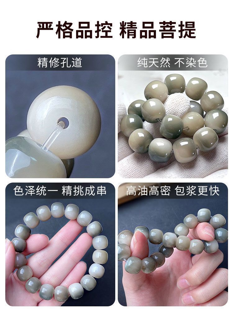 灵月阁烟灰色飘花菩提根手串绕指柔渐变白玉菩提子佛珠文玩手链女