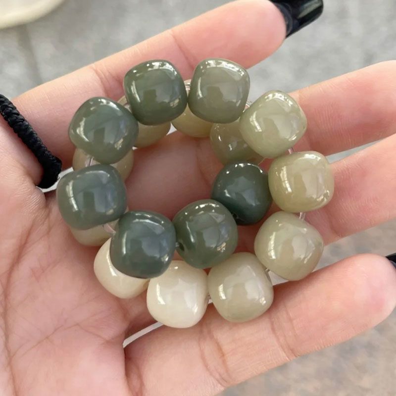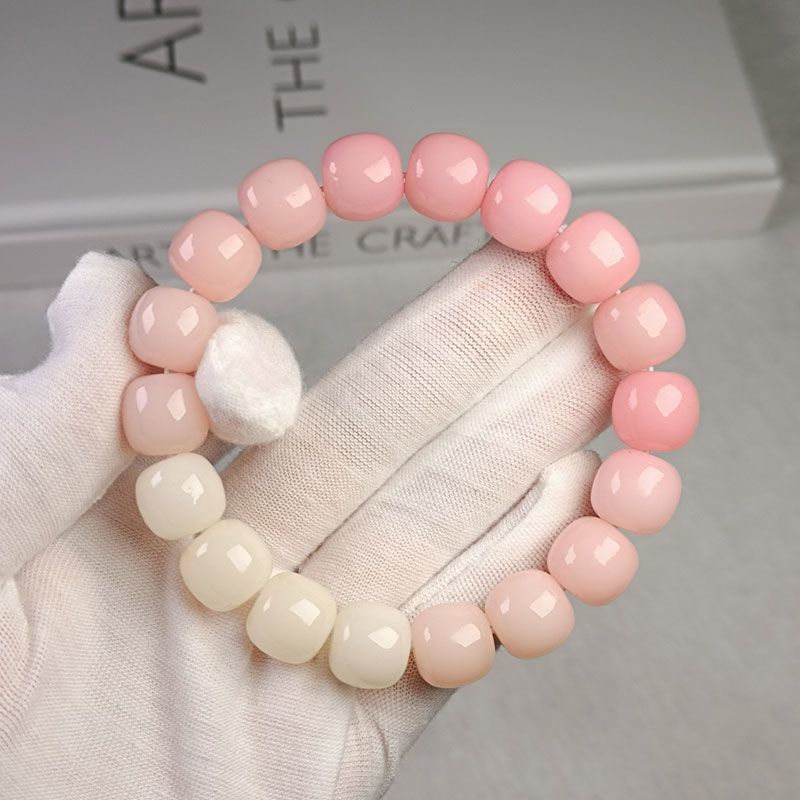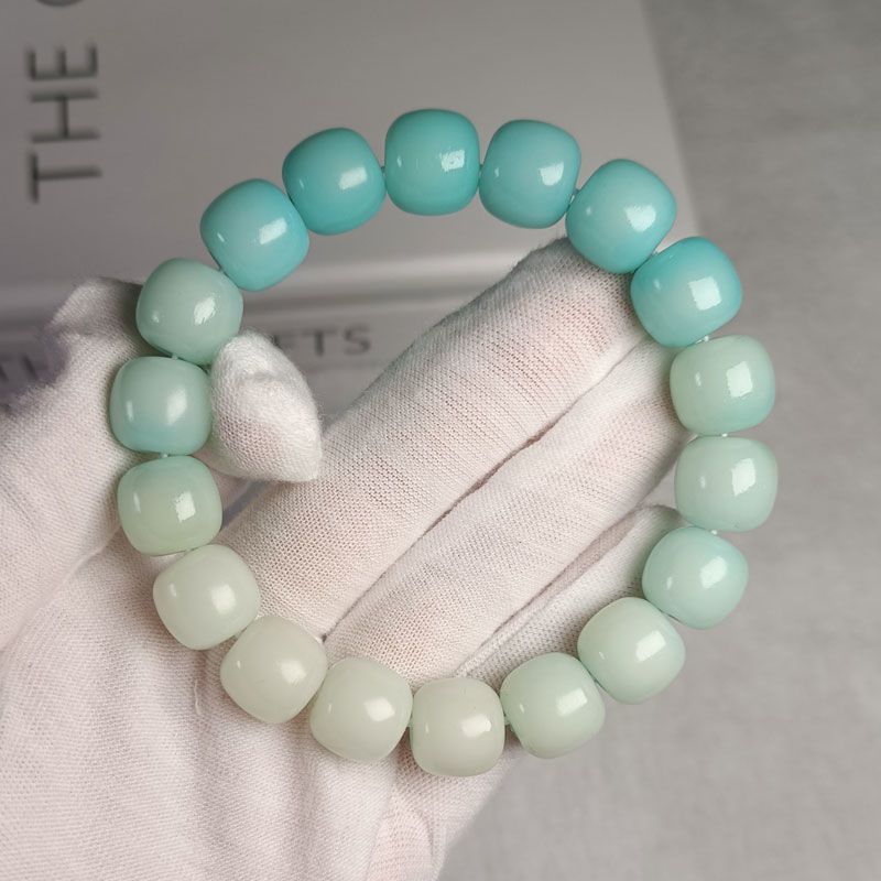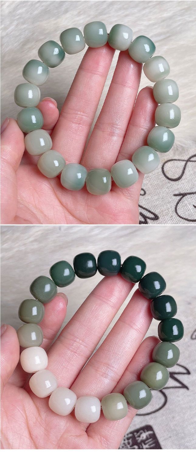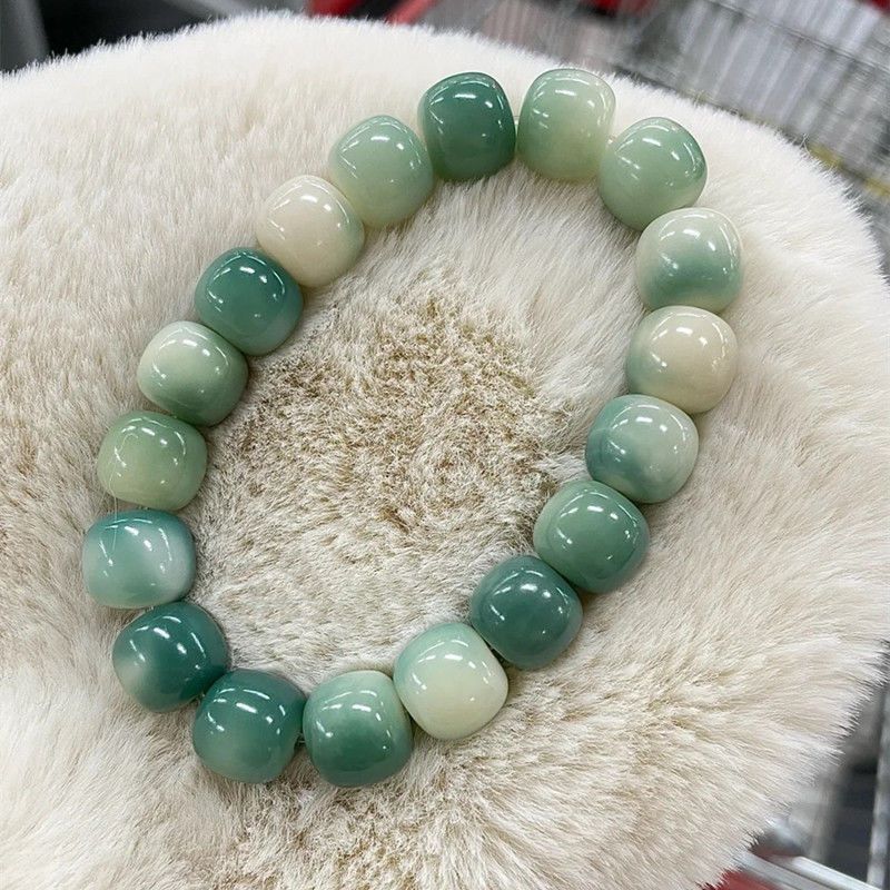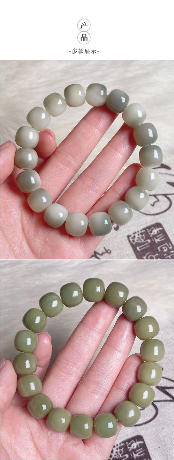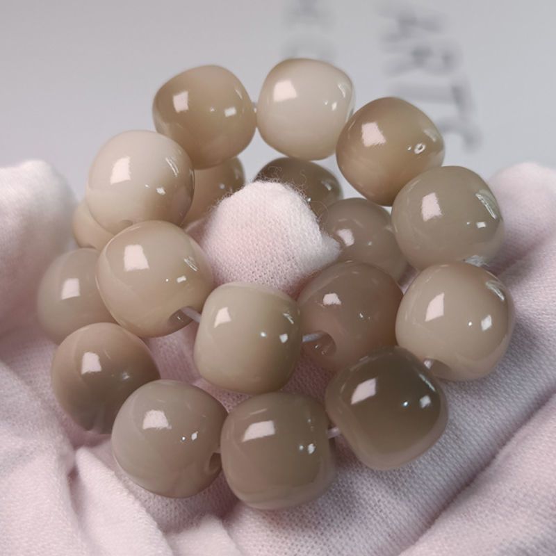 灵月阁烟灰色飘花菩提根手串绕指柔渐变白玉菩提子佛珠文玩手链女