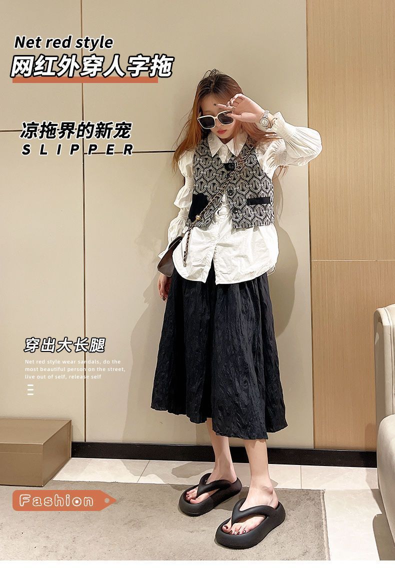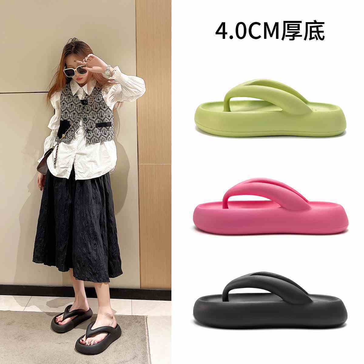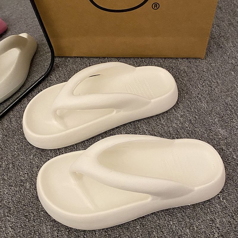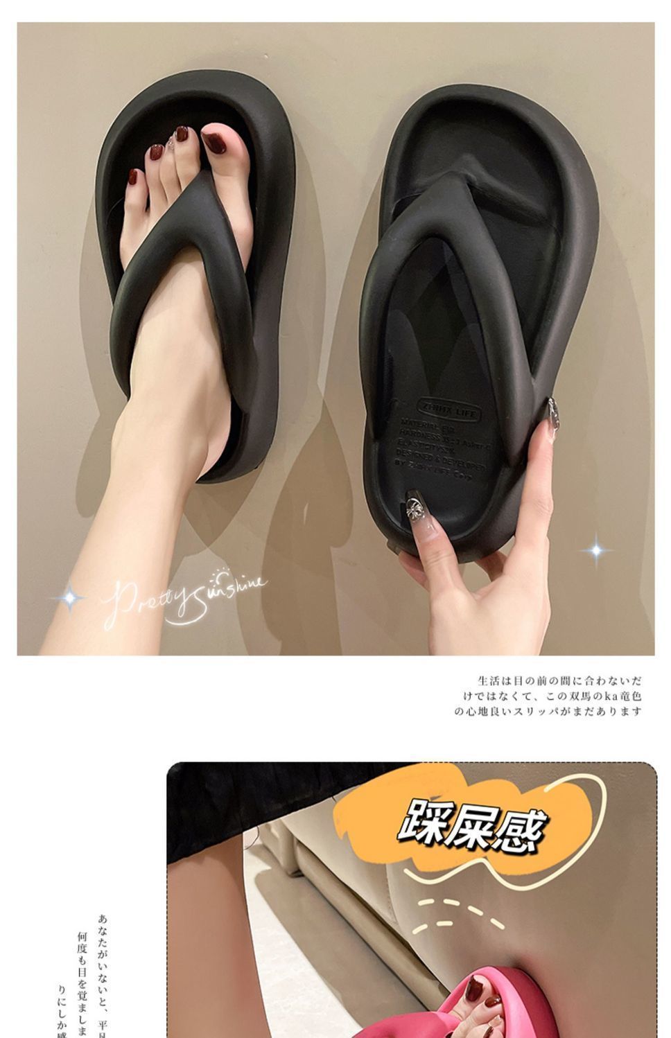 显白奶油泡芙~INS软软厚底人字拖鞋高级休闲防滑沙滩凉拖鞋女外穿