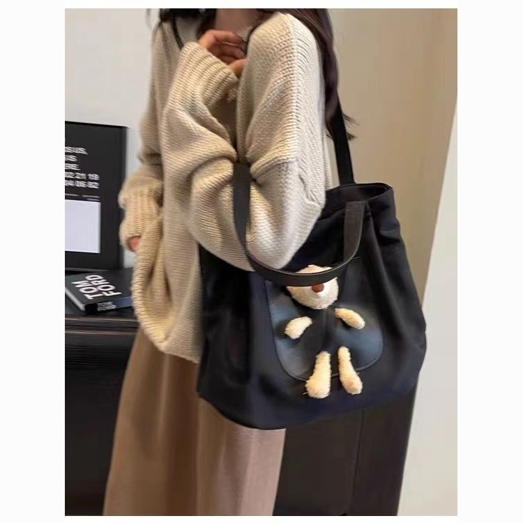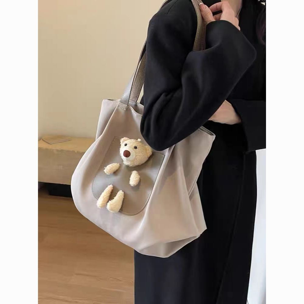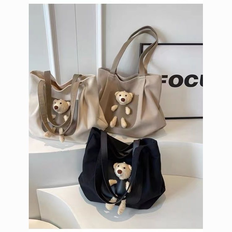大容量包包女可爱小熊单肩包休闲百搭帆布包上课通勤托特包大学生