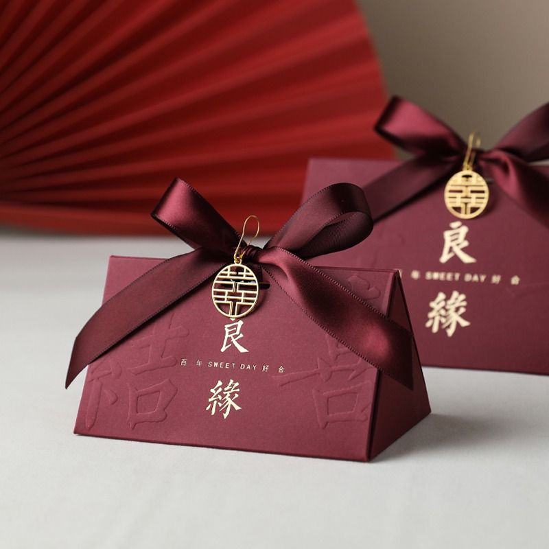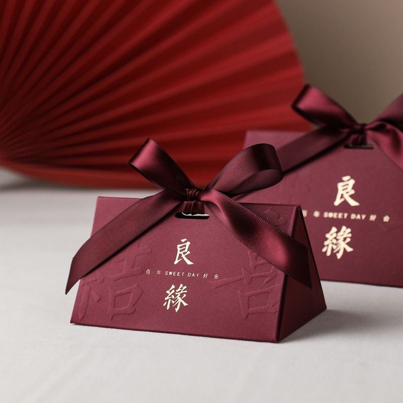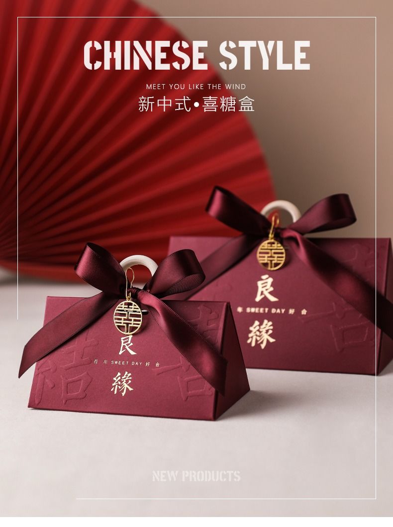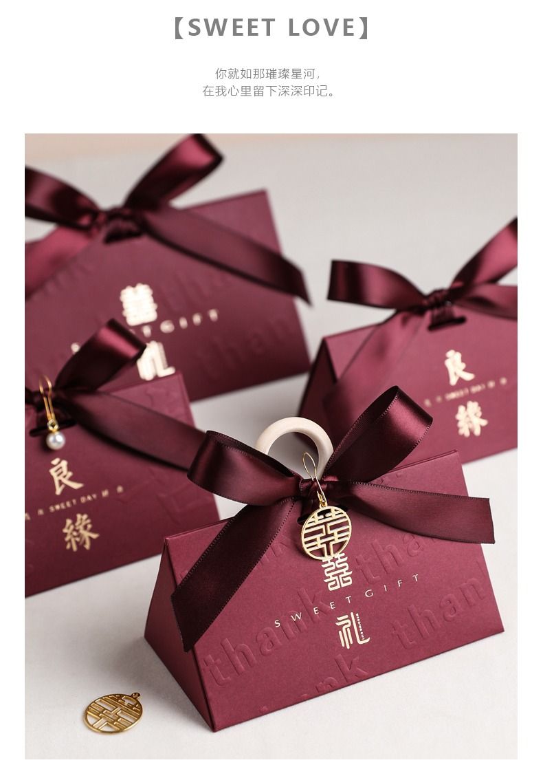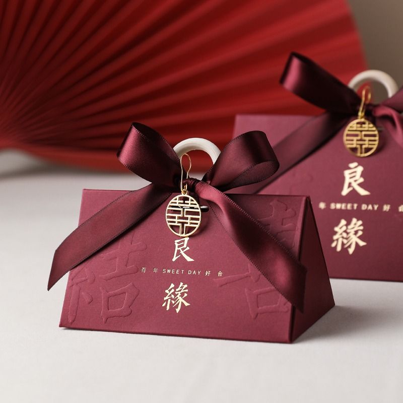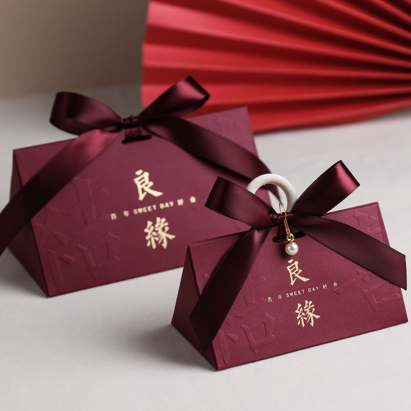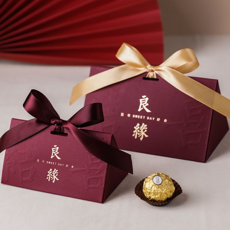 中式结婚喜糖盒子婚礼伴手礼高级感糖盒礼盒订婚喜糖袋包装空盒子