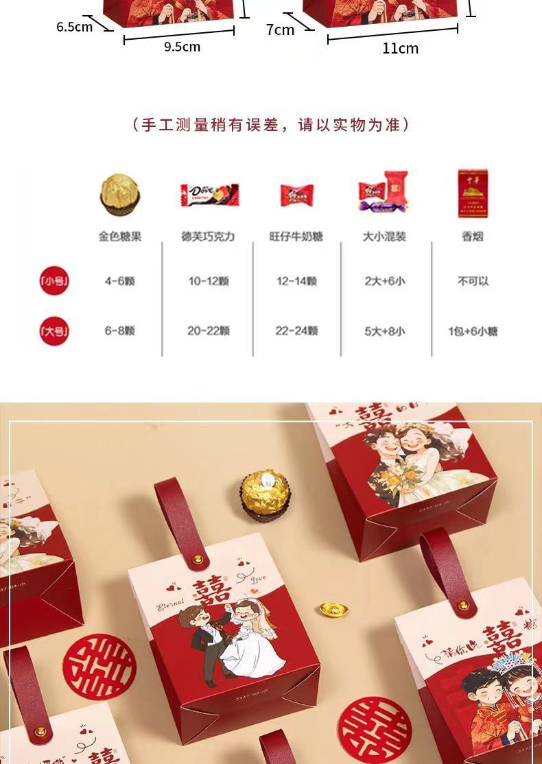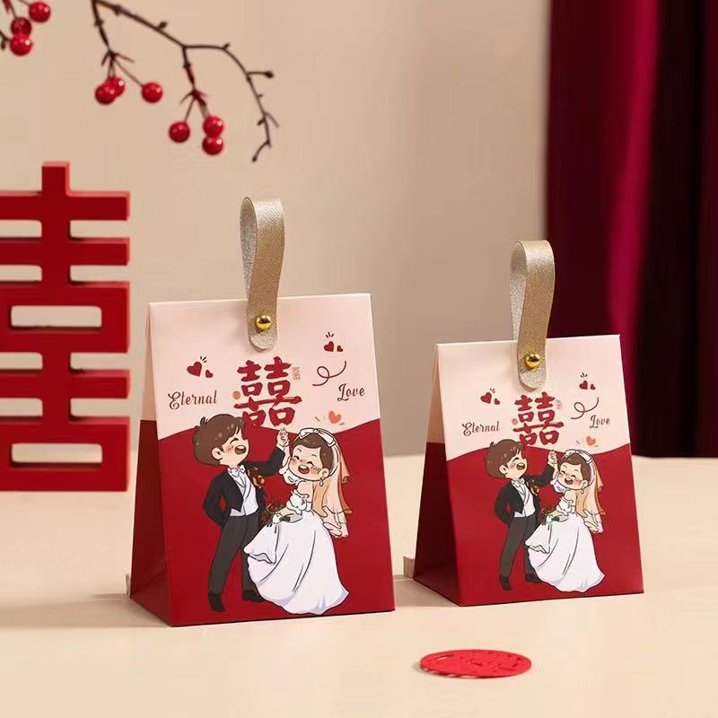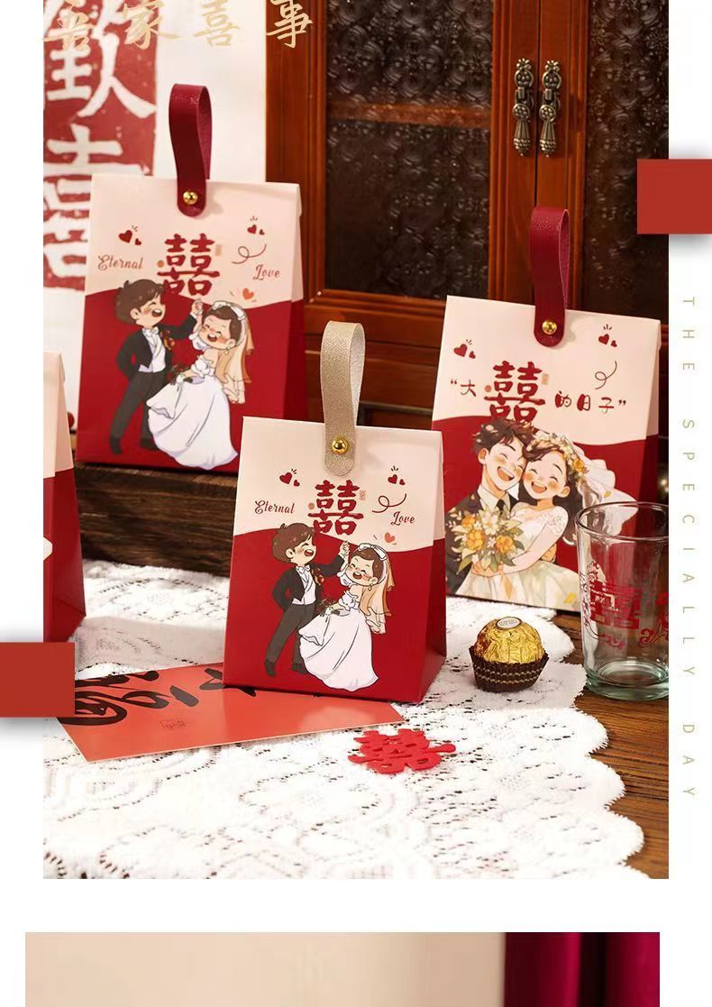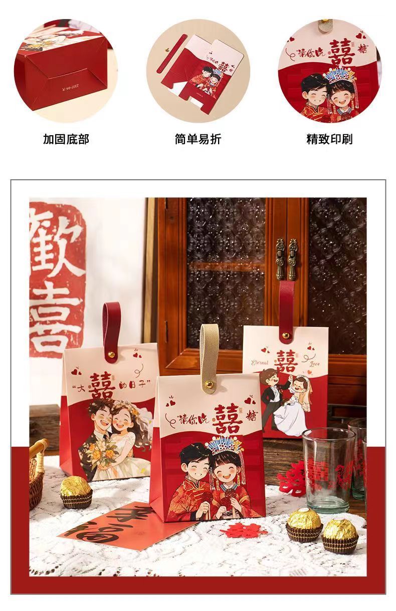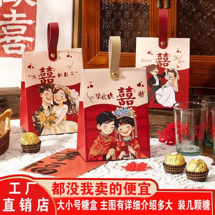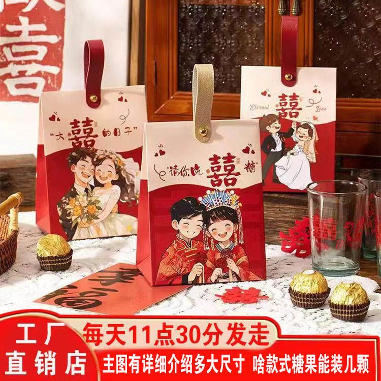 结婚喜糖盒高档中式手提式糖盒卡通国潮订婚婚礼回礼专用伴手礼盒