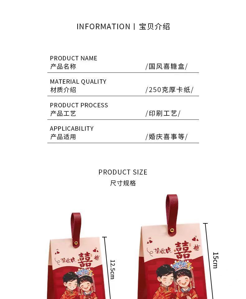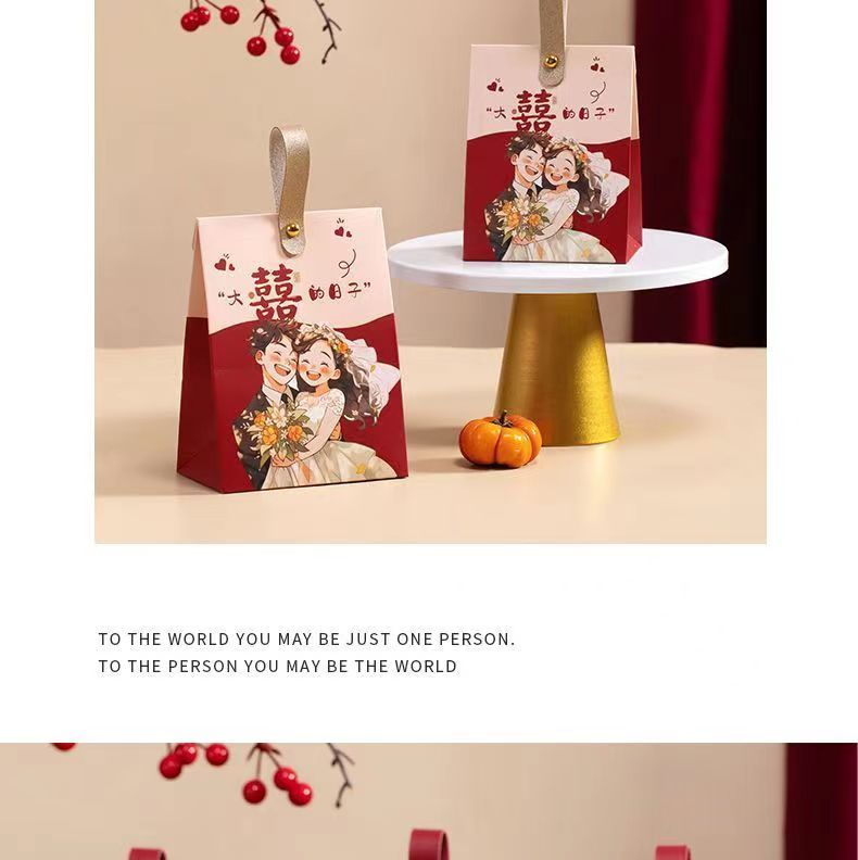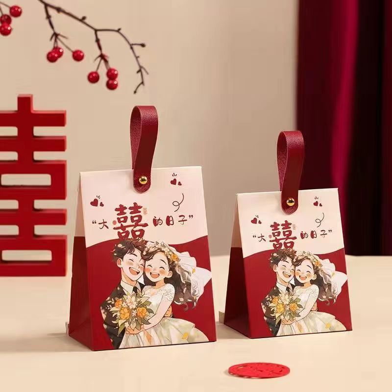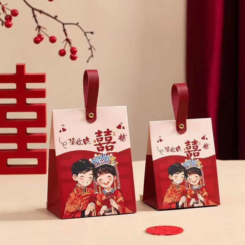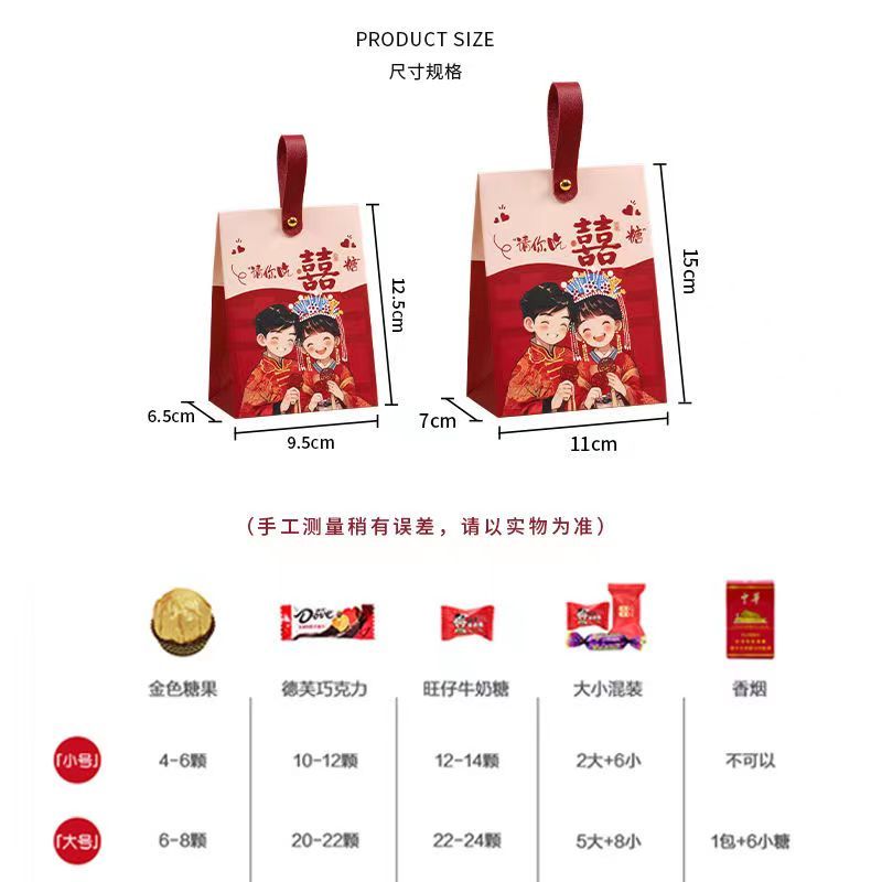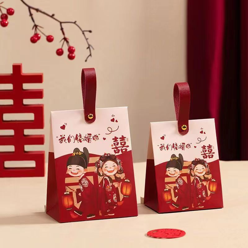 结婚喜糖盒高档中式手提式糖盒卡通国潮订婚婚礼回礼专用伴手礼盒