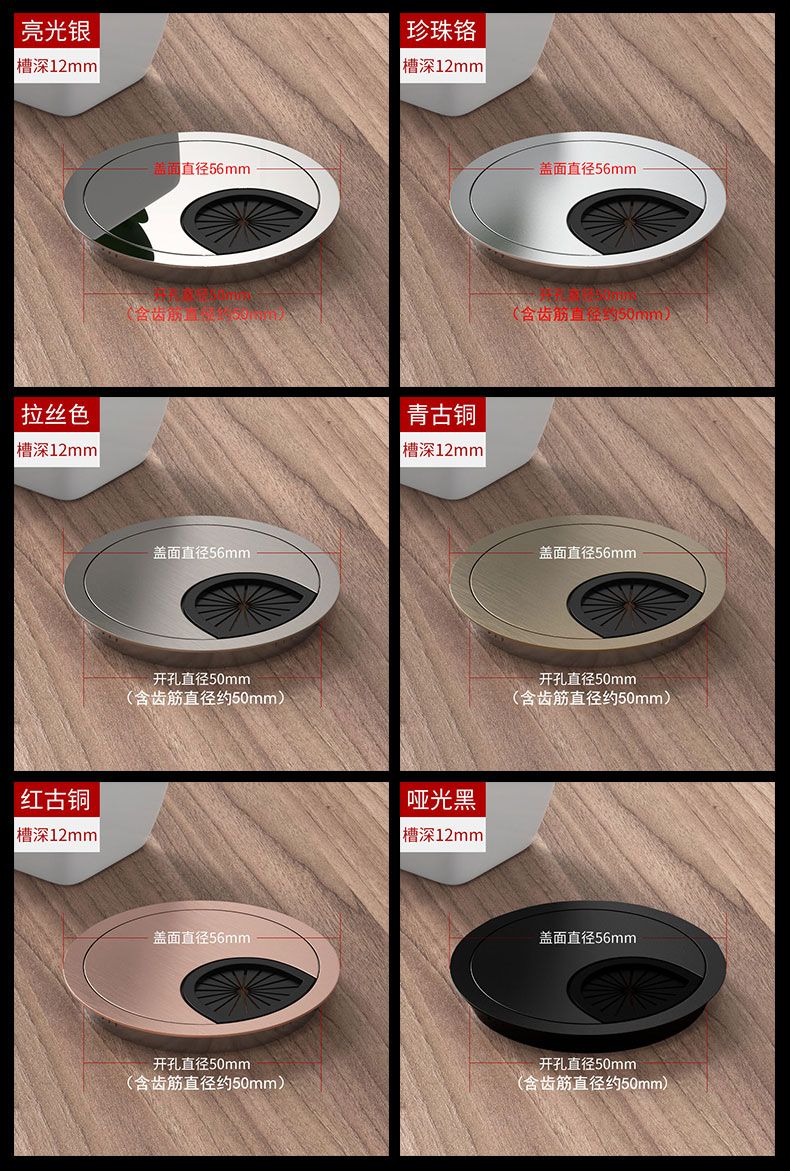 办公电脑桌线孔书桌面孔盖穿线盒穿线孔高档锌合金盖板桌子装饰盖