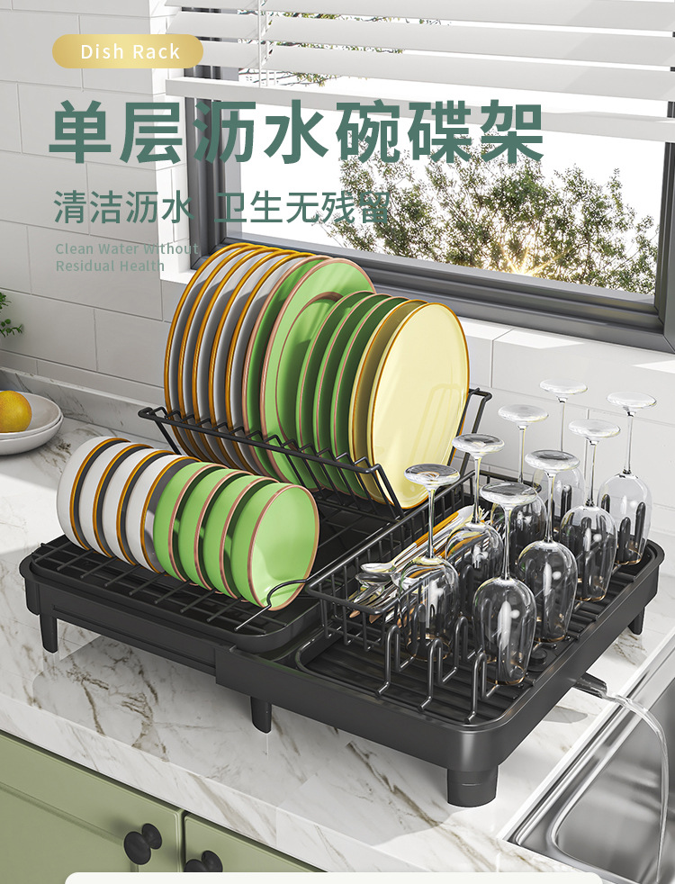 厨房置物架单层伸缩碗碟沥水架台面水池晾放碗盘碗筷架酒杯收纳架