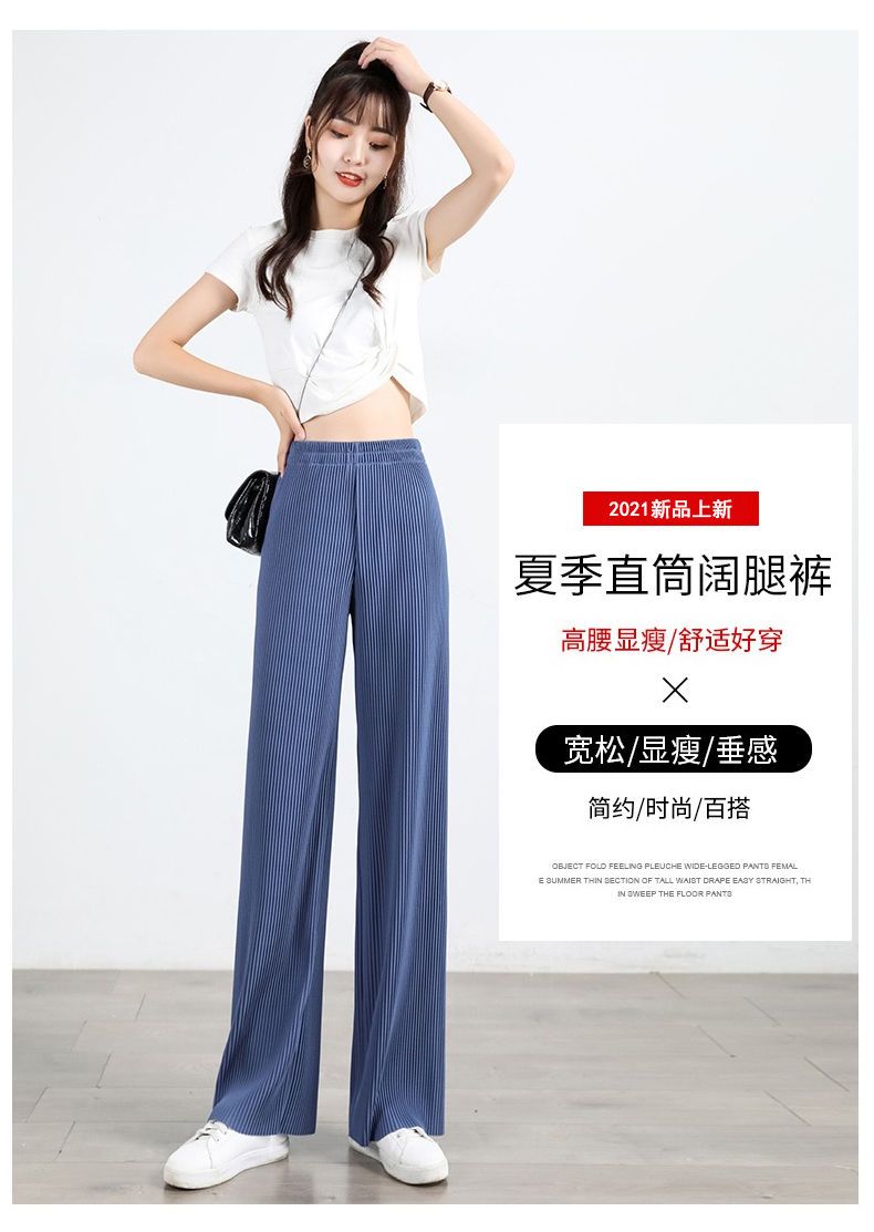 夏季薄款阔腿裤子女韩版高腰宽松显瘦百搭学生垂坠感拖地休闲长裤
