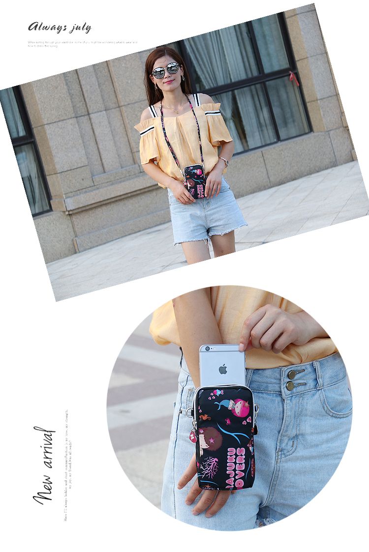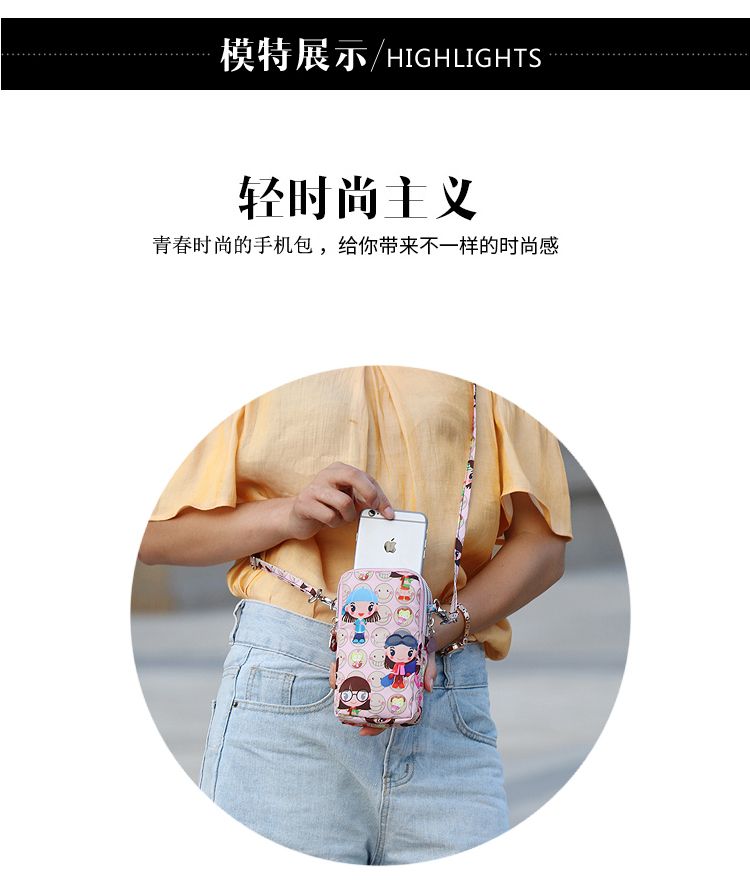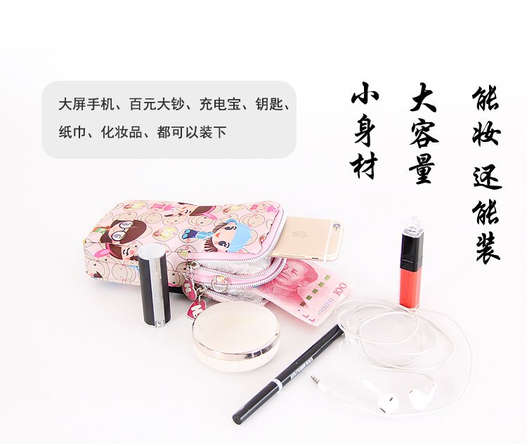 卡通手机包斜挎包单肩包女休闲小包大号钱包运动臂包多功能手机袋