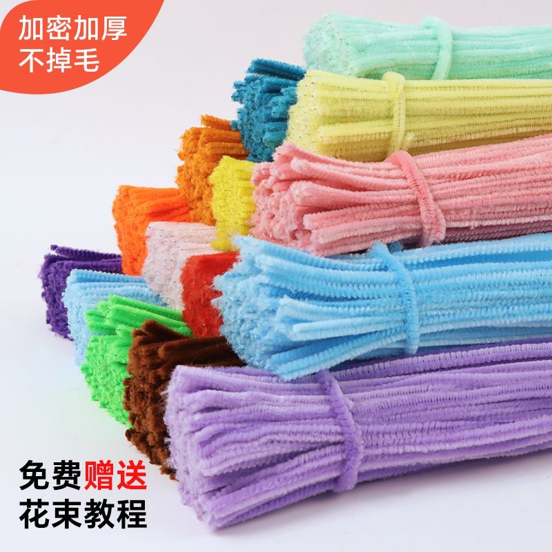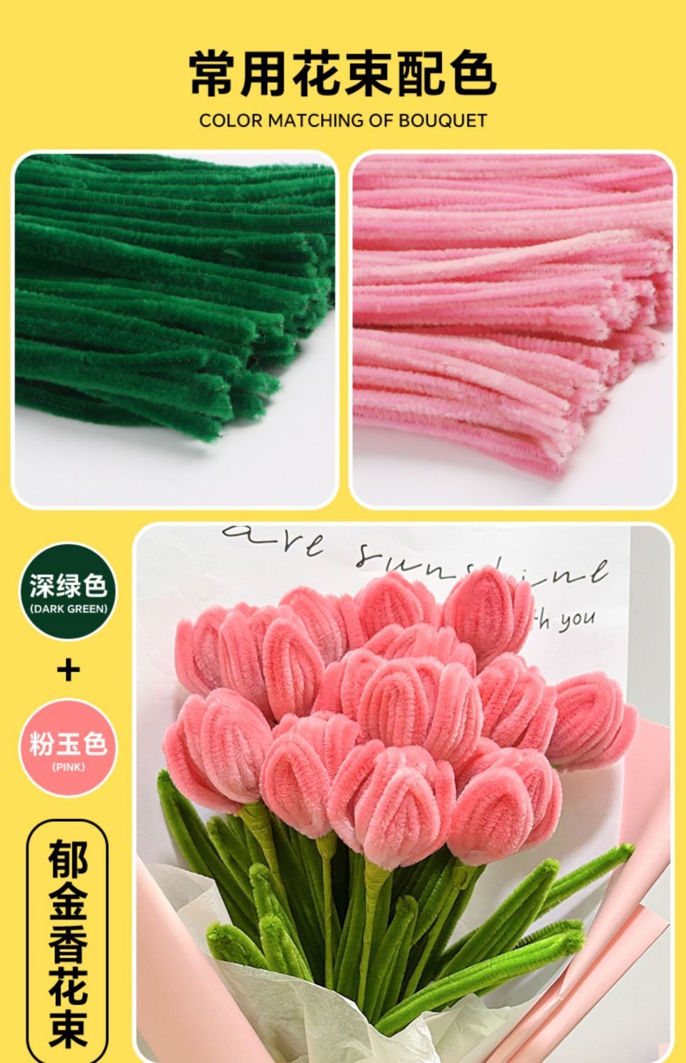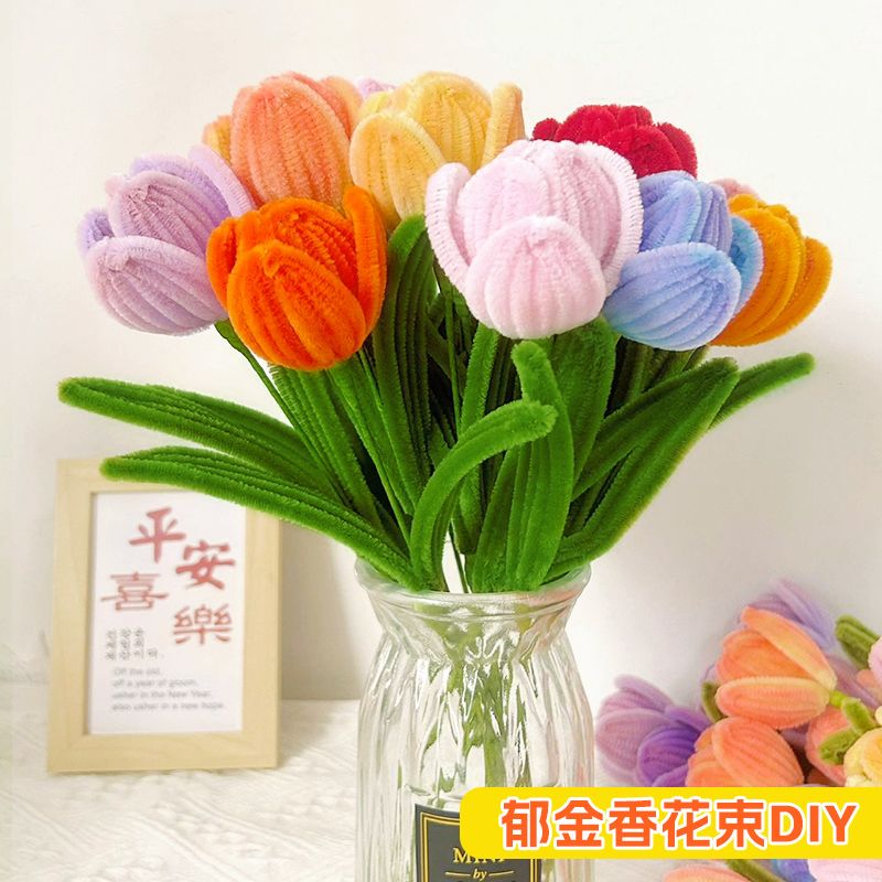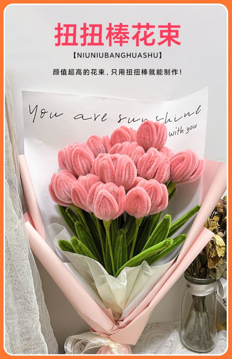 扭扭棒花束手工diy郁金香玫瑰材料包加密毛根毛条绿色超密妞妞棒